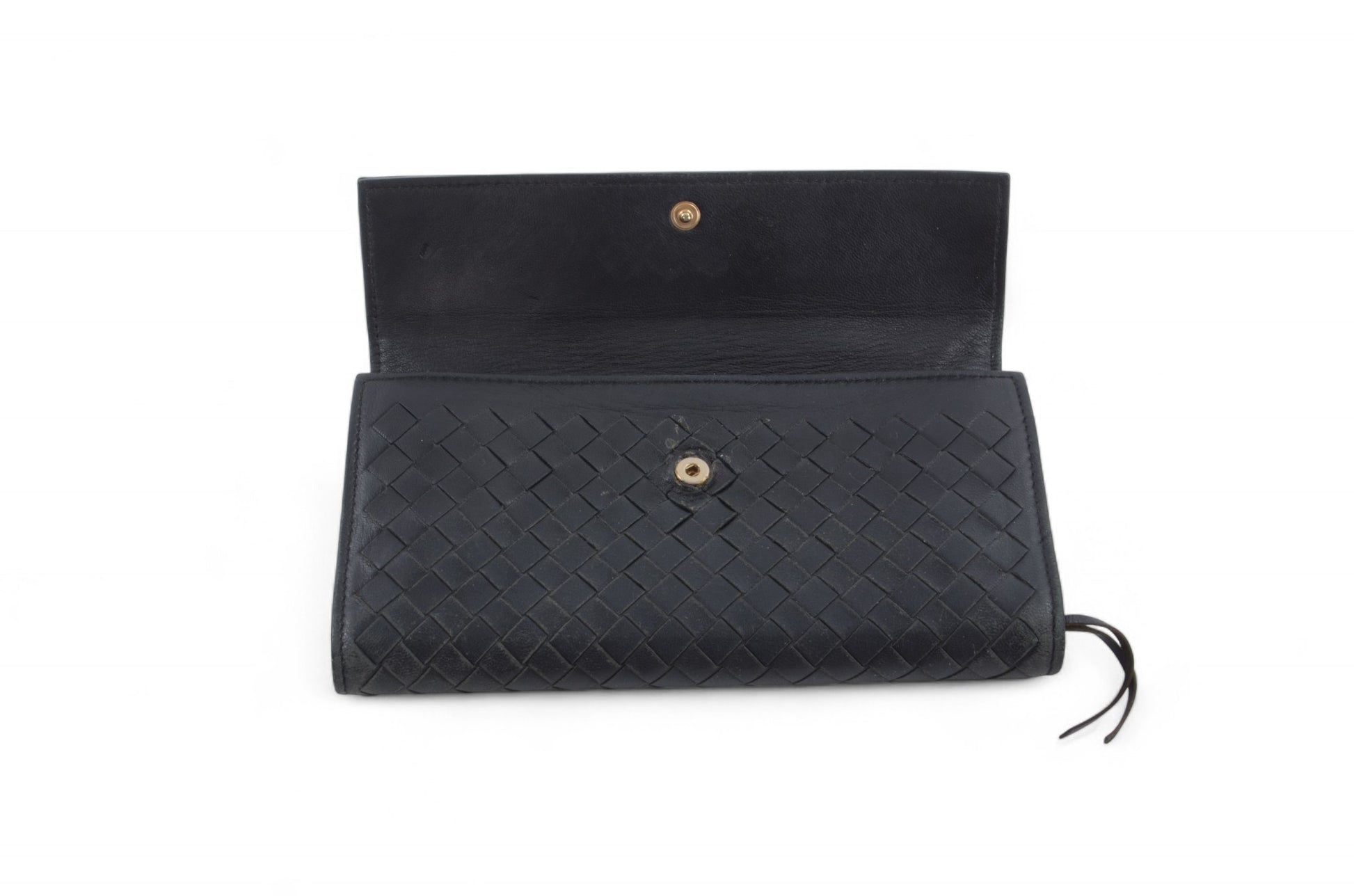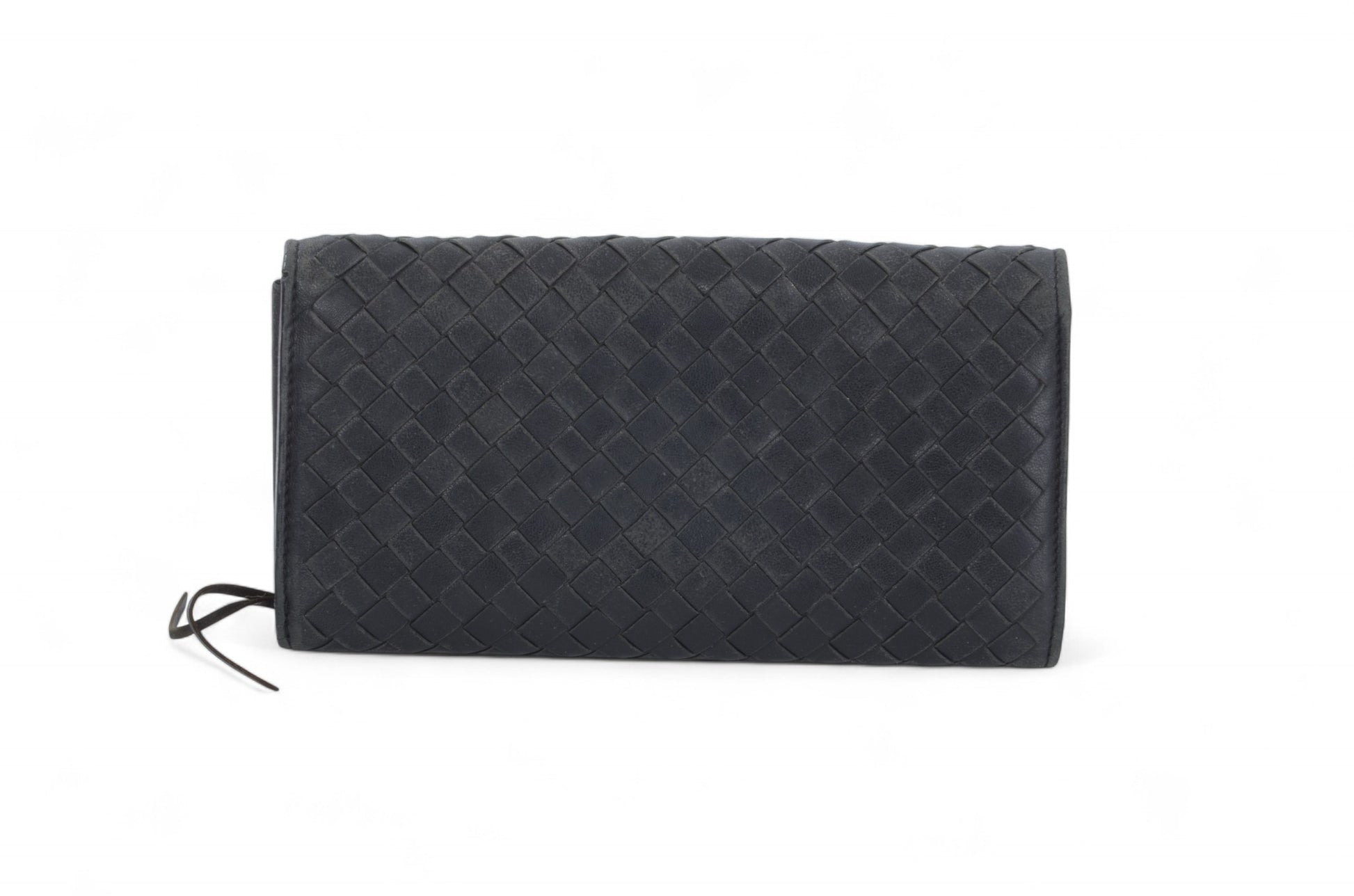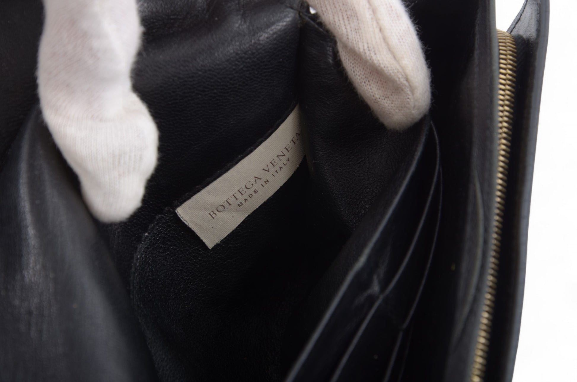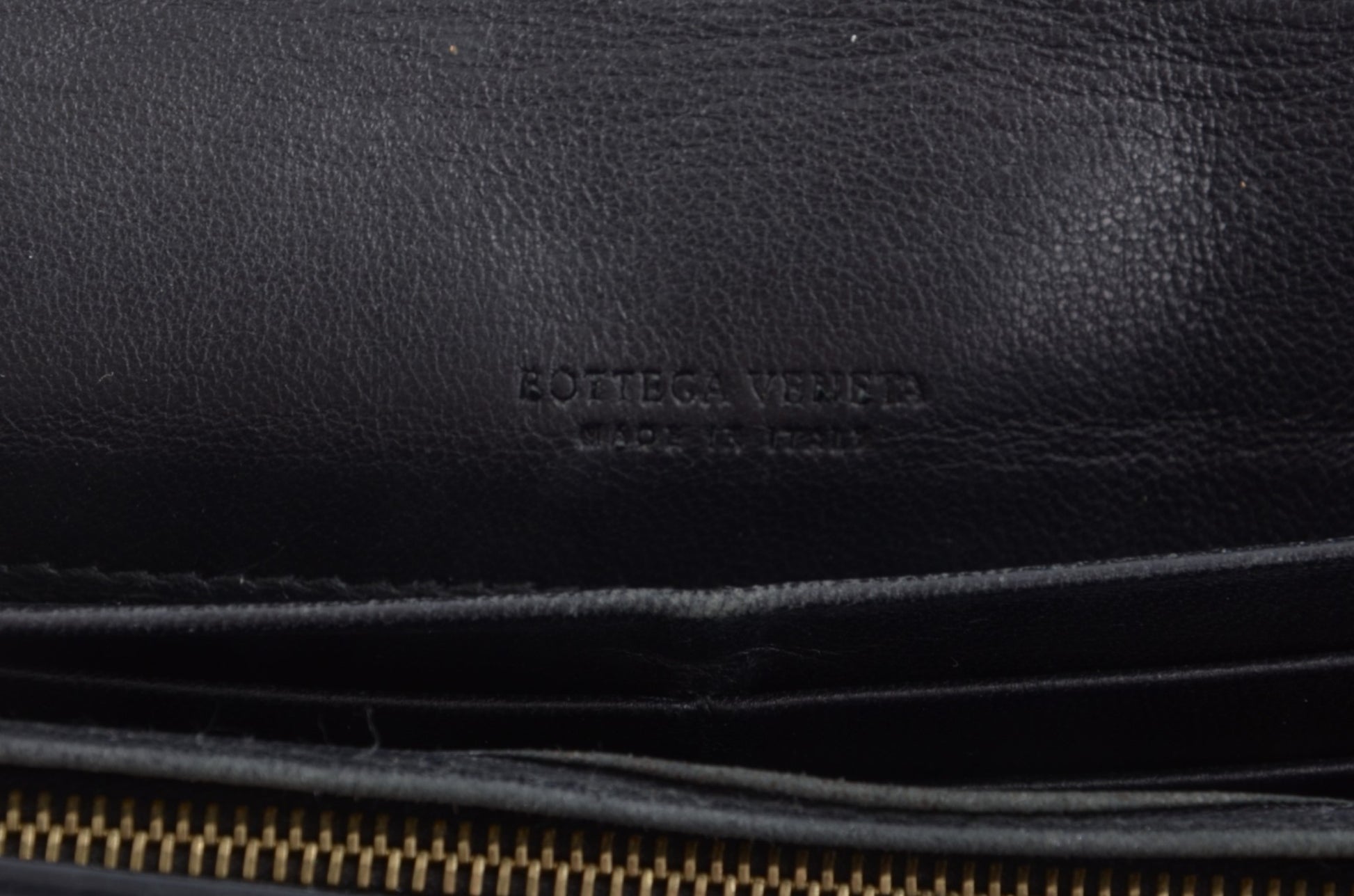 Bottega Veneta Intrecciato Leather Bifold Long Wallet Cardholder Crossbody Bag Black Designer Classic