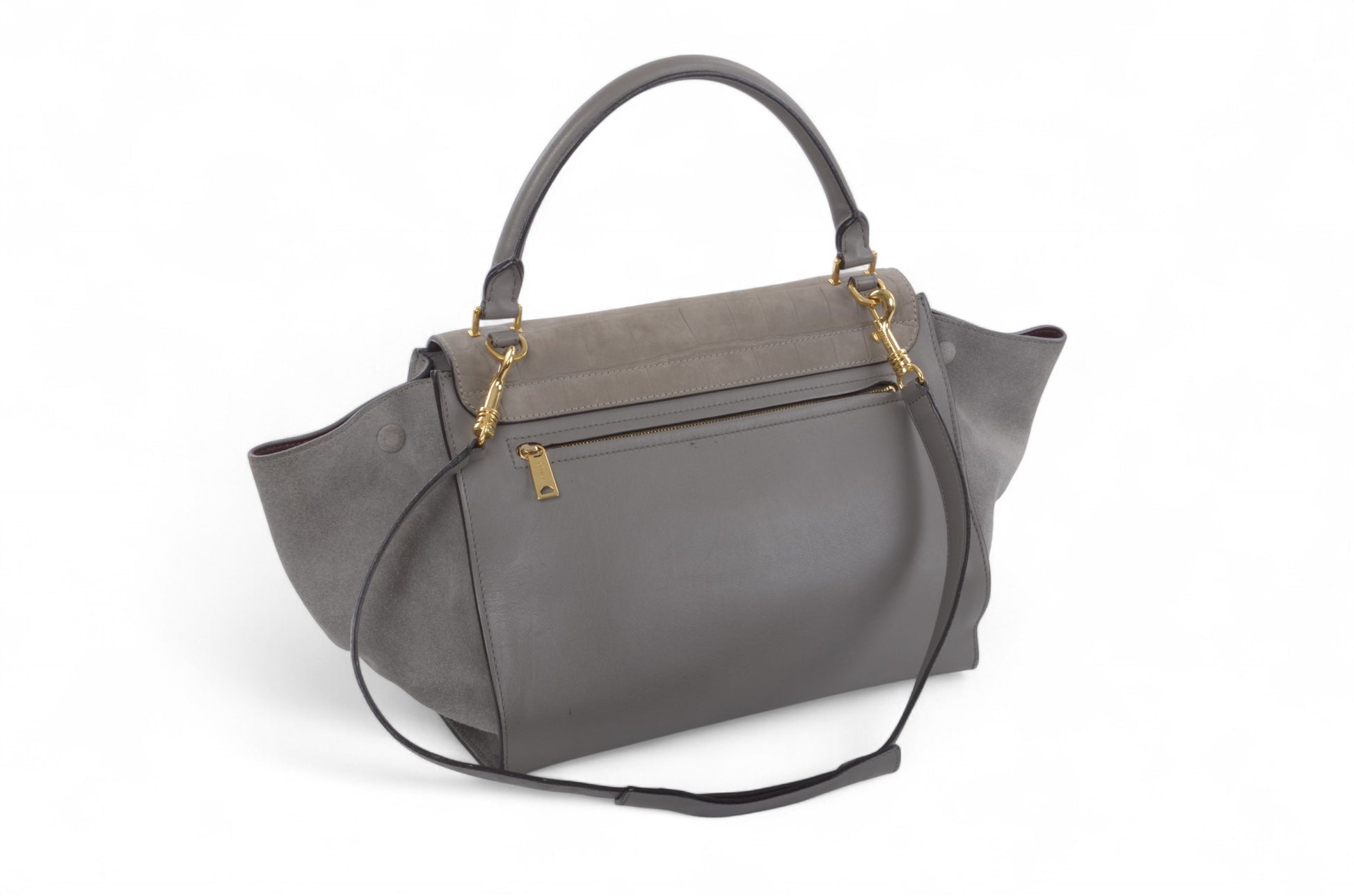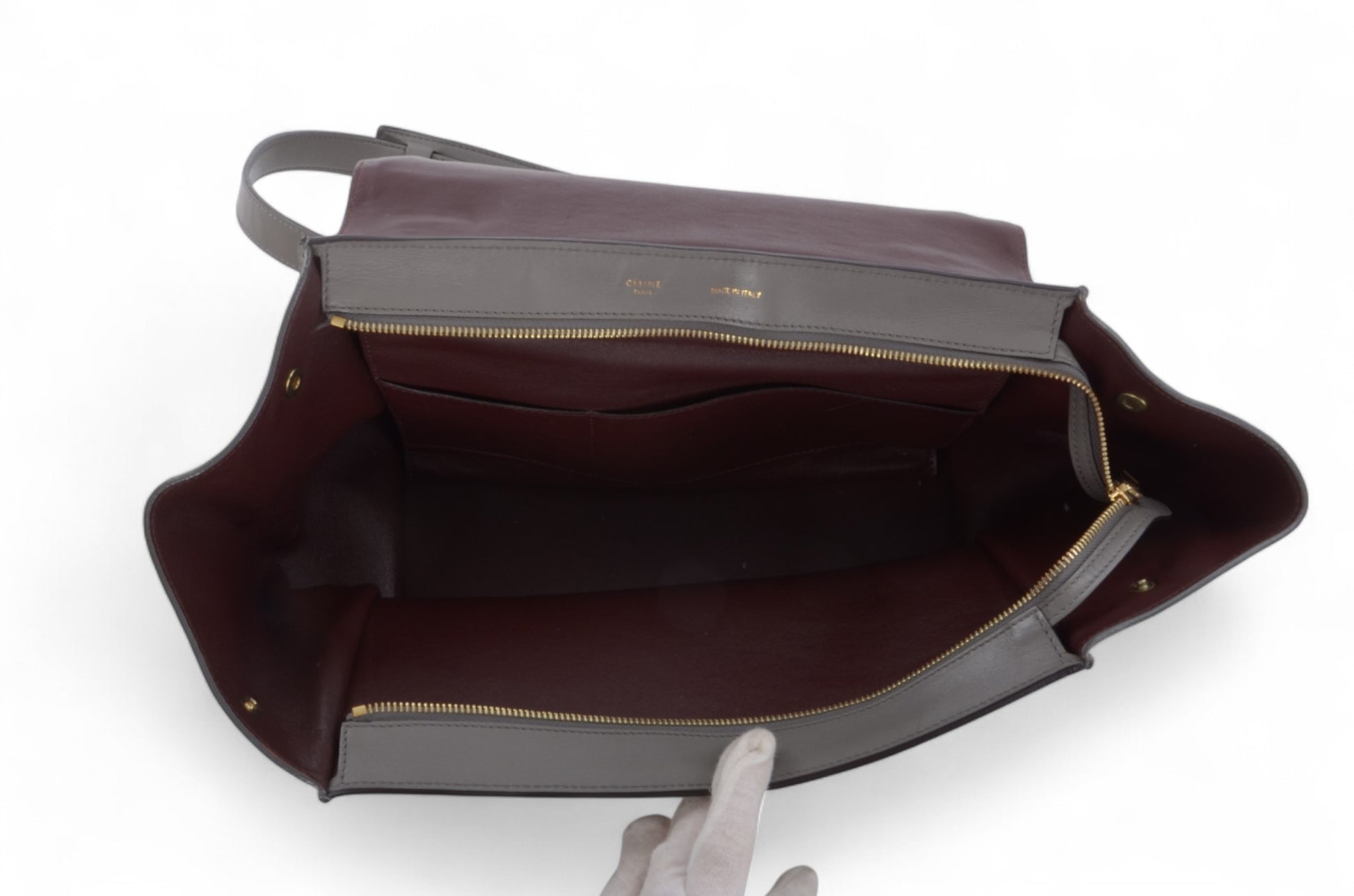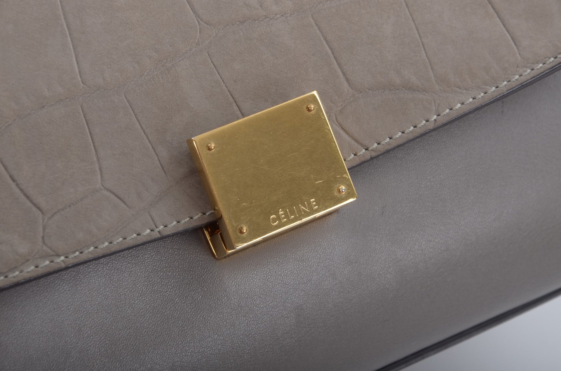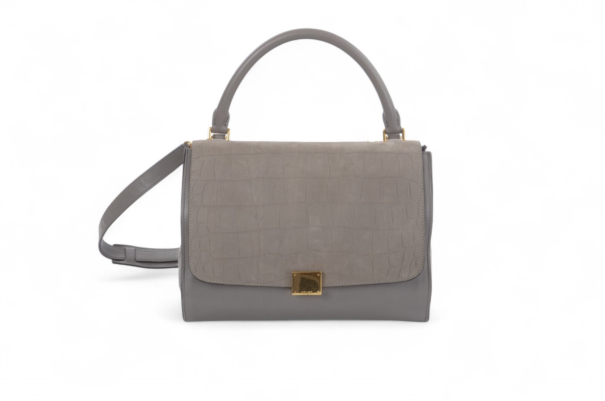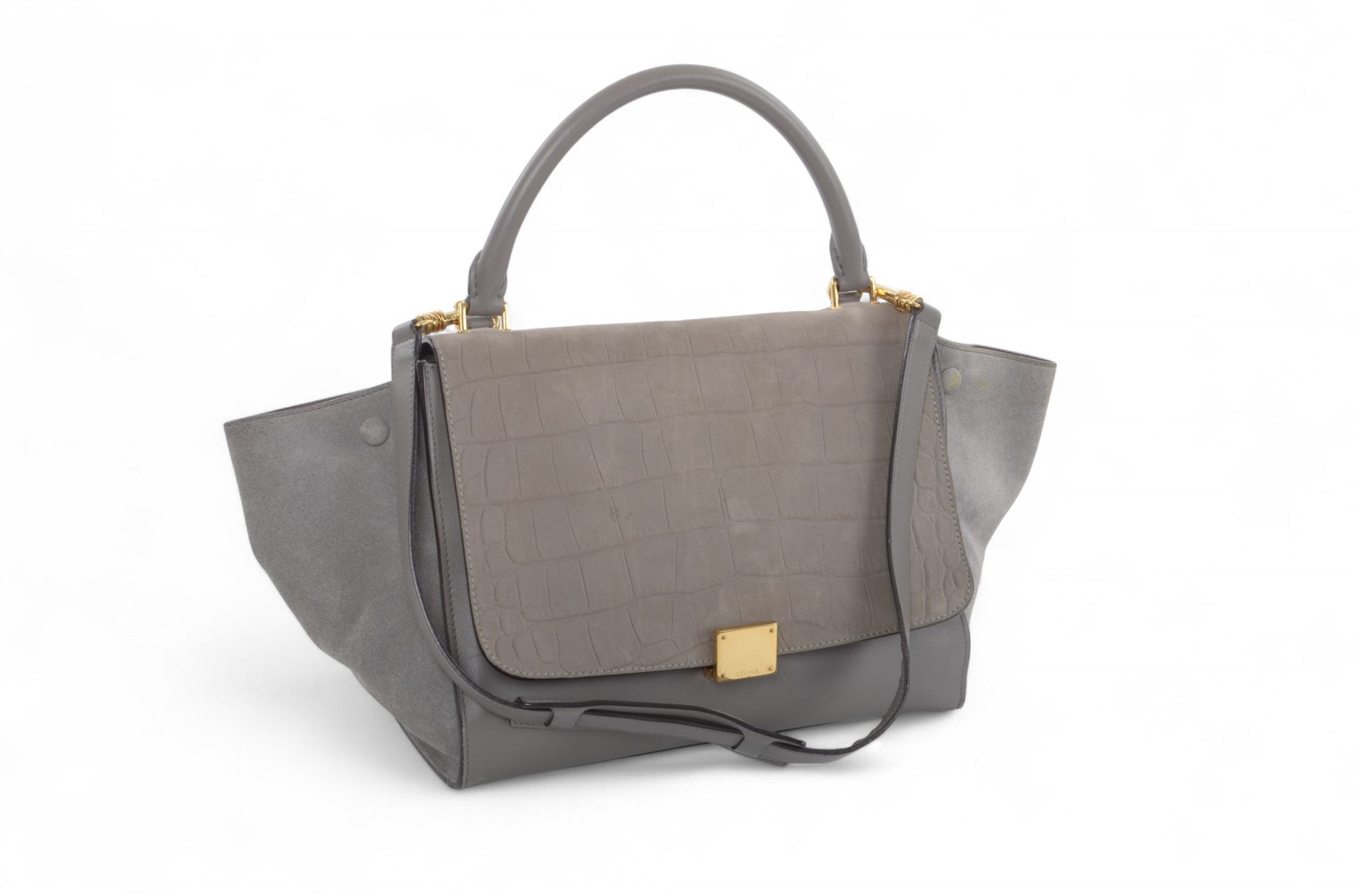 Celine Trapeze Crocodile-Embossed Medium Leather 2WAY Shoulder Bag Tote Handbag Greige Designer Classic