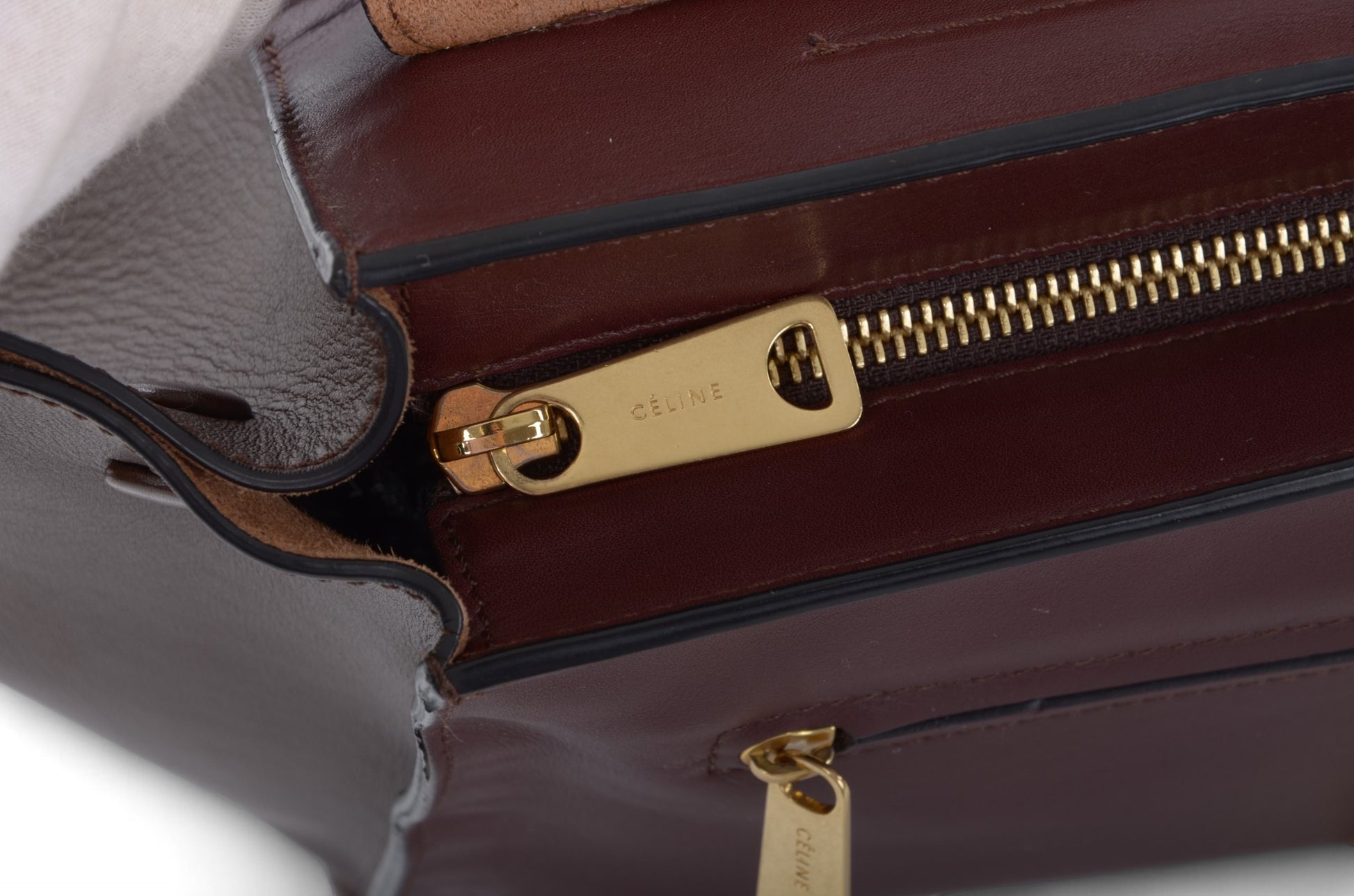 Celine Trapeze Medium Leather 2WAY Shoulder Bag Shoulder Tote Handbag Burgundy Designer Classic