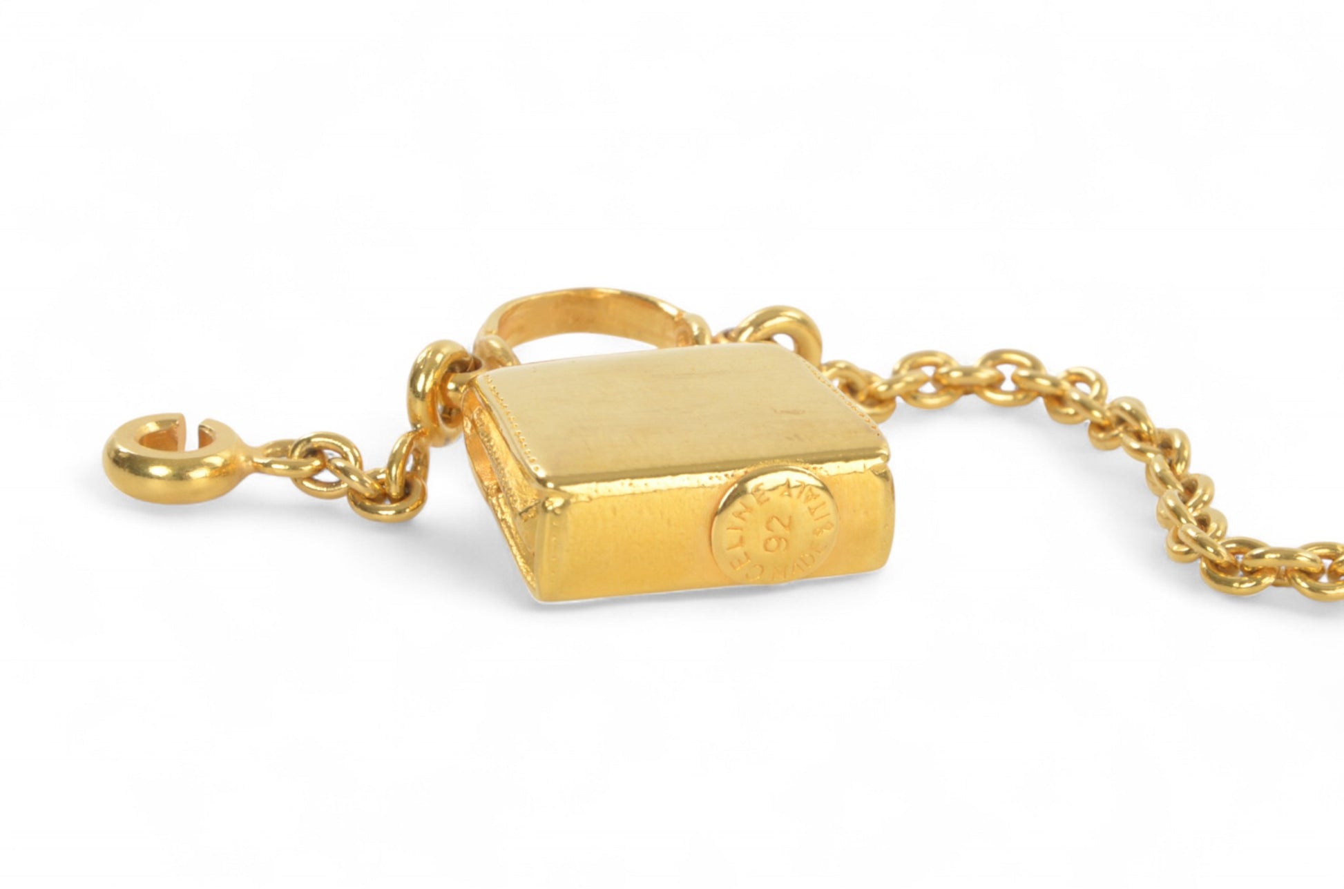 Celine Vintage Purse Bag Charm Keychain Gold tone Key Chain Holder Keyring Accessory Designer Classic