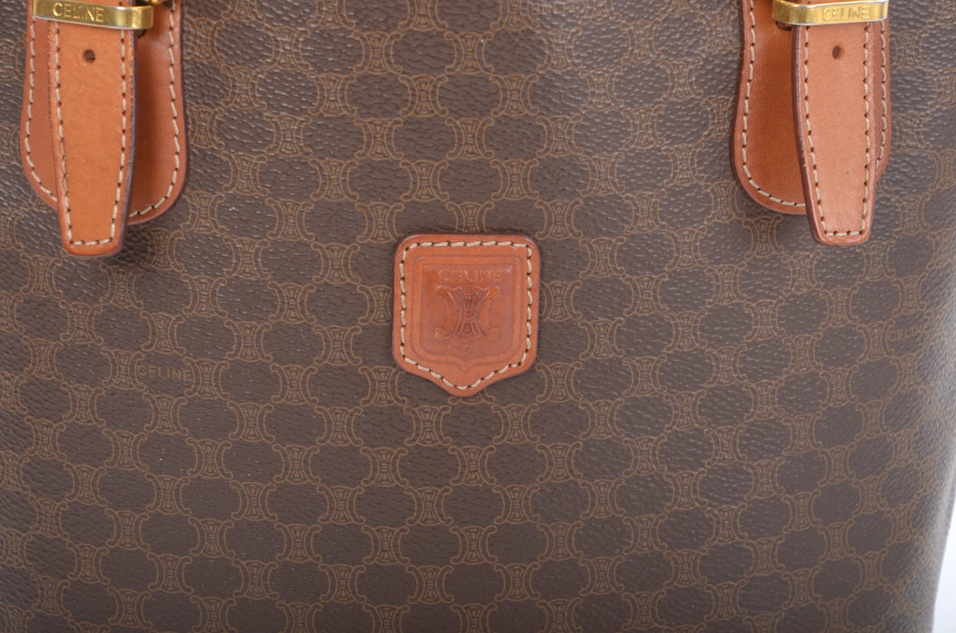 Celine Vintage Triomphe Shoulder Bag Tote Handbag Monogram Brown Designer Classic