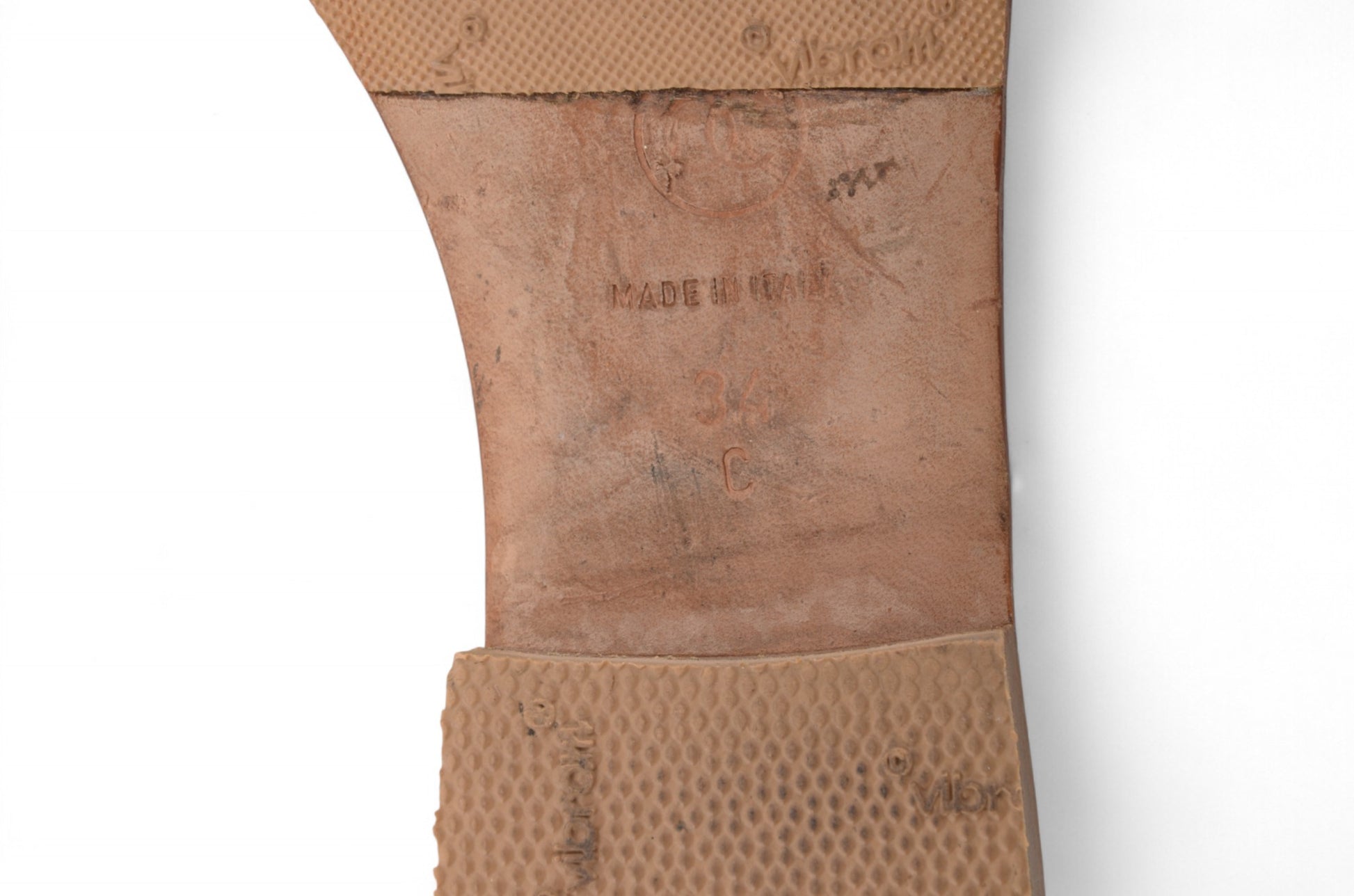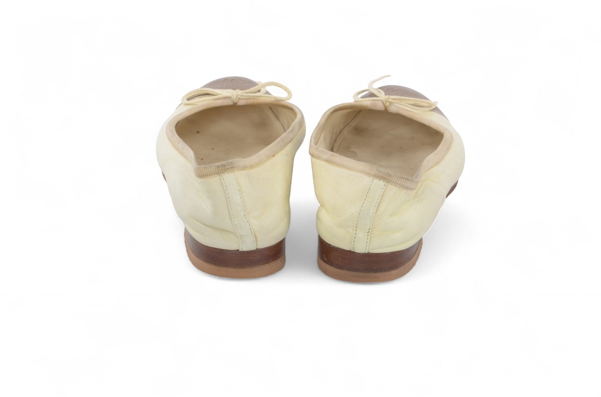 Chanel Ballet Flats Shoes Ballerina Flat Pumps Ribbon Leather Vintage Size 34C Beige bronze