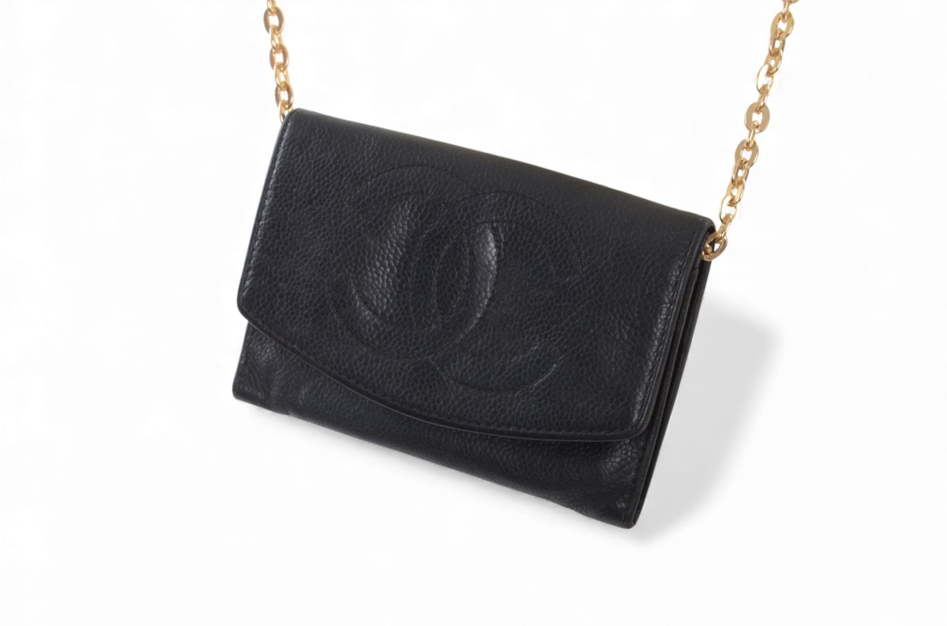 Chanel Caviar Leather Bifold Wallet Crossbody Bag Vintage Black Designer Classic