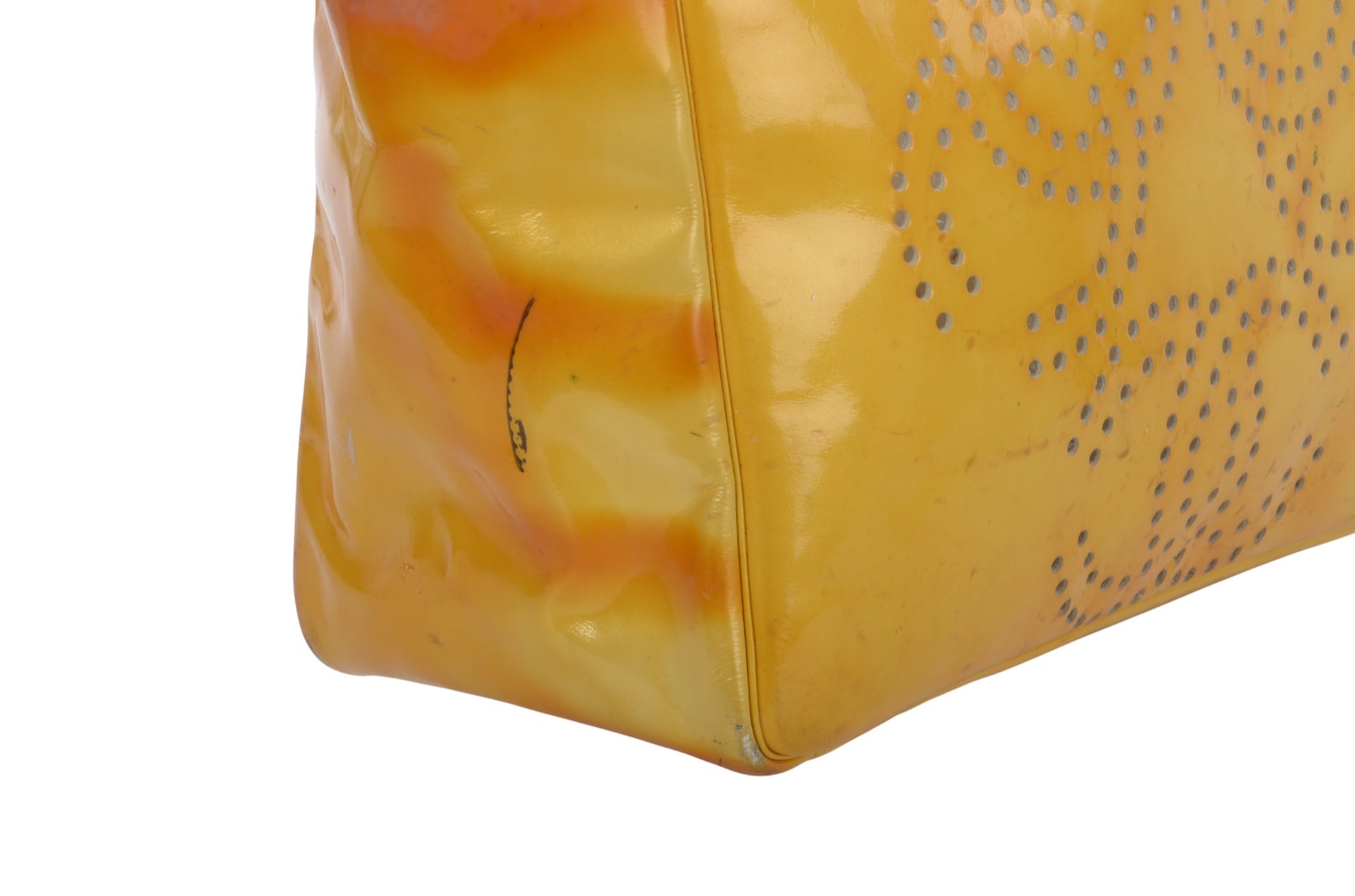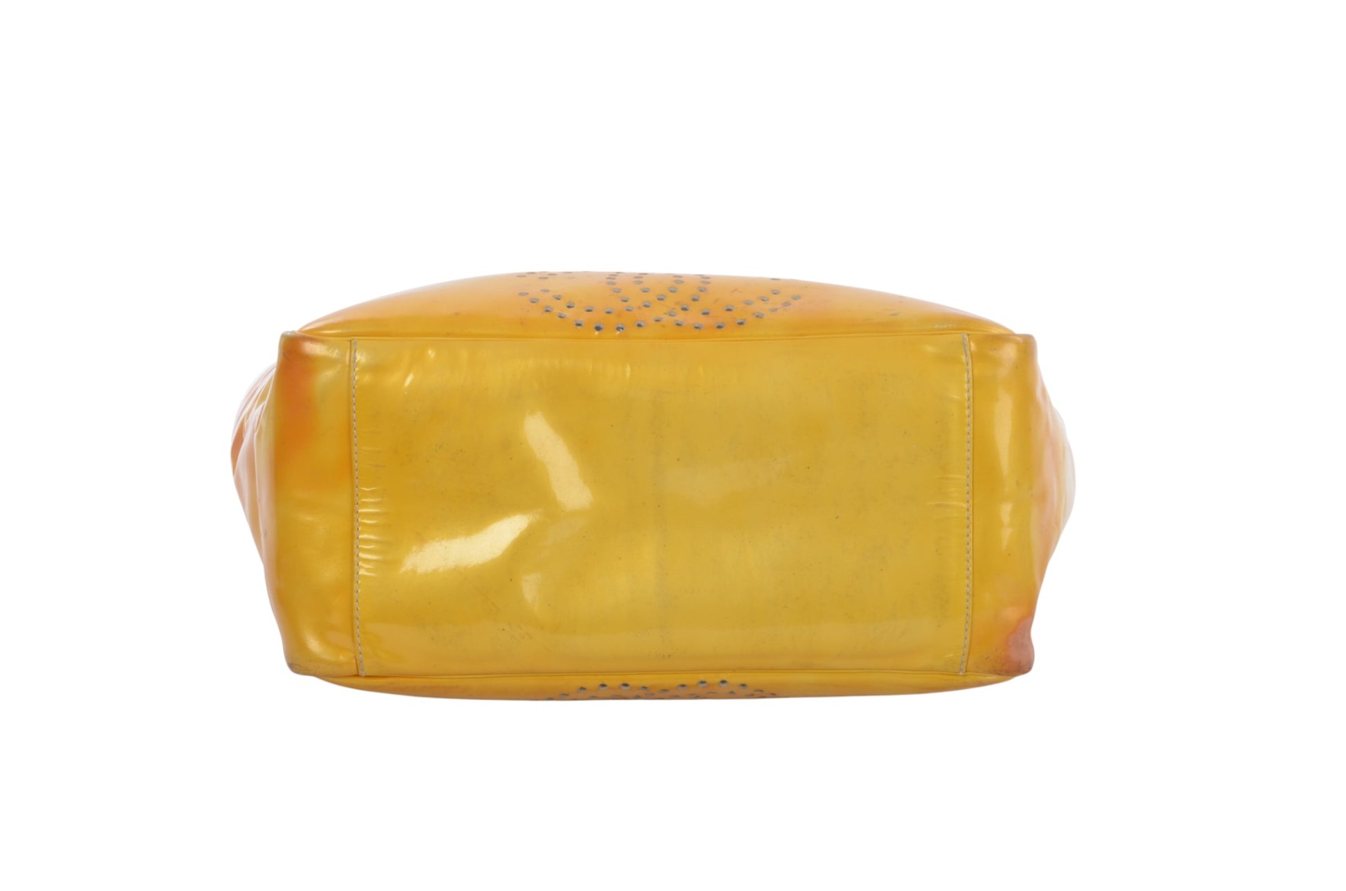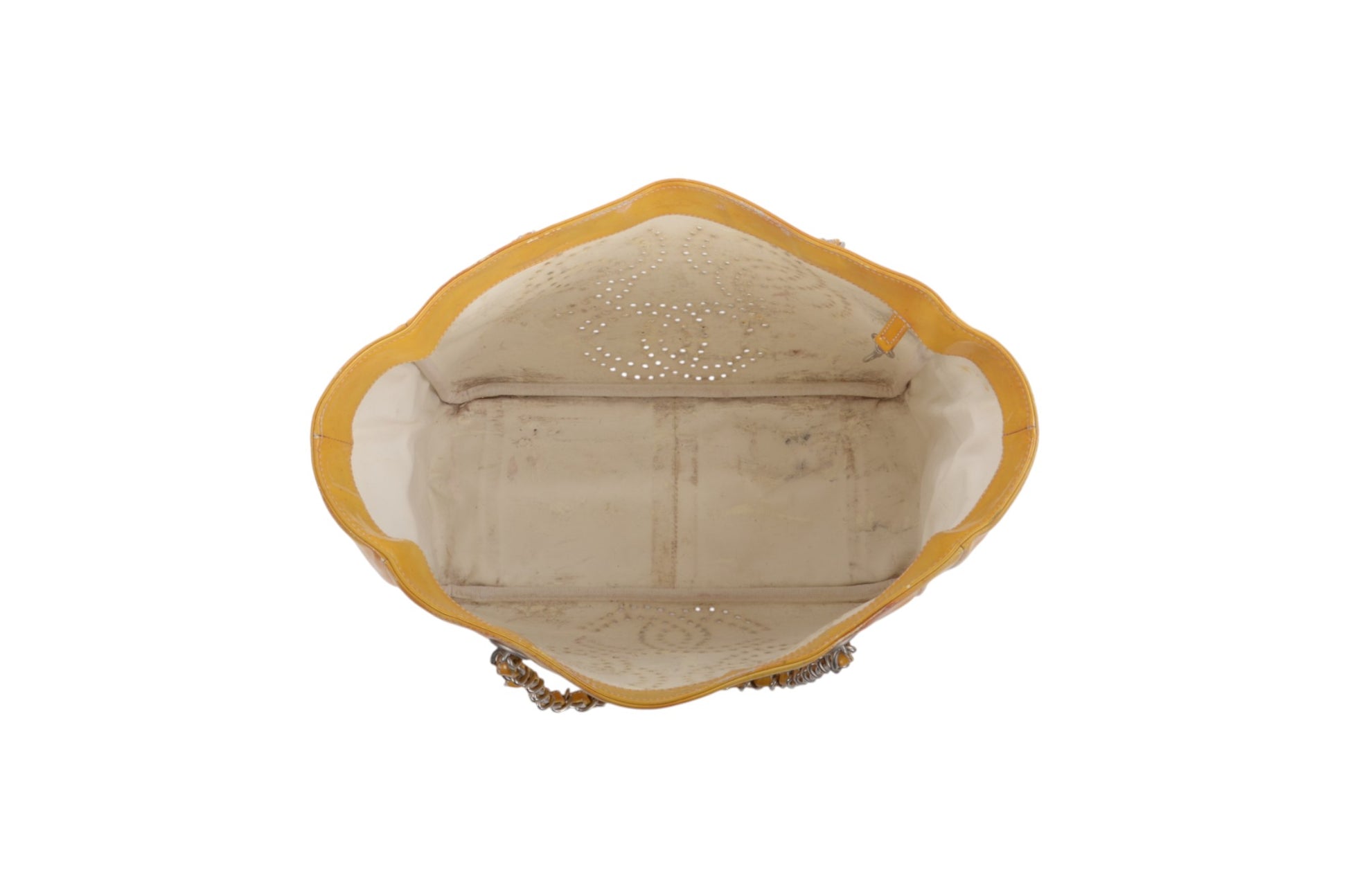 Chanel CC Logo Chain Shoulder Bag Patent Leather Tote Handbag Vintage Orange Designer Classic Authentic