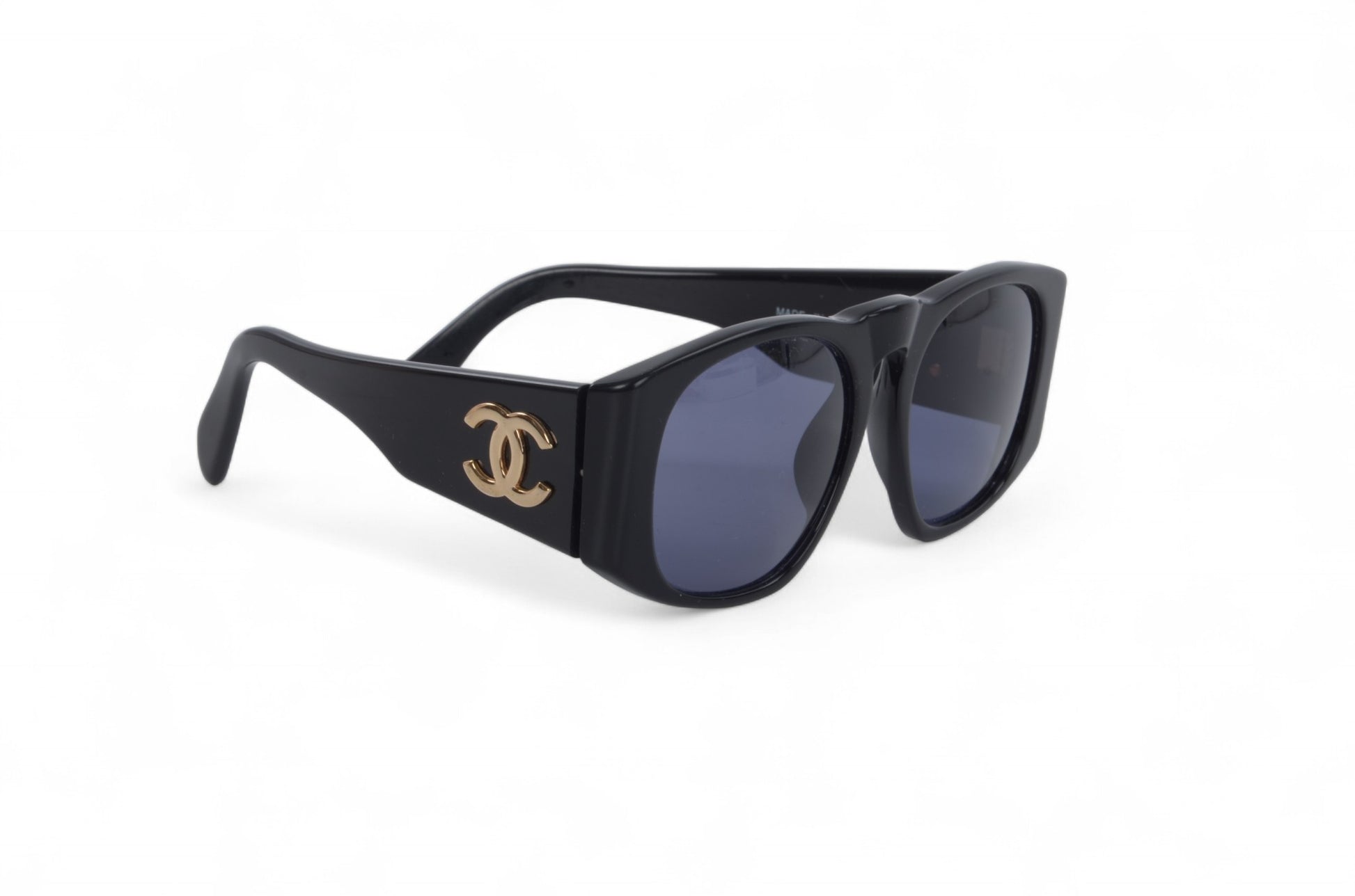 Chanel CC Logo Oversize Black Vintage Sunglasses Glasses Designer Classic Authentic