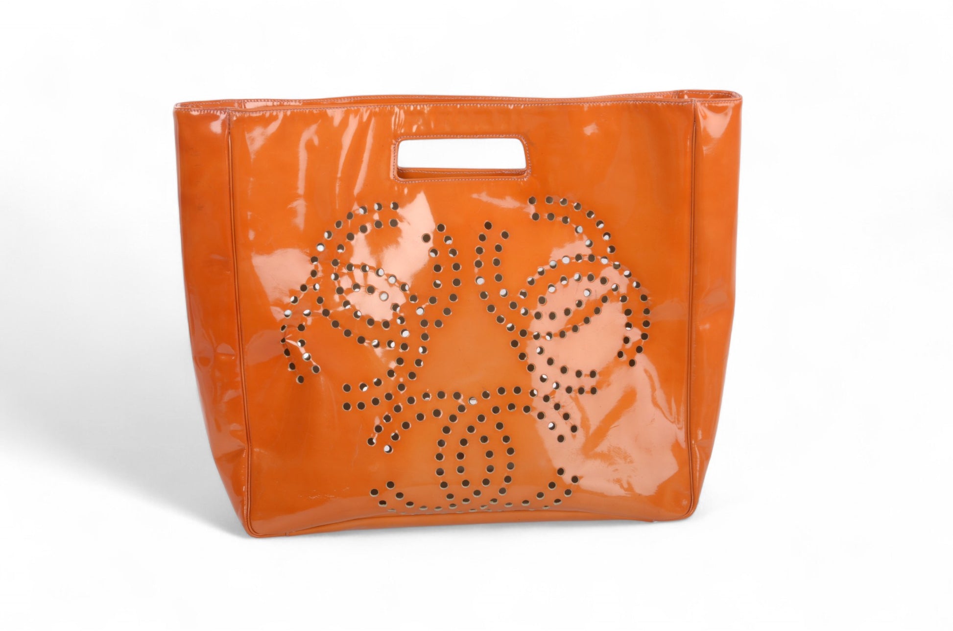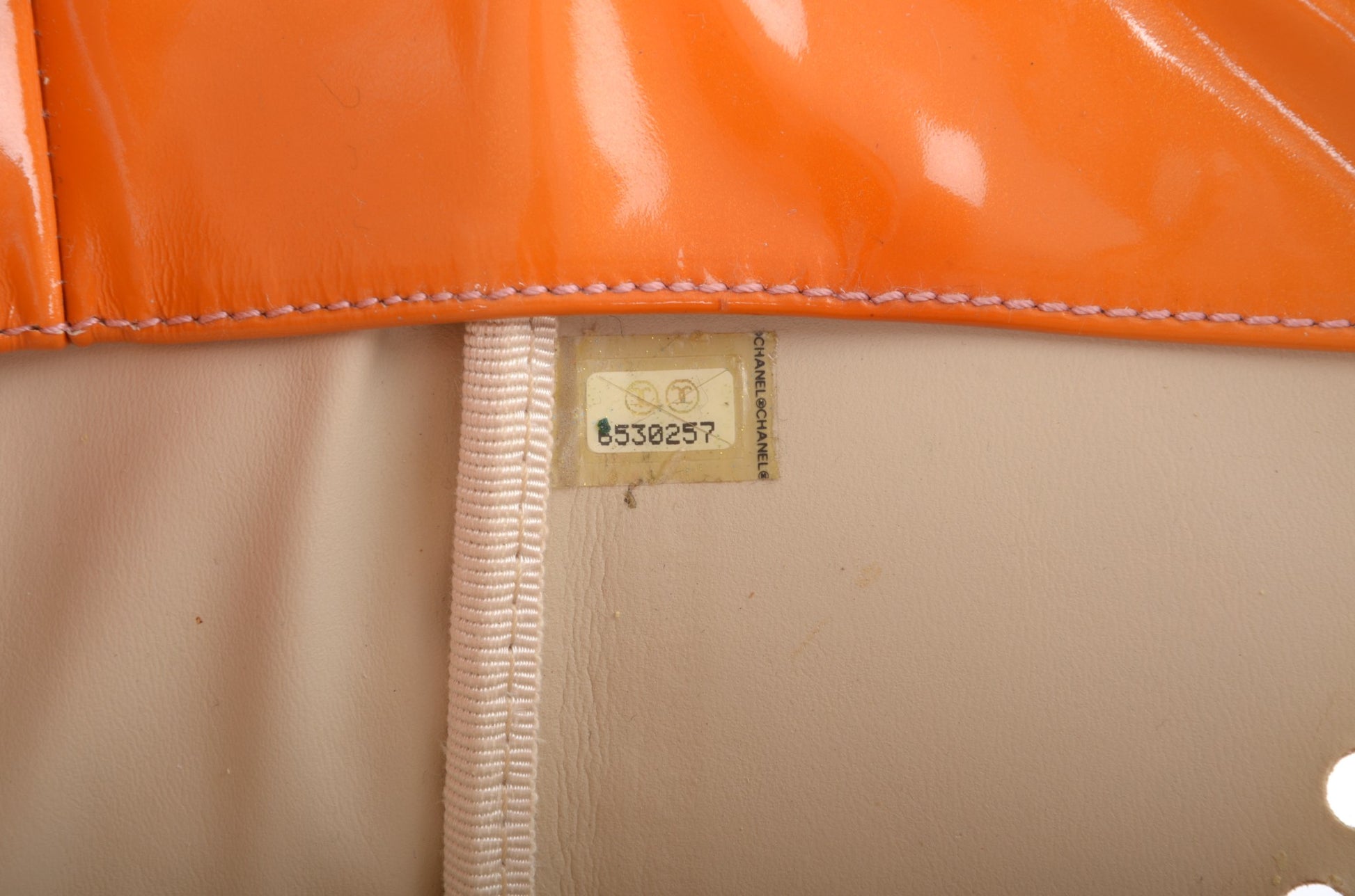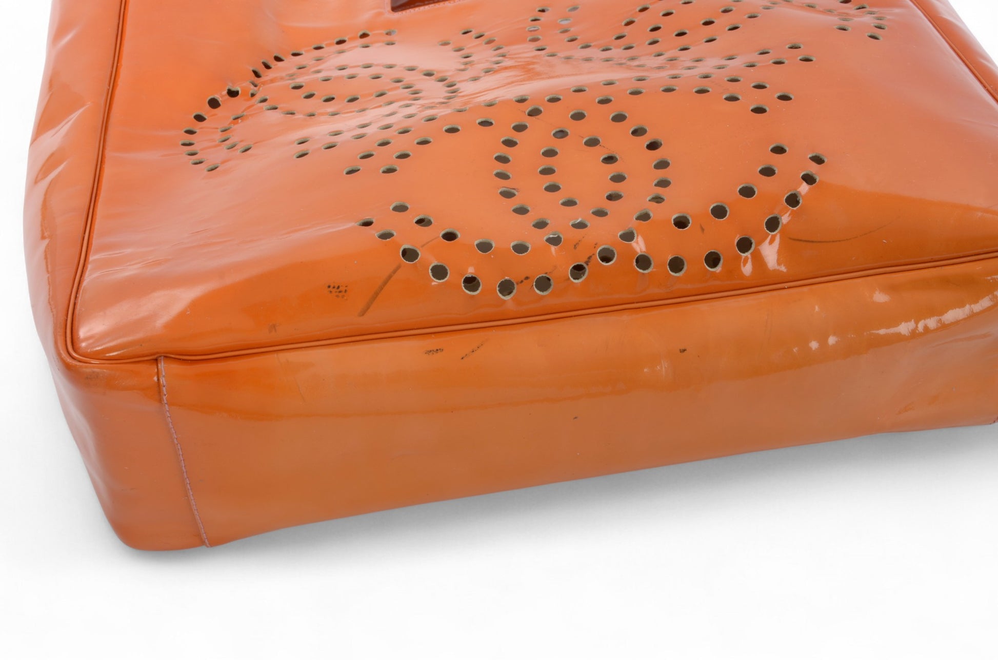 Chanel CC Triple Logo Enamel Tote Bag Handbag Patent Leather Orange Vintage Designer Classic Authentic