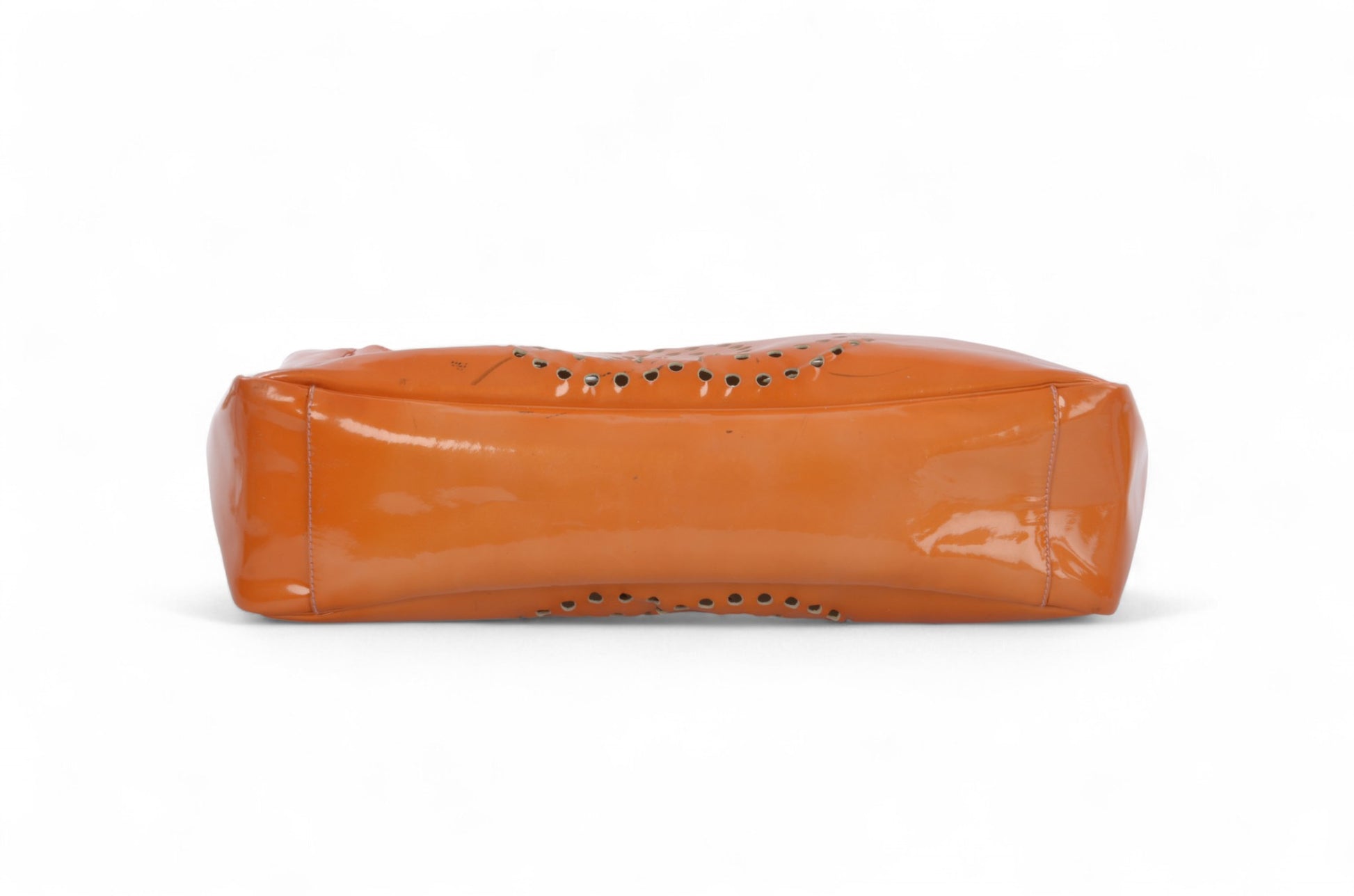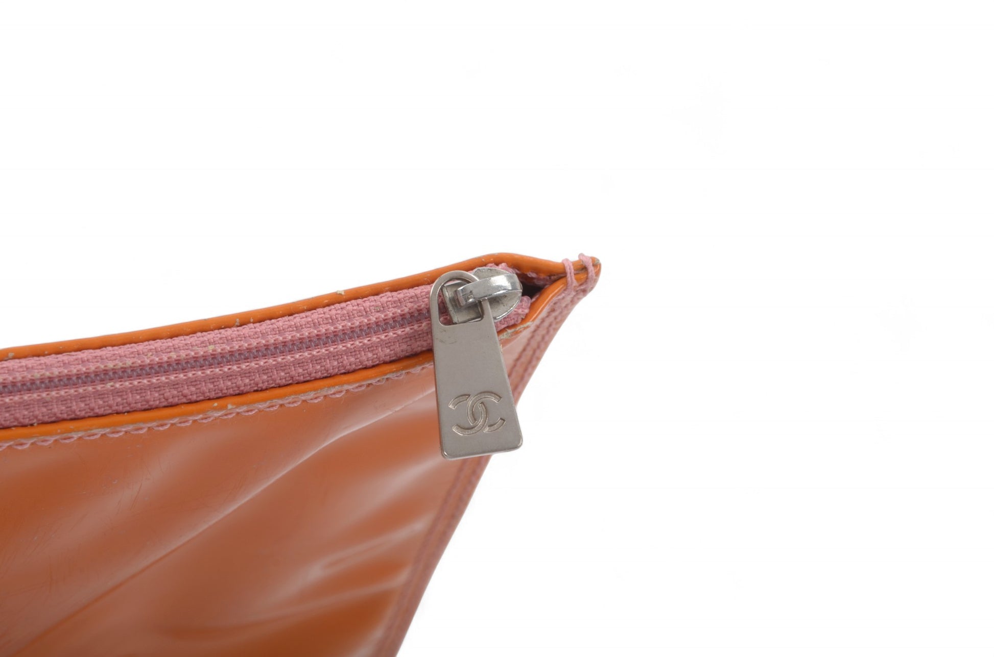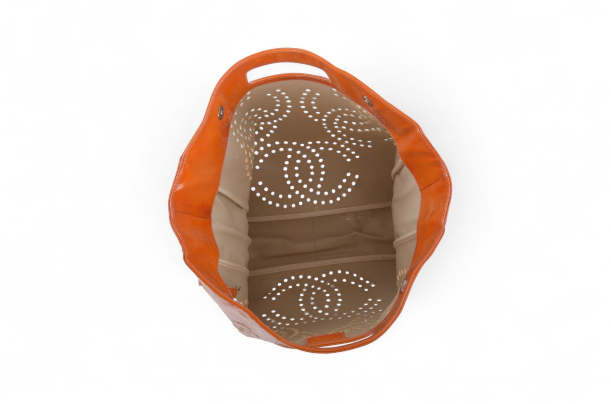 Chanel CC Triple Logo Enamel Tote Bag Handbag Patent Leather Orange Vintage Designer Classic Authentic