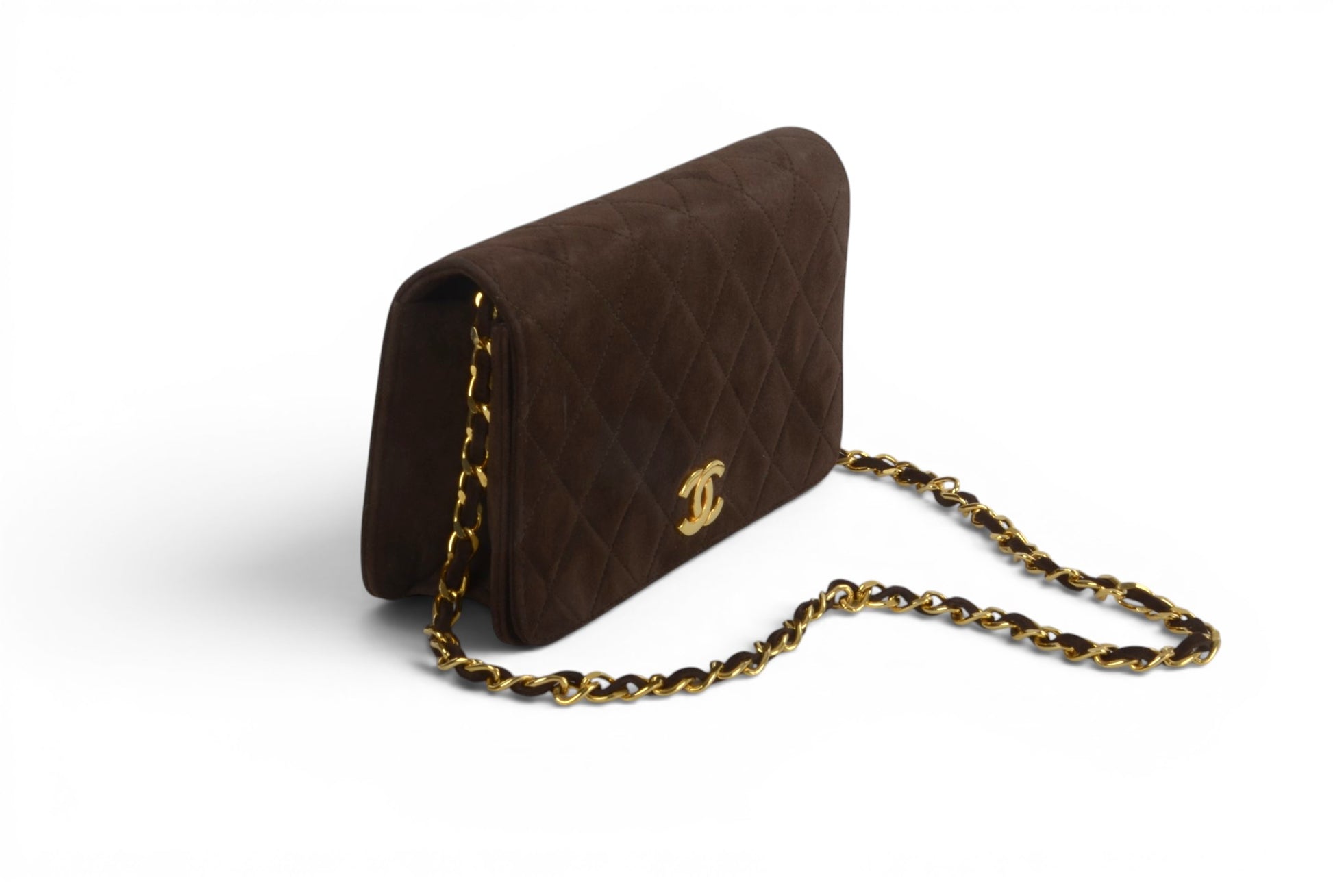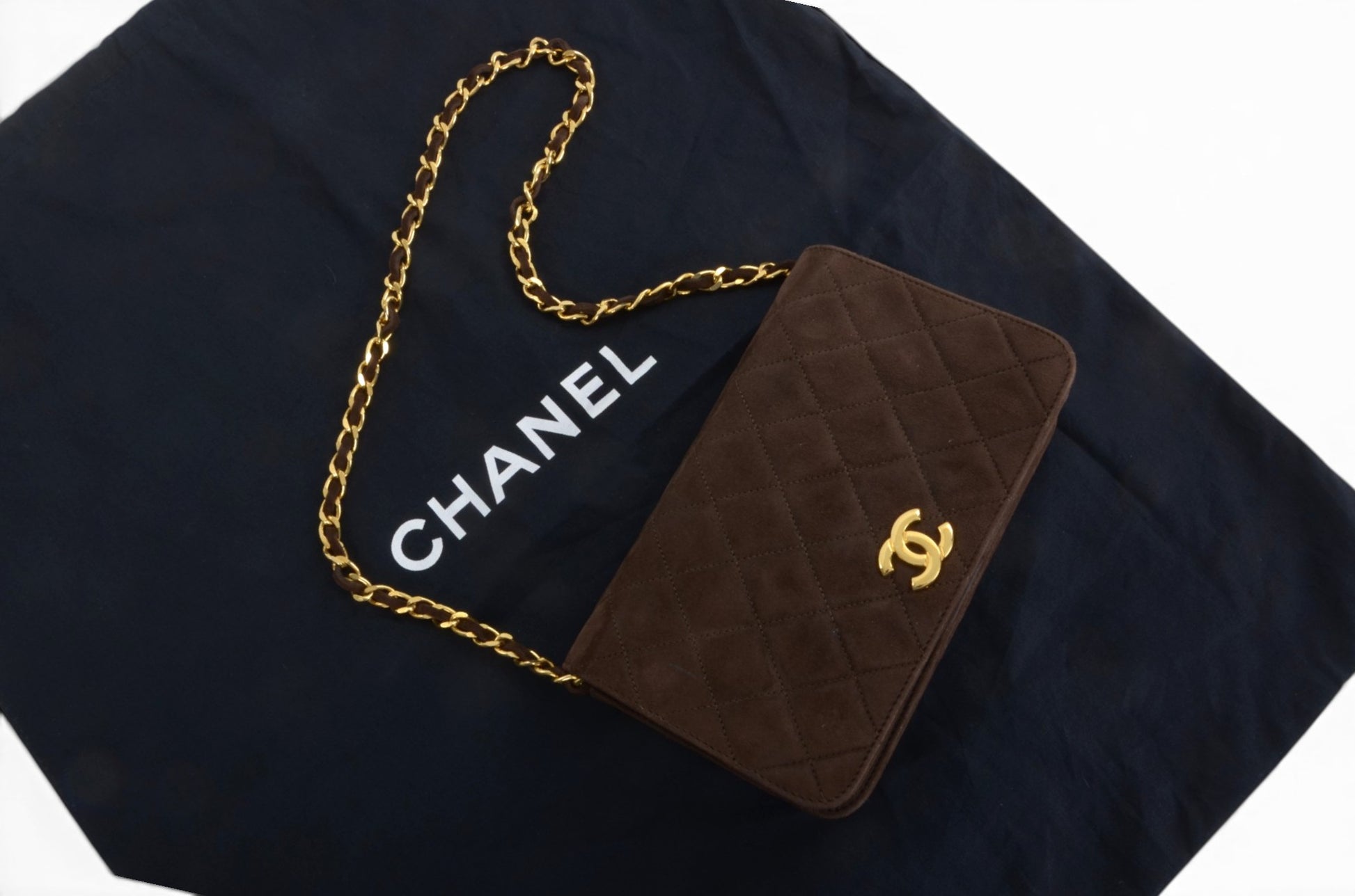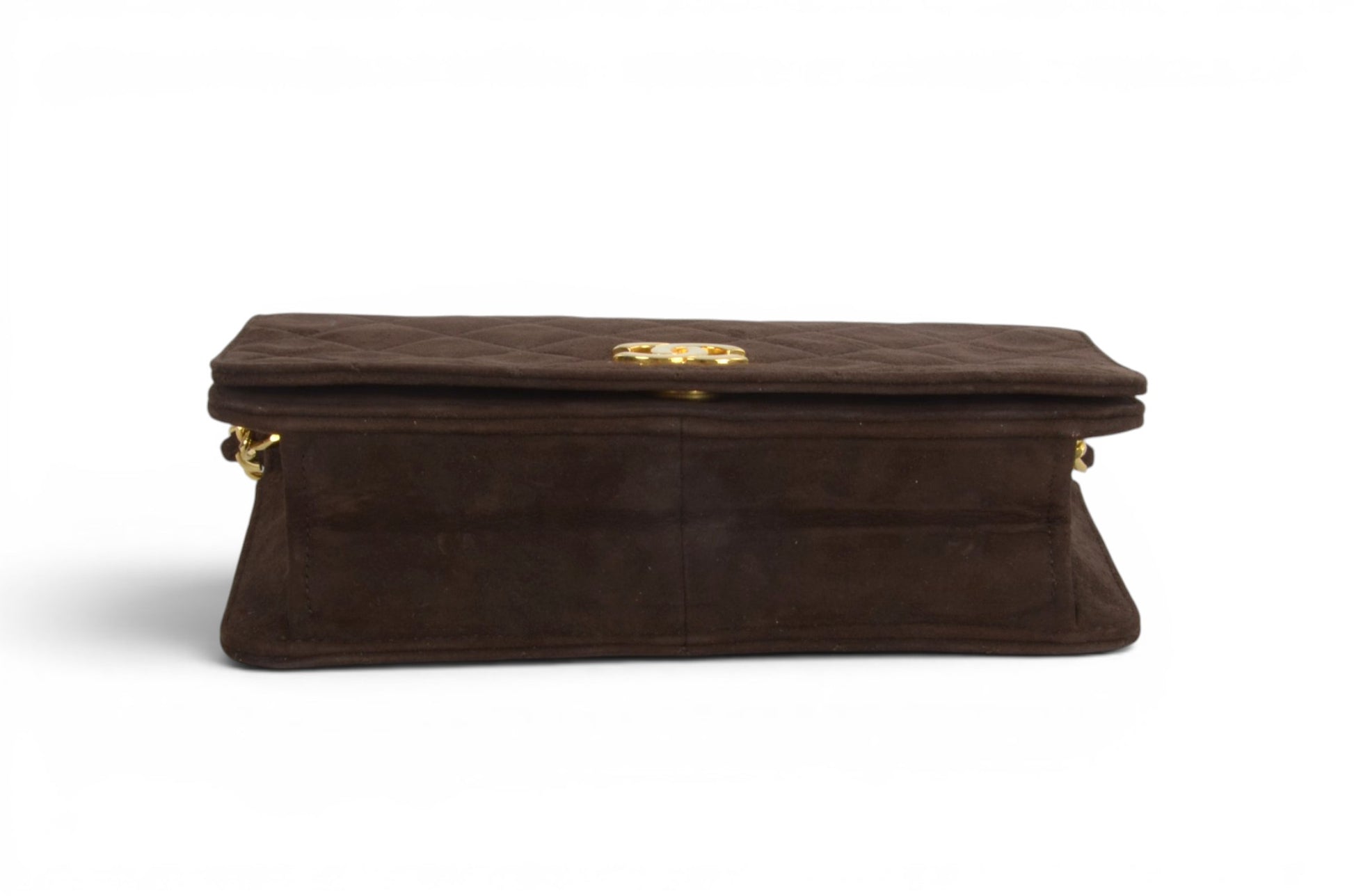 Chanel Classic Single Flap Matelasse Bag Brown Suede CC Lock Chain Shoulder Bag Vintage Designer