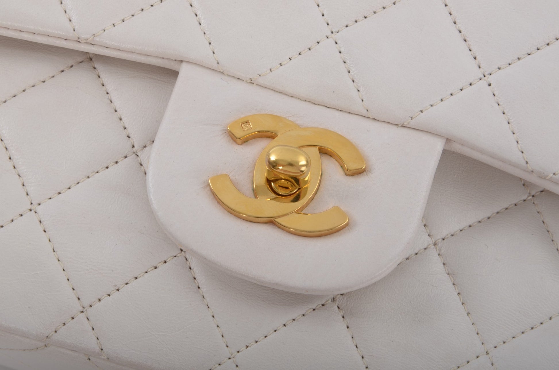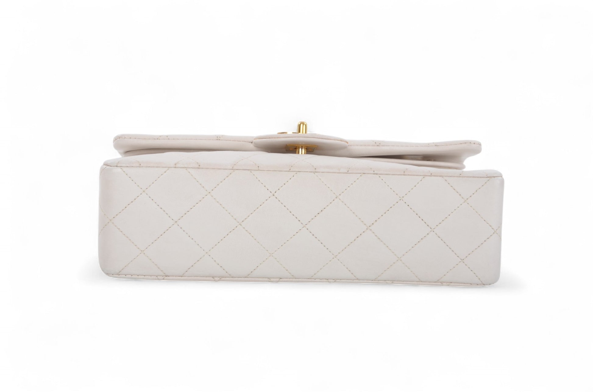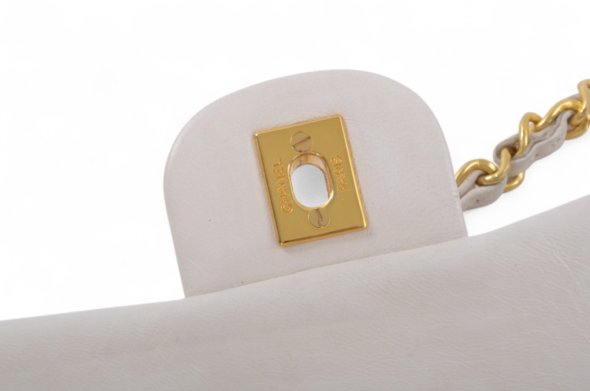 Chanel Classic Small Double Flap Bag White Lambskin W-Flap 23 Matelasse Coco Mark Turn Lock Chain Shoulder Bag CrossbodyVintage