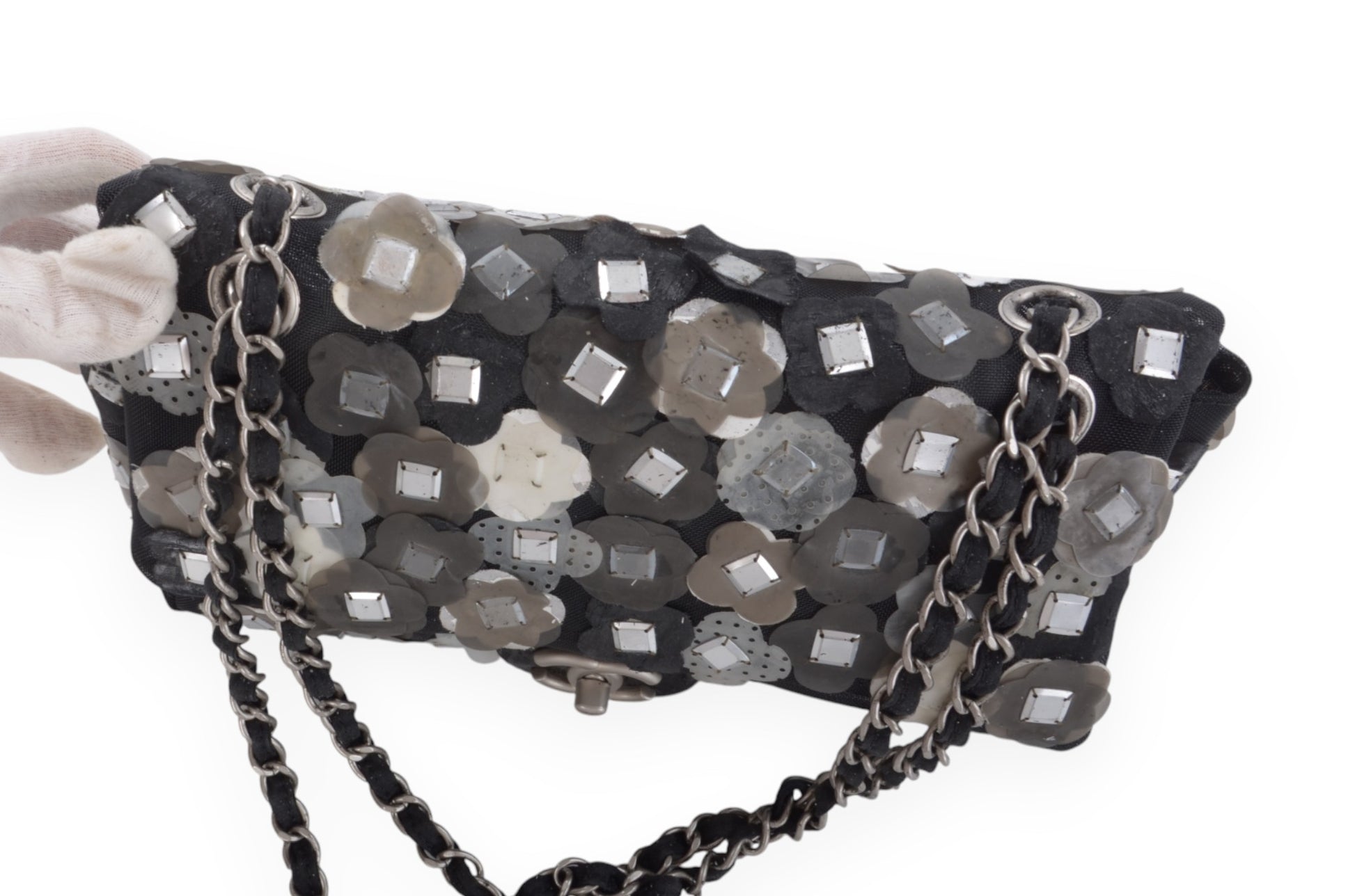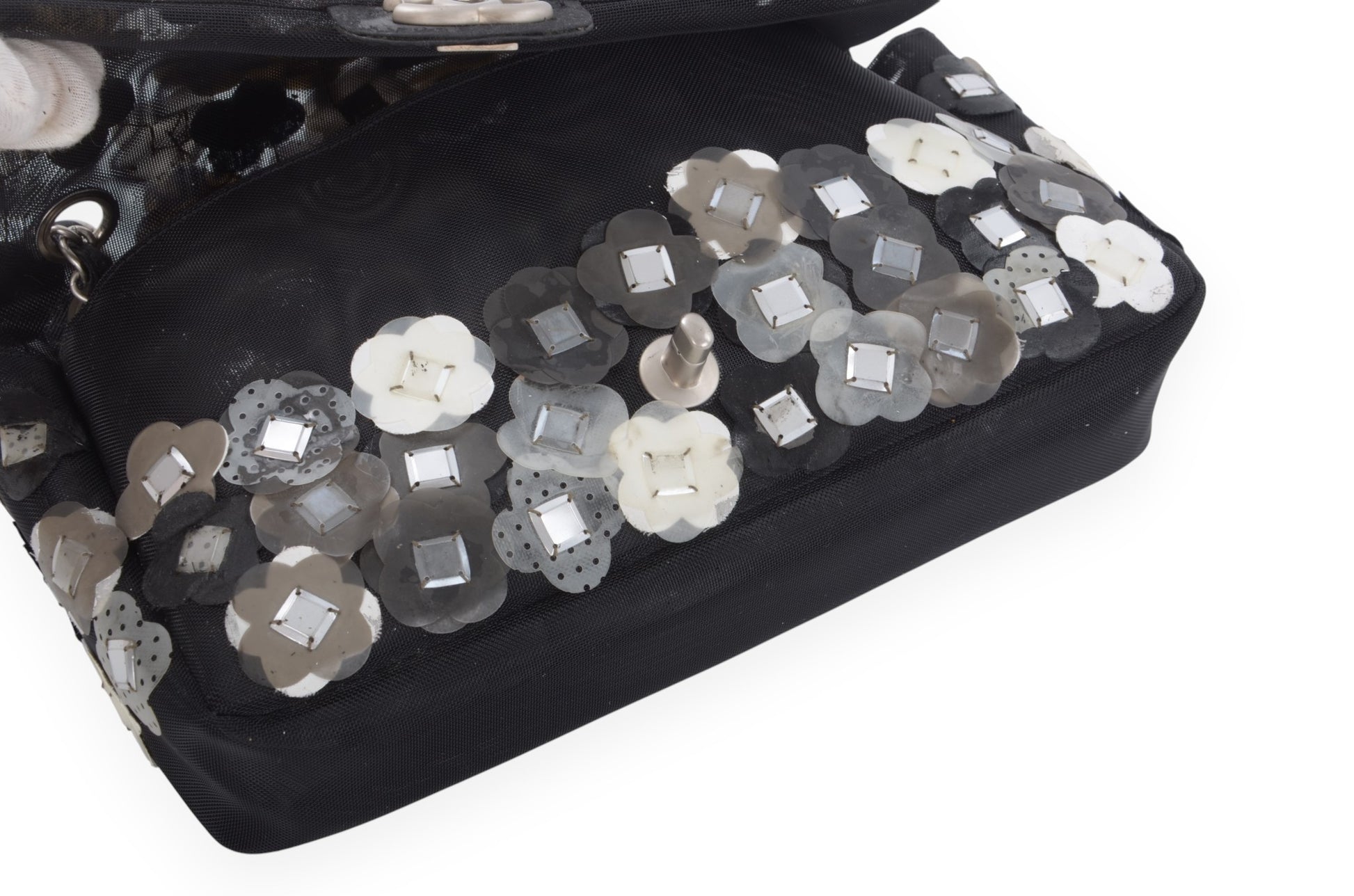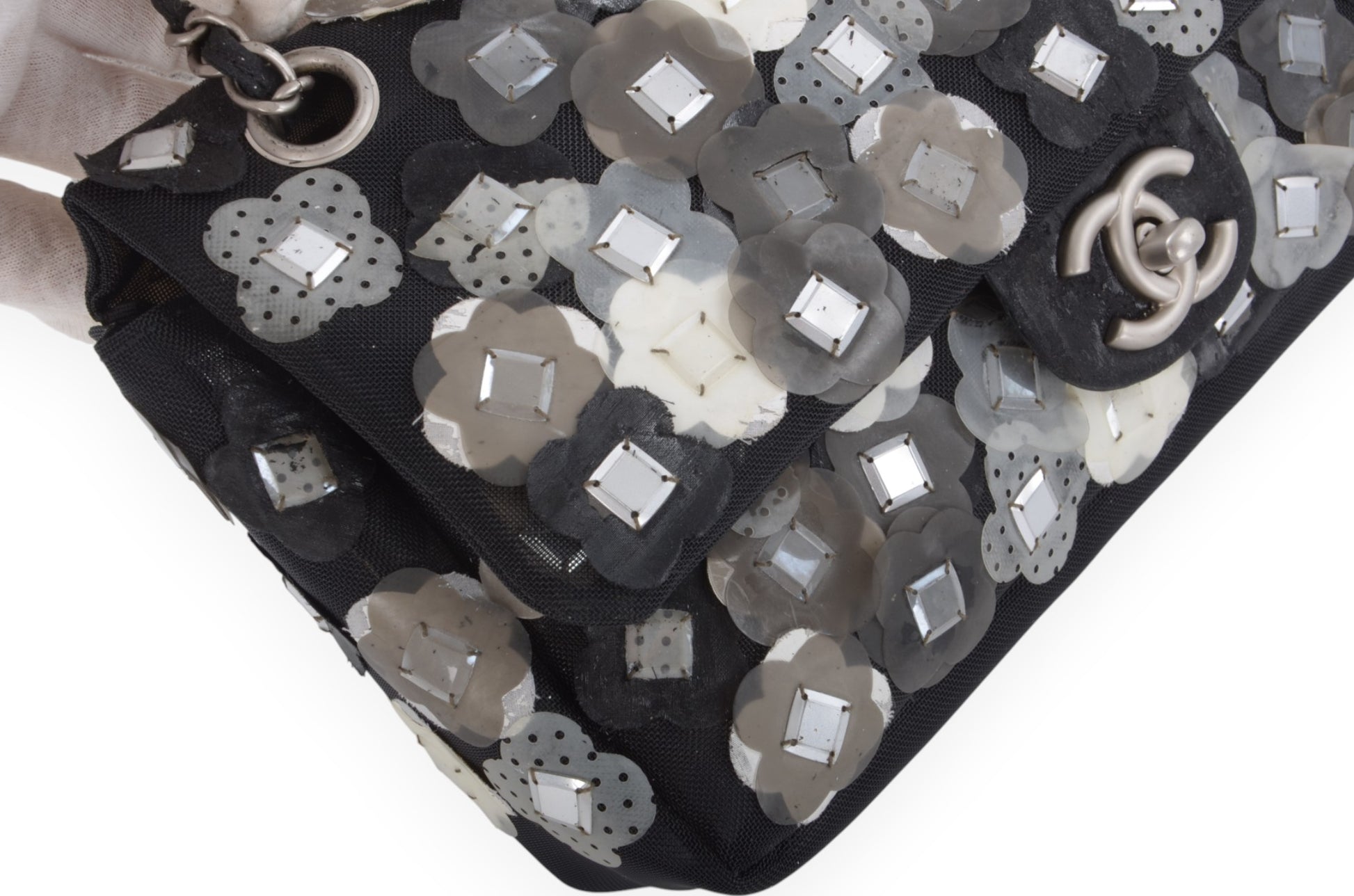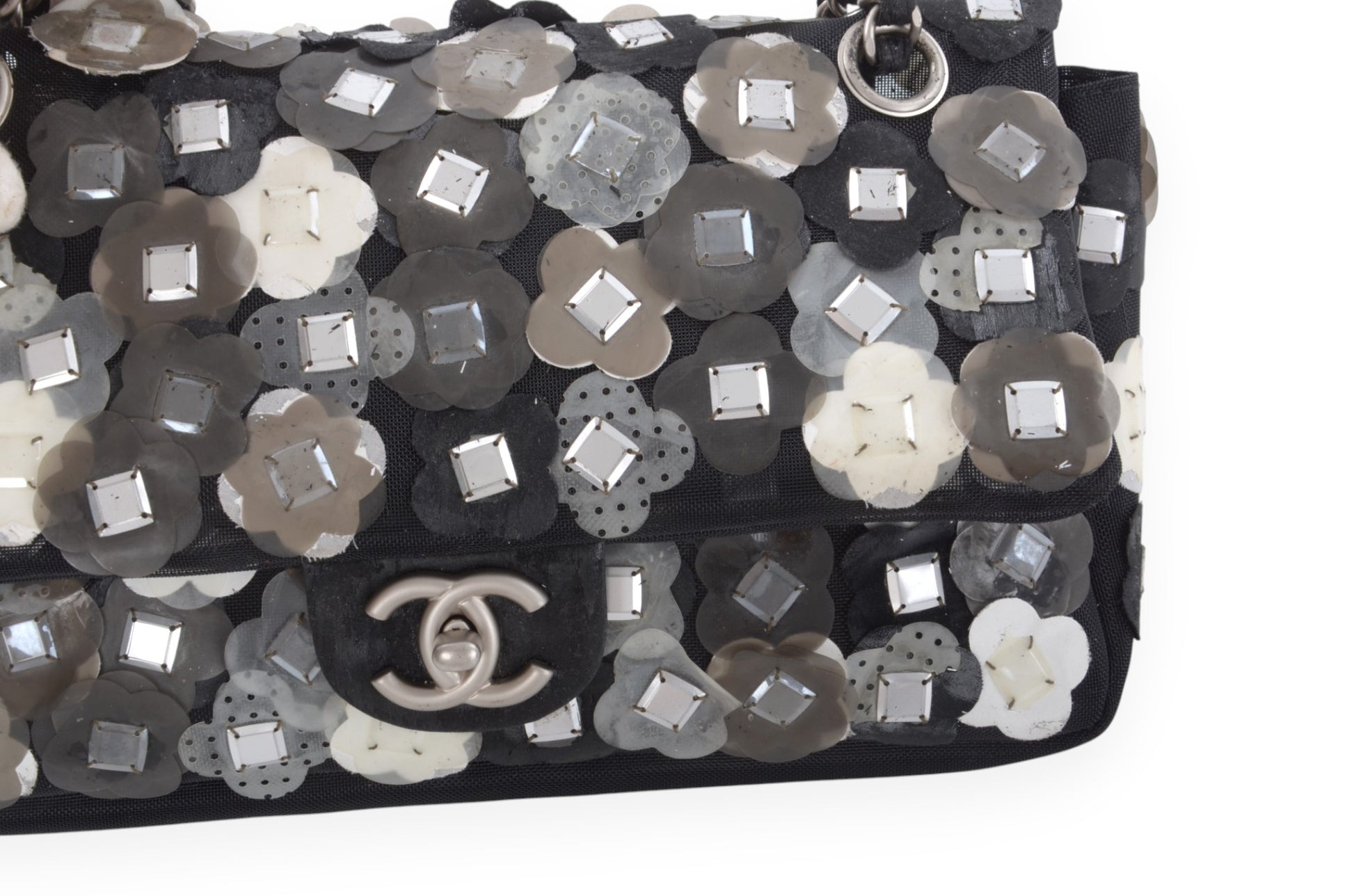 Chanel Mesh Paillette Floral Camellia Flap Bag
