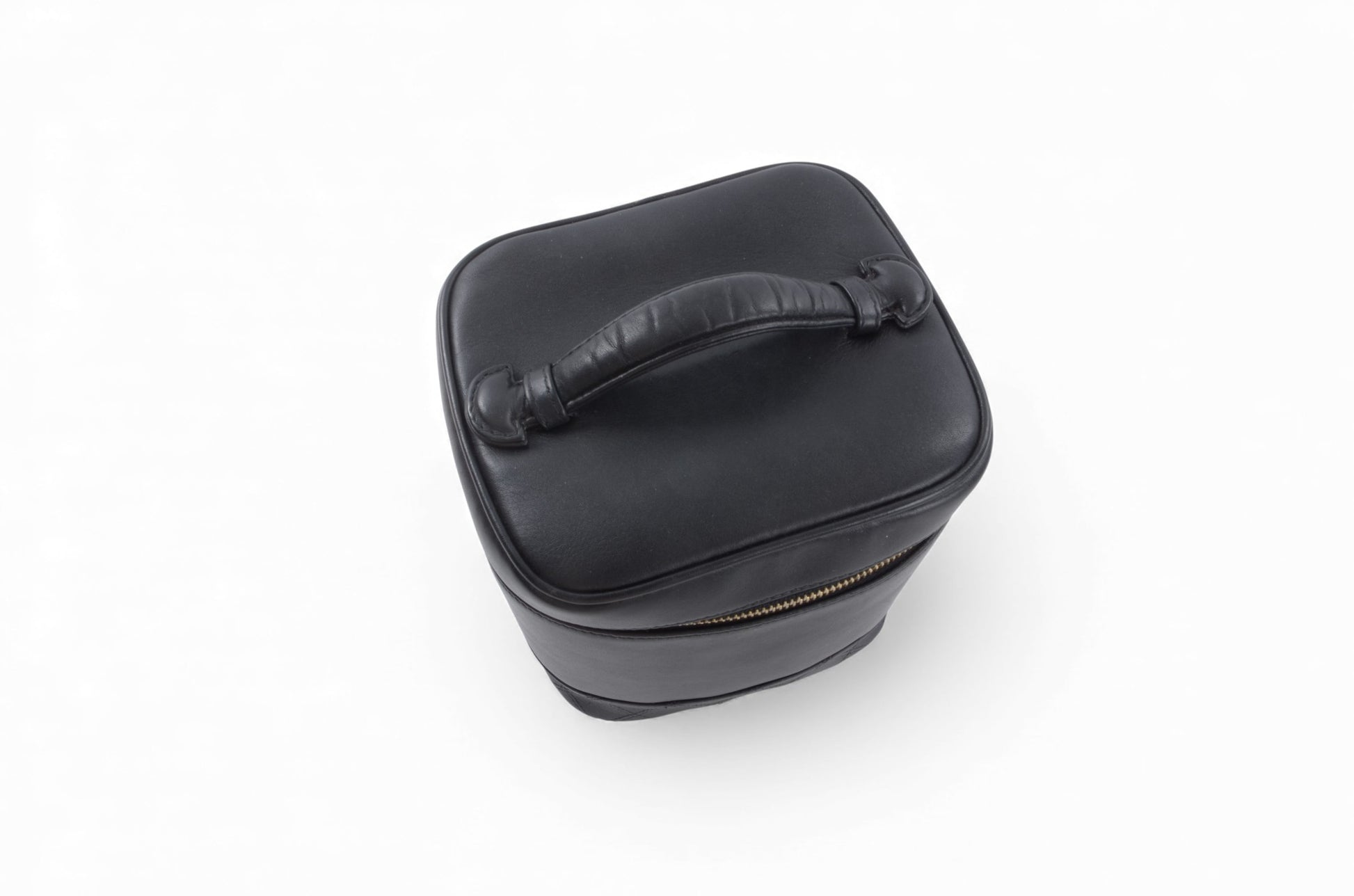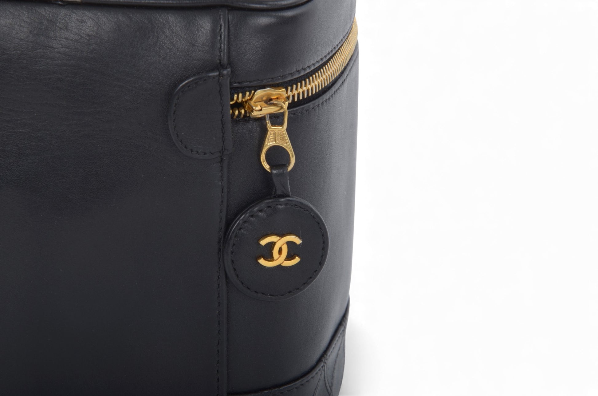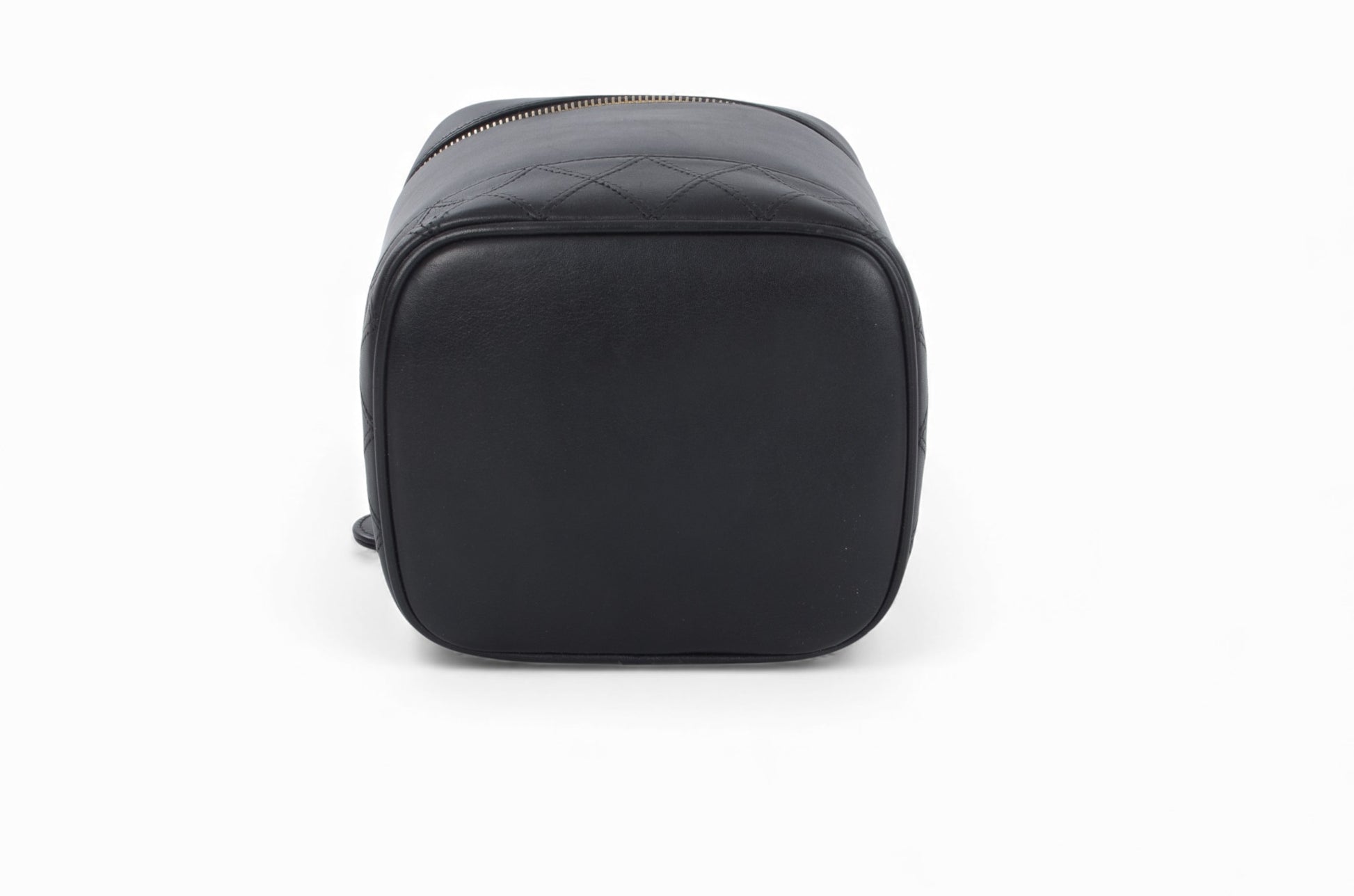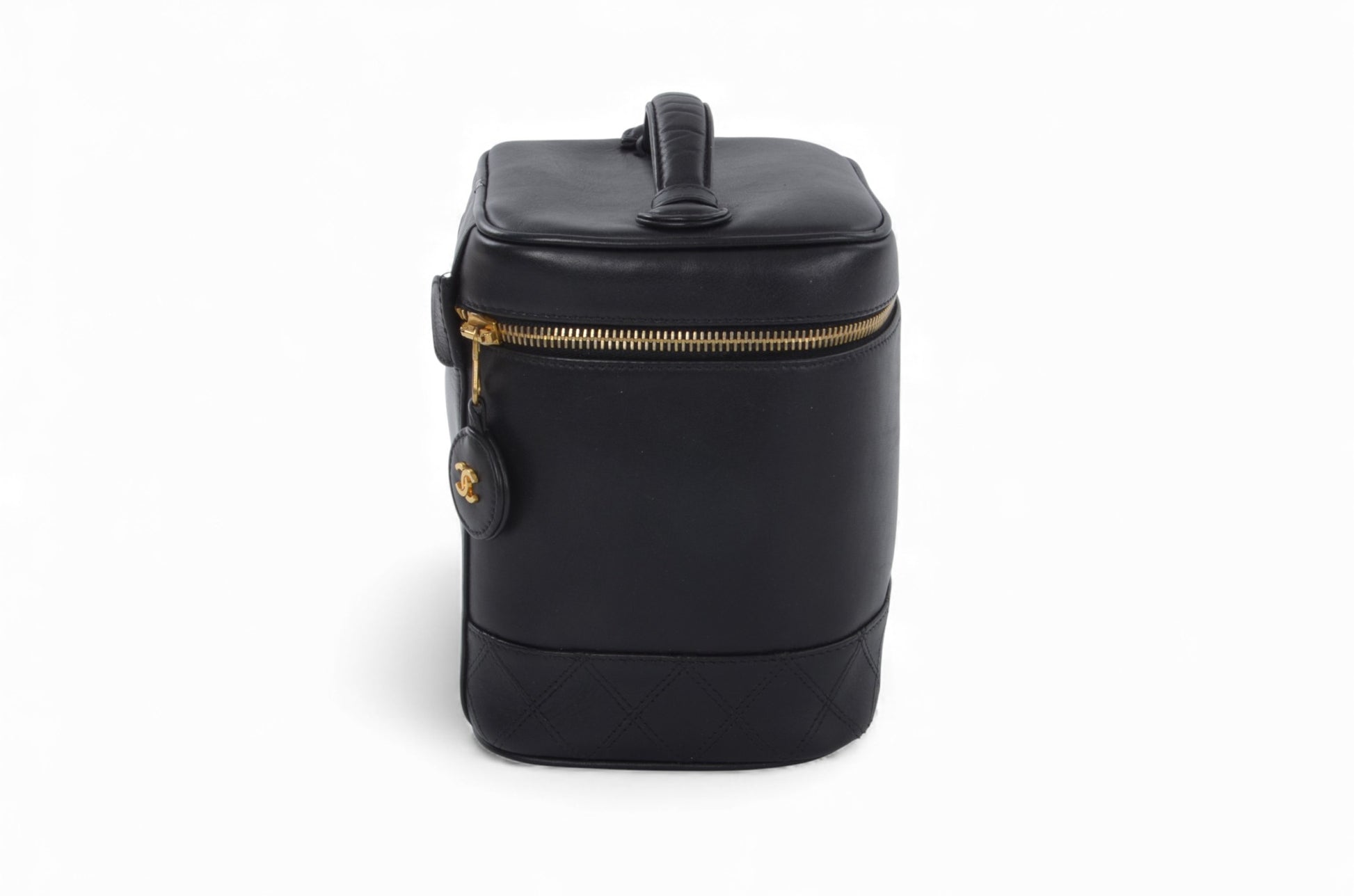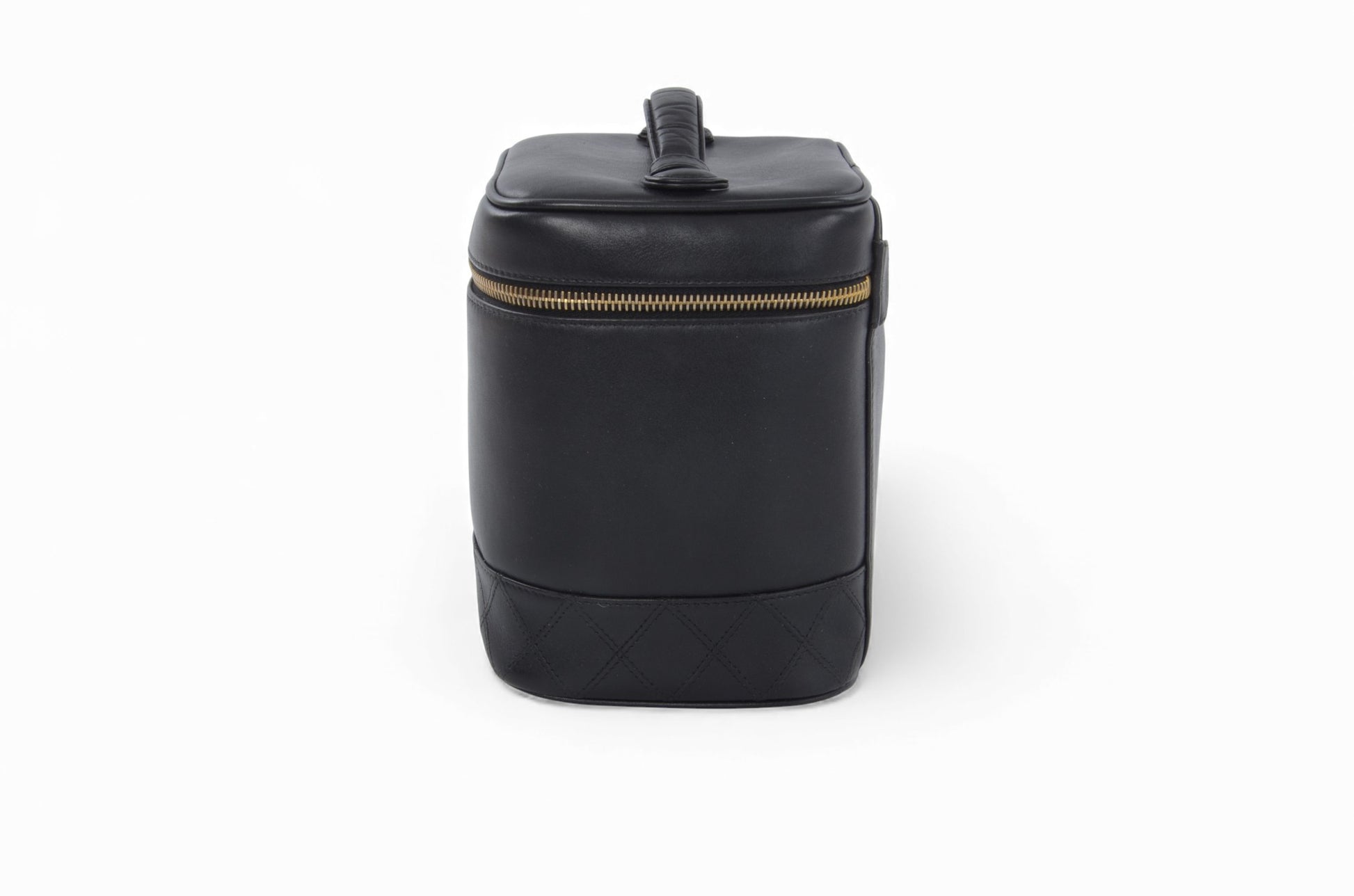 Chanel Quilted Vanity Toiletry Bag CC Logo Vintage Lambskin Leather Black Make Up Pouch