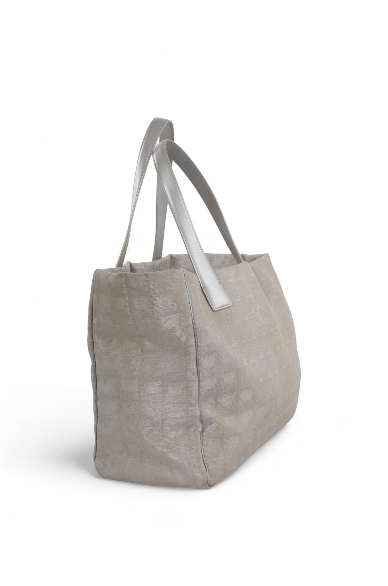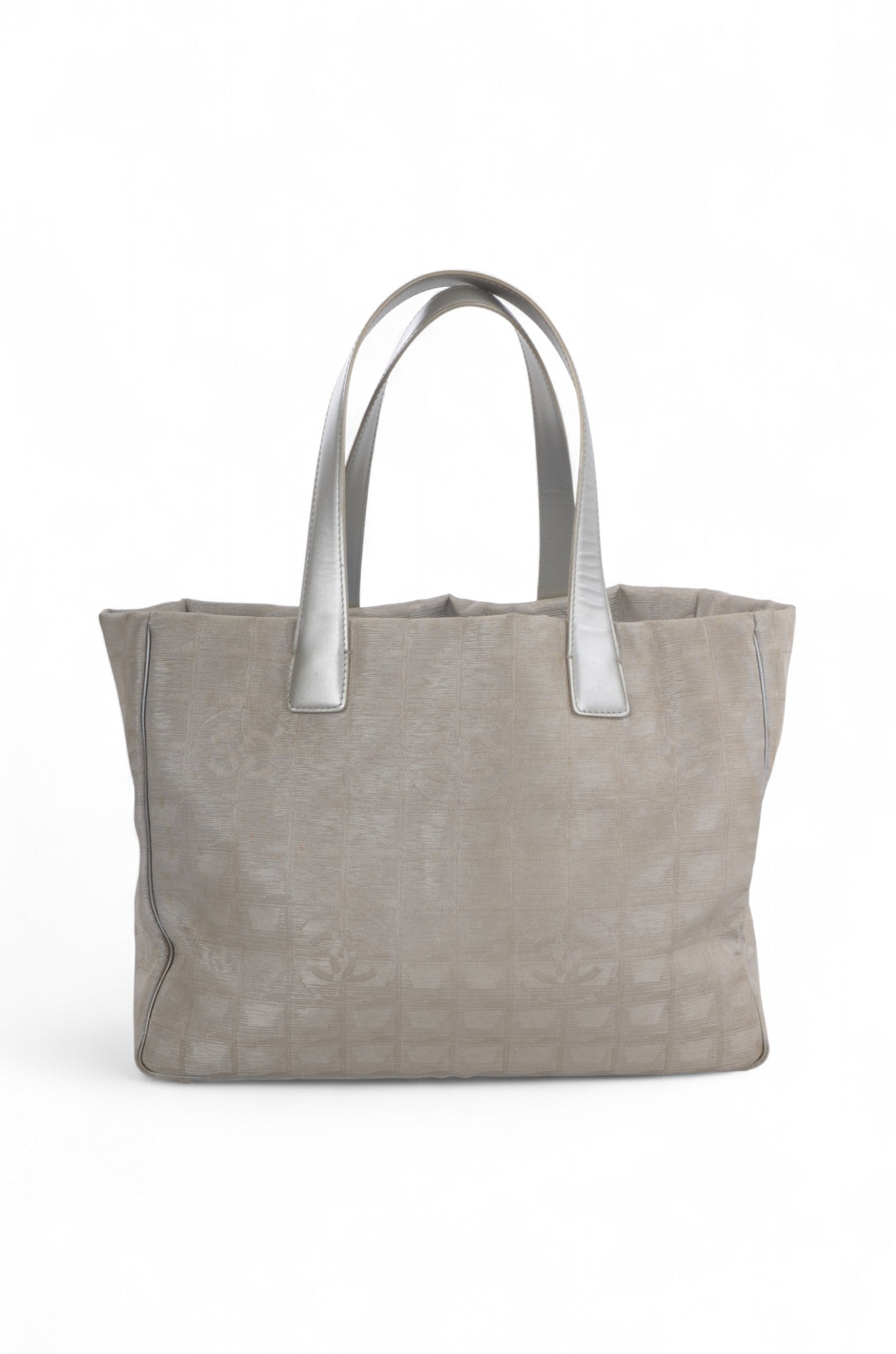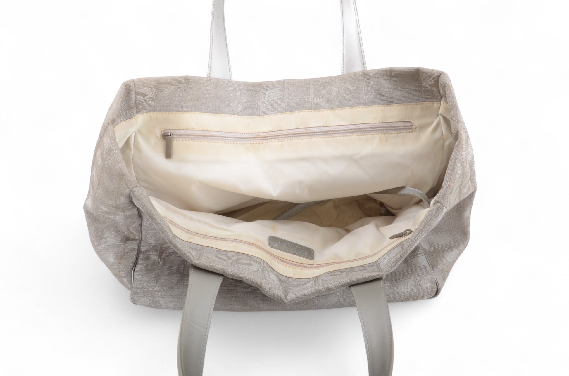 Chanel Silver Nylon CC Logo Vintage Travel Line Tote Shoulder Bag Handbag Designer Classic Authentic