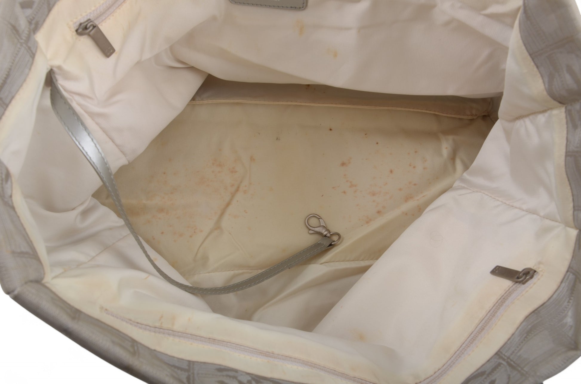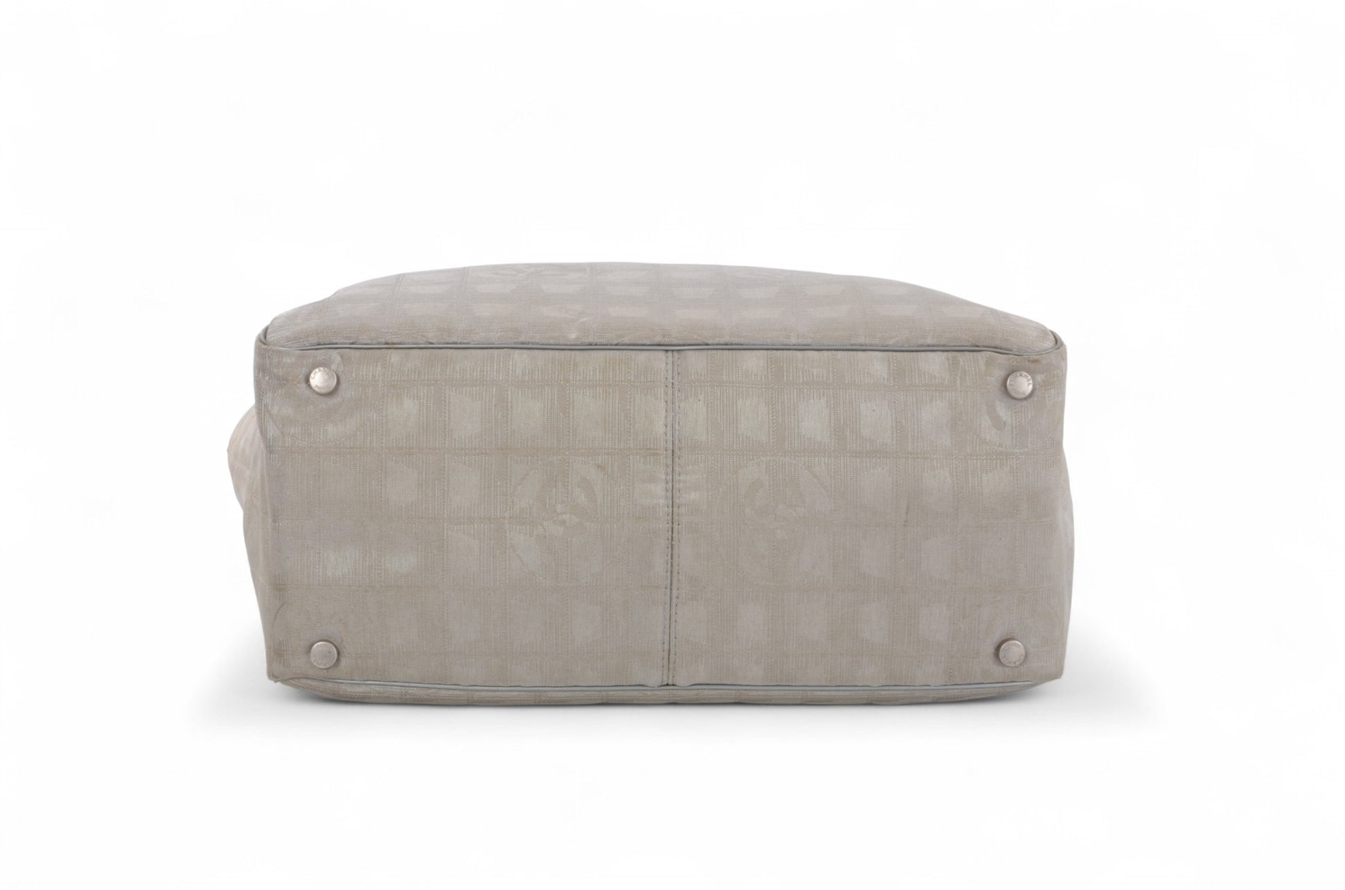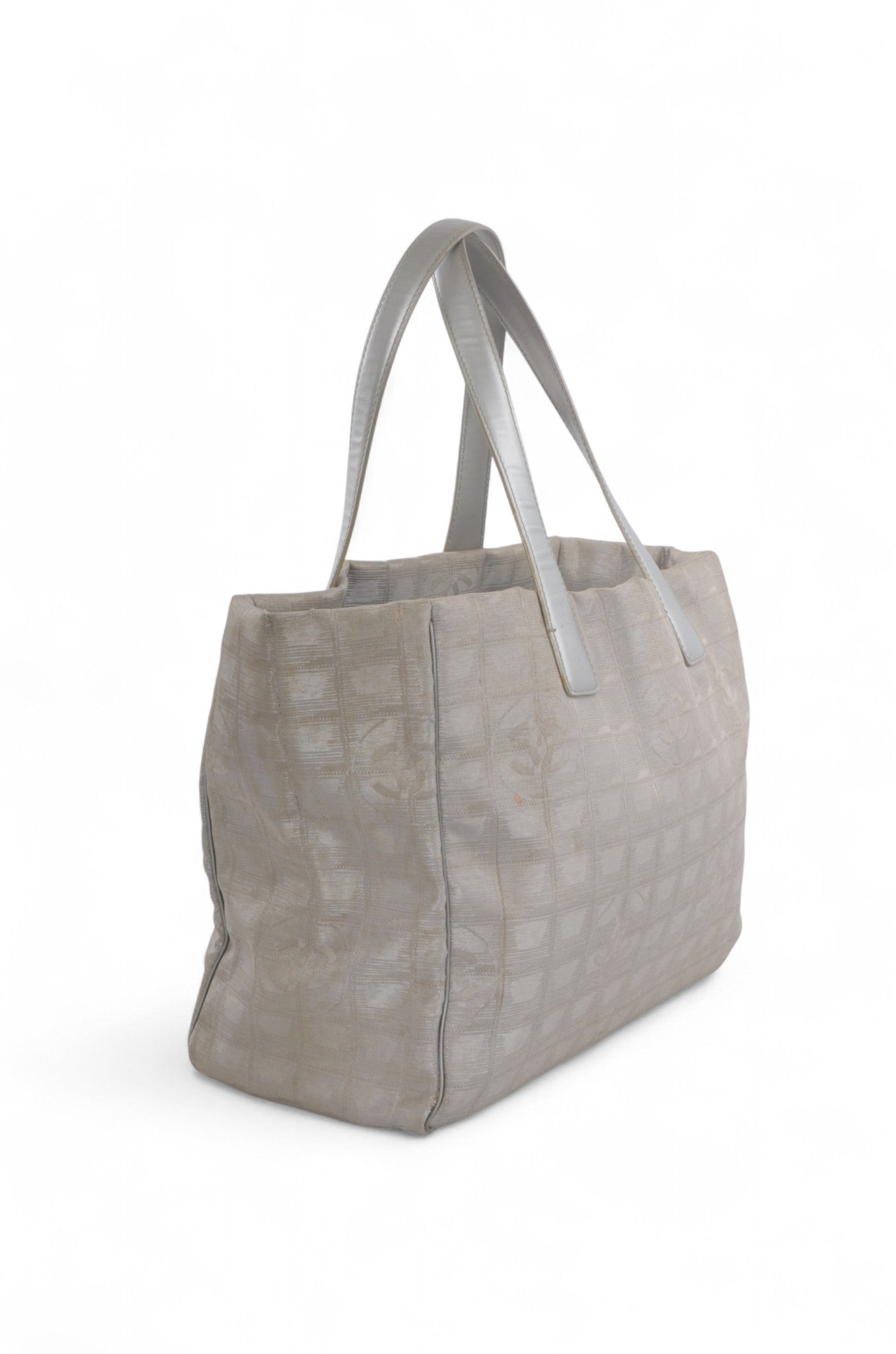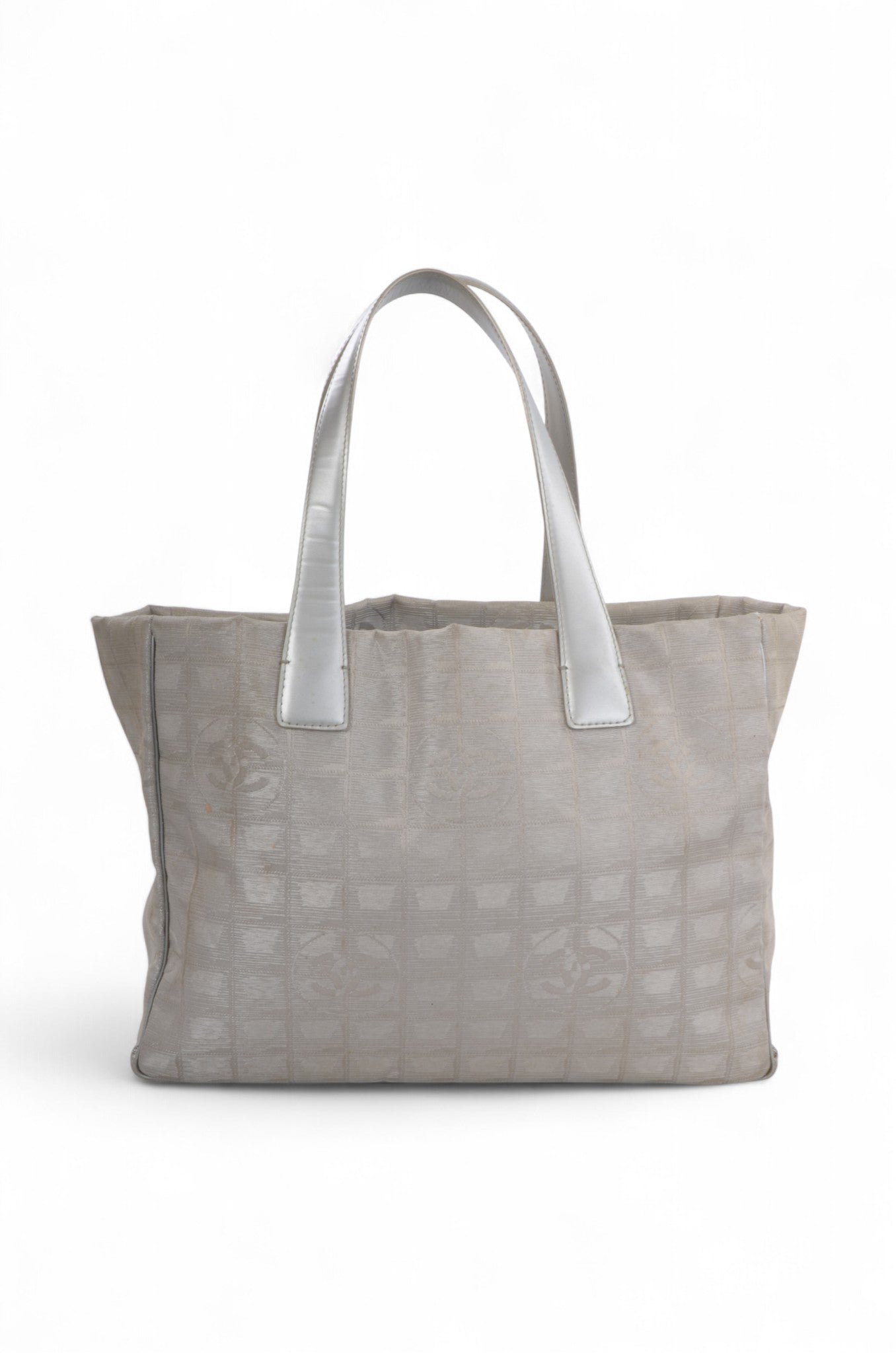 Chanel Silver Nylon CC Logo Vintage Travel Line Tote Shoulder Bag Handbag Designer Classic Authentic