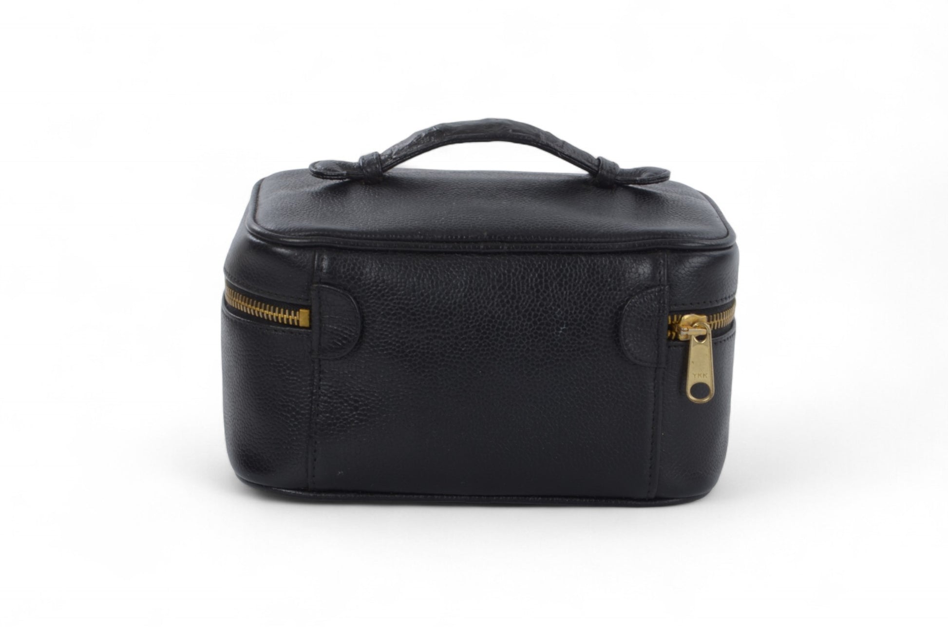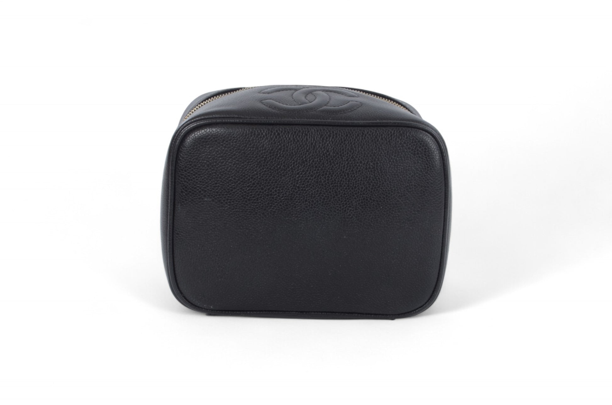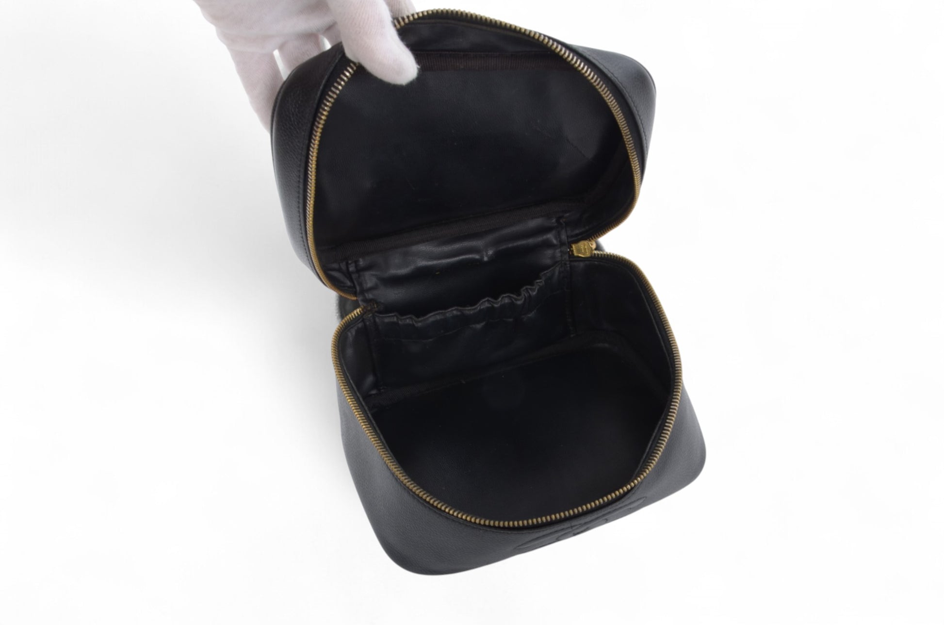 Chanel Vanity Bag CC Caviar Leather Logo Vintage Skin Black Make Up Pouch