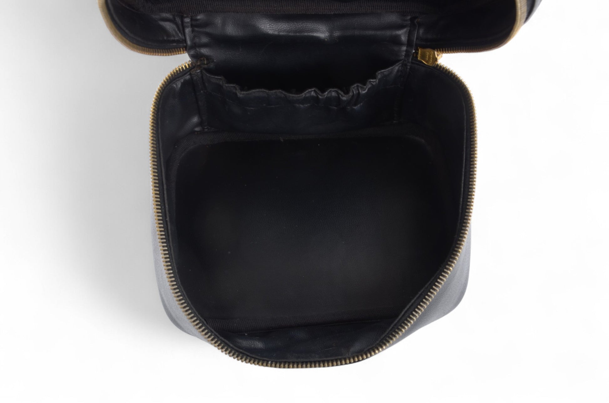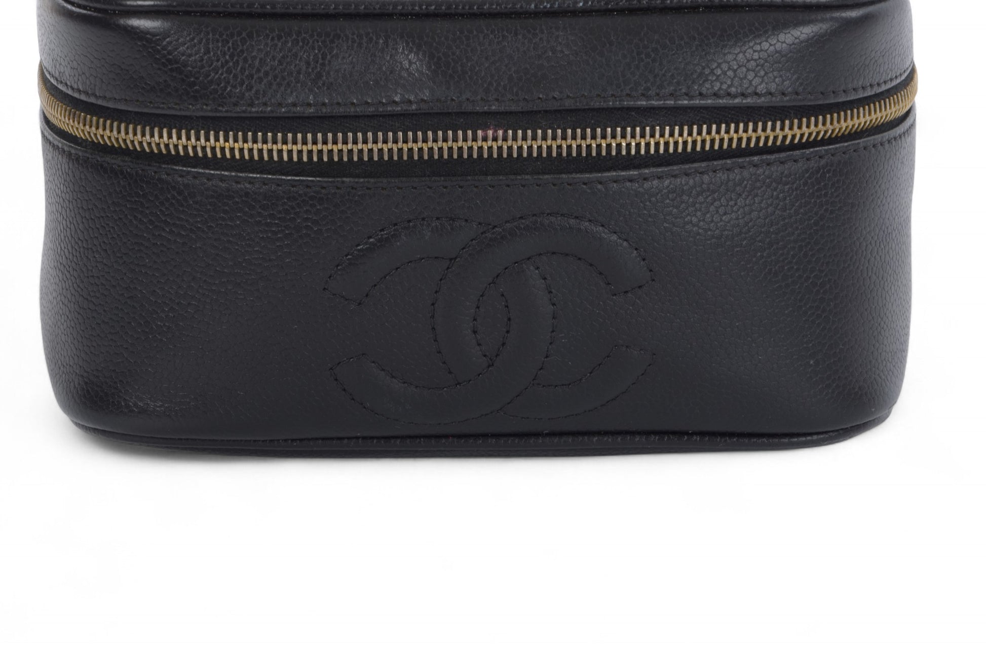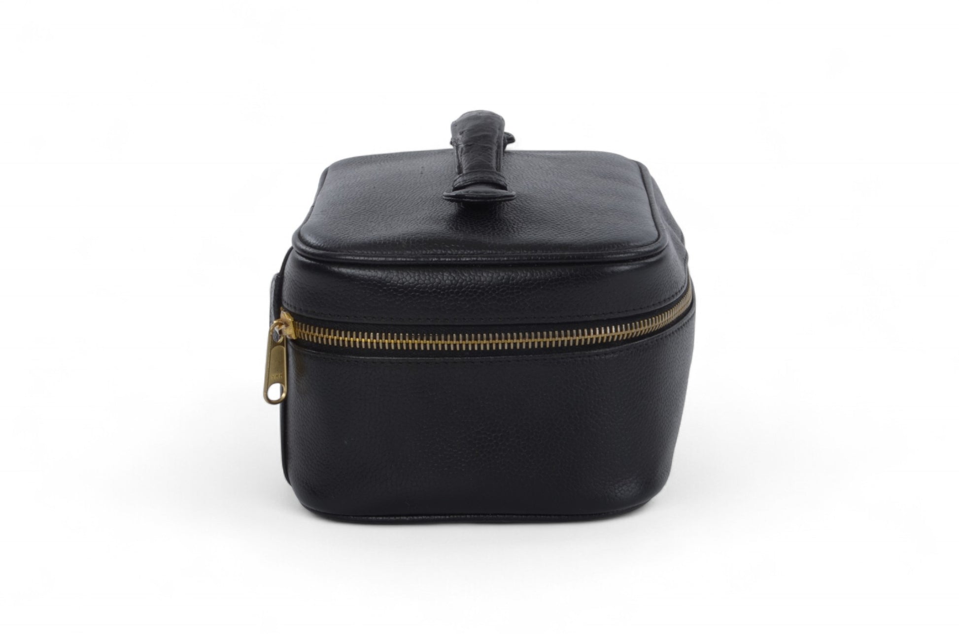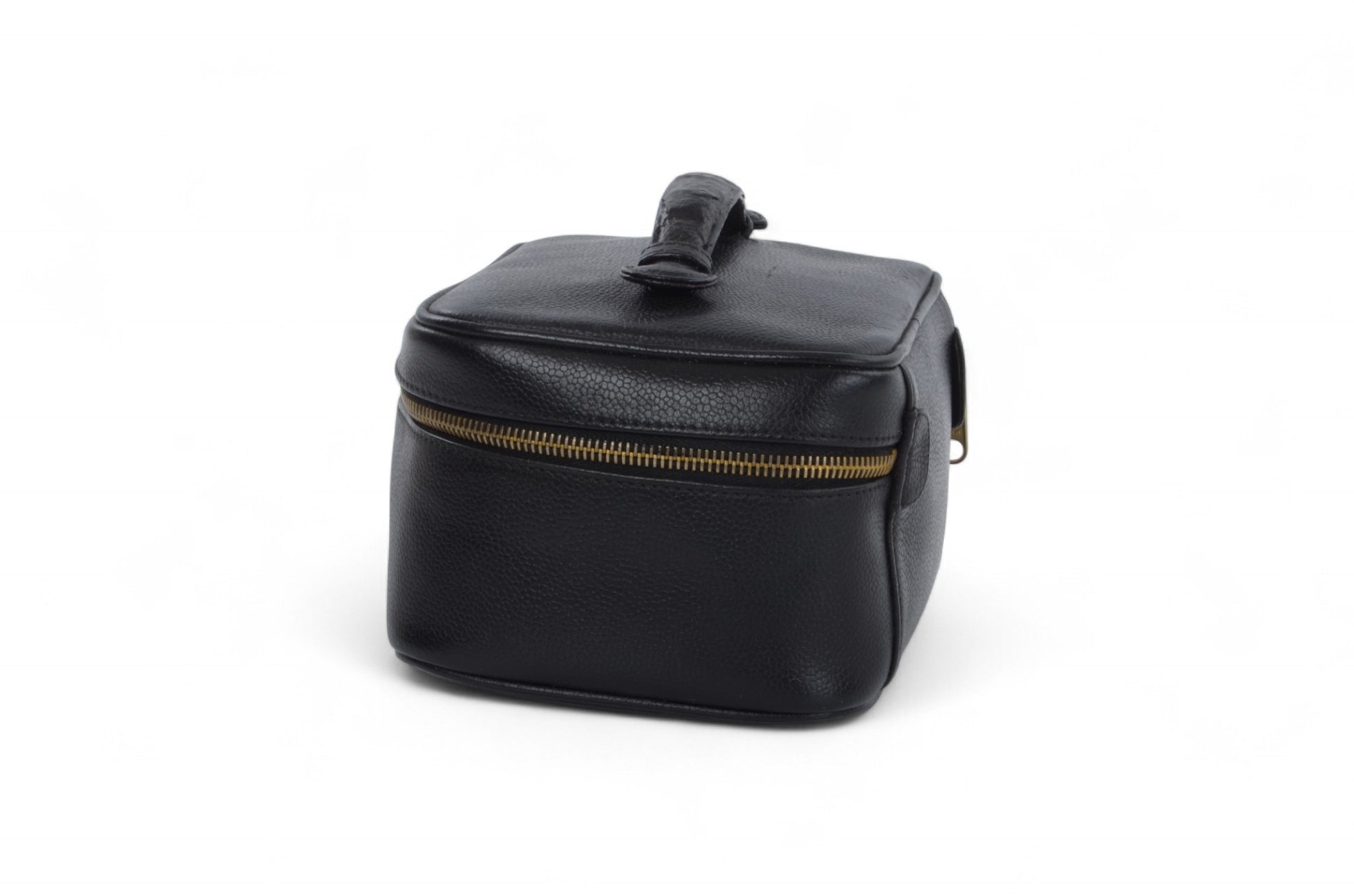 Chanel Vanity Bag CC Caviar Leather Logo Vintage Skin Black Make Up Pouch
