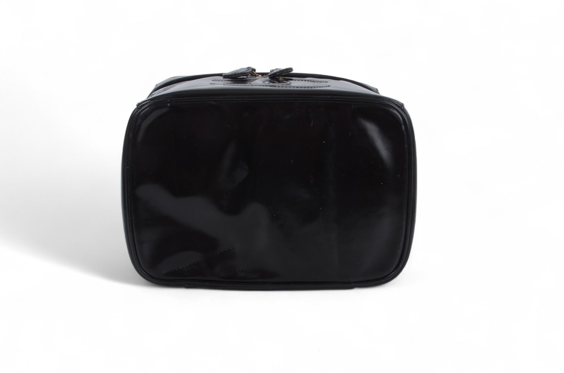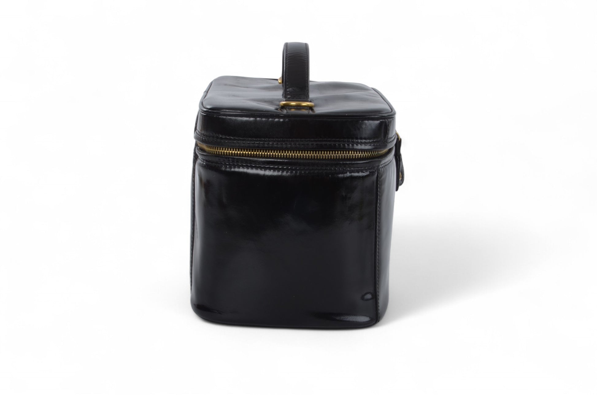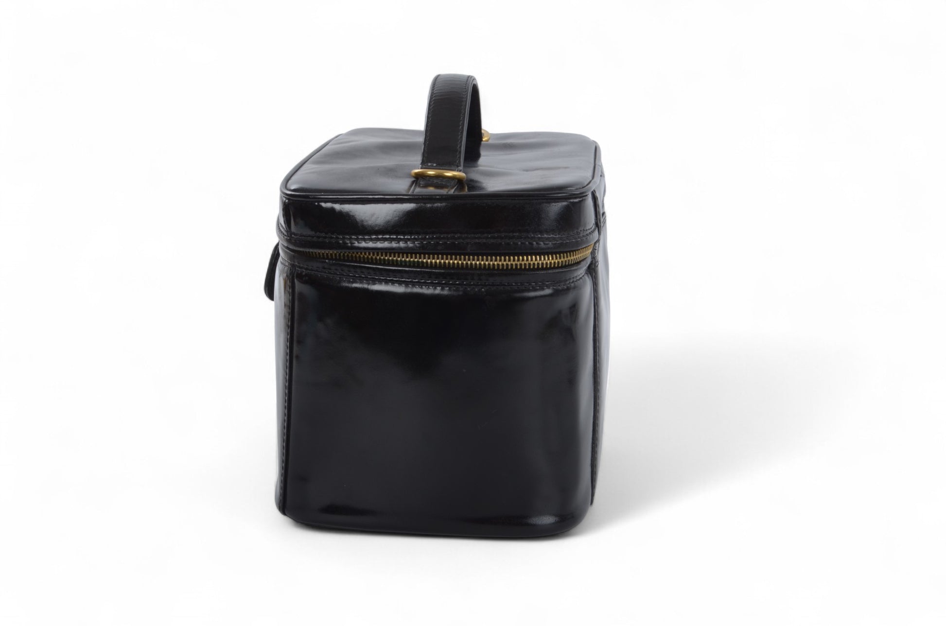 Chanel Vanity Bag CC Logo Vintage Patent Leather Black Enamel Make Up Box Designer Classic