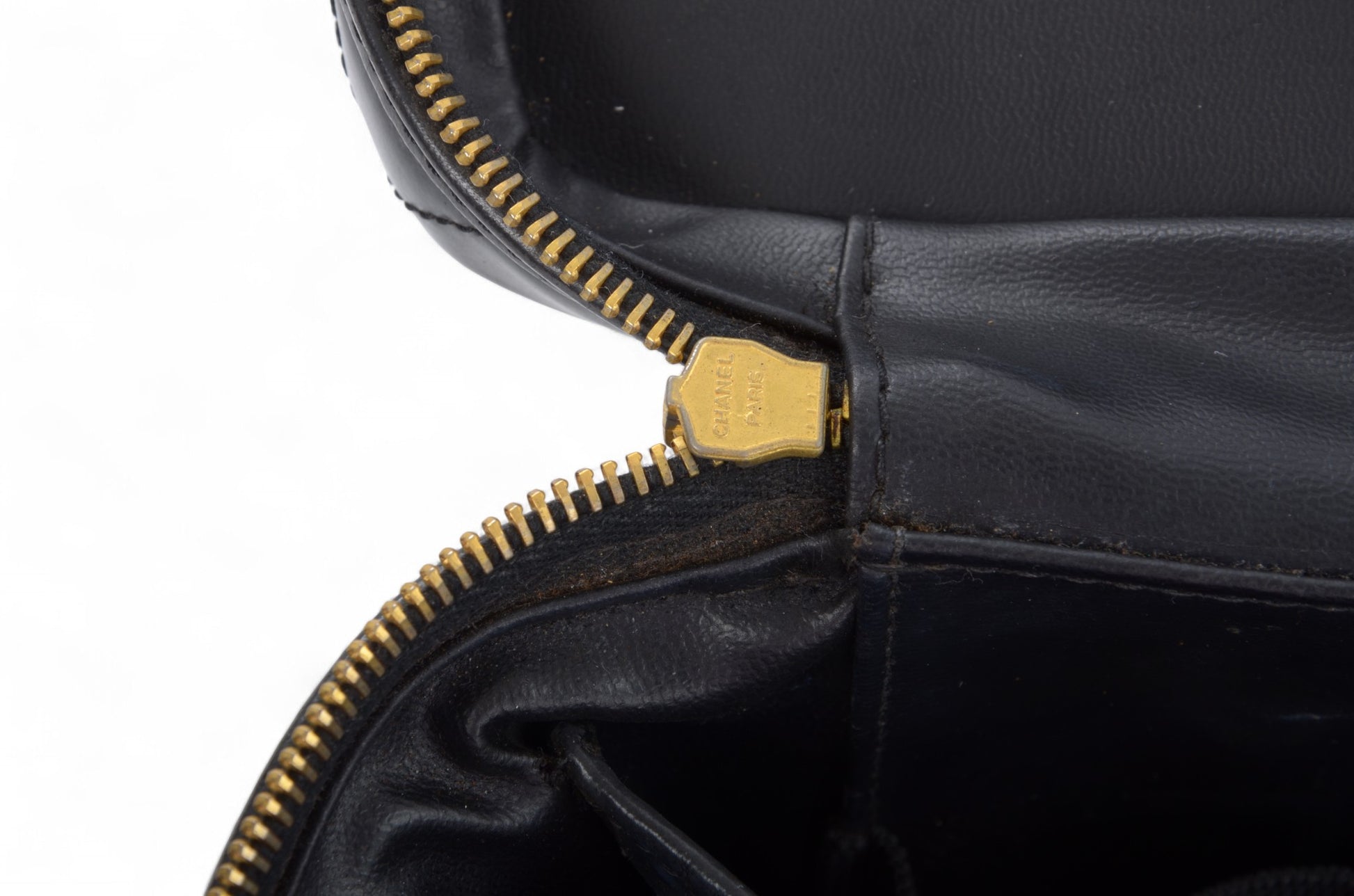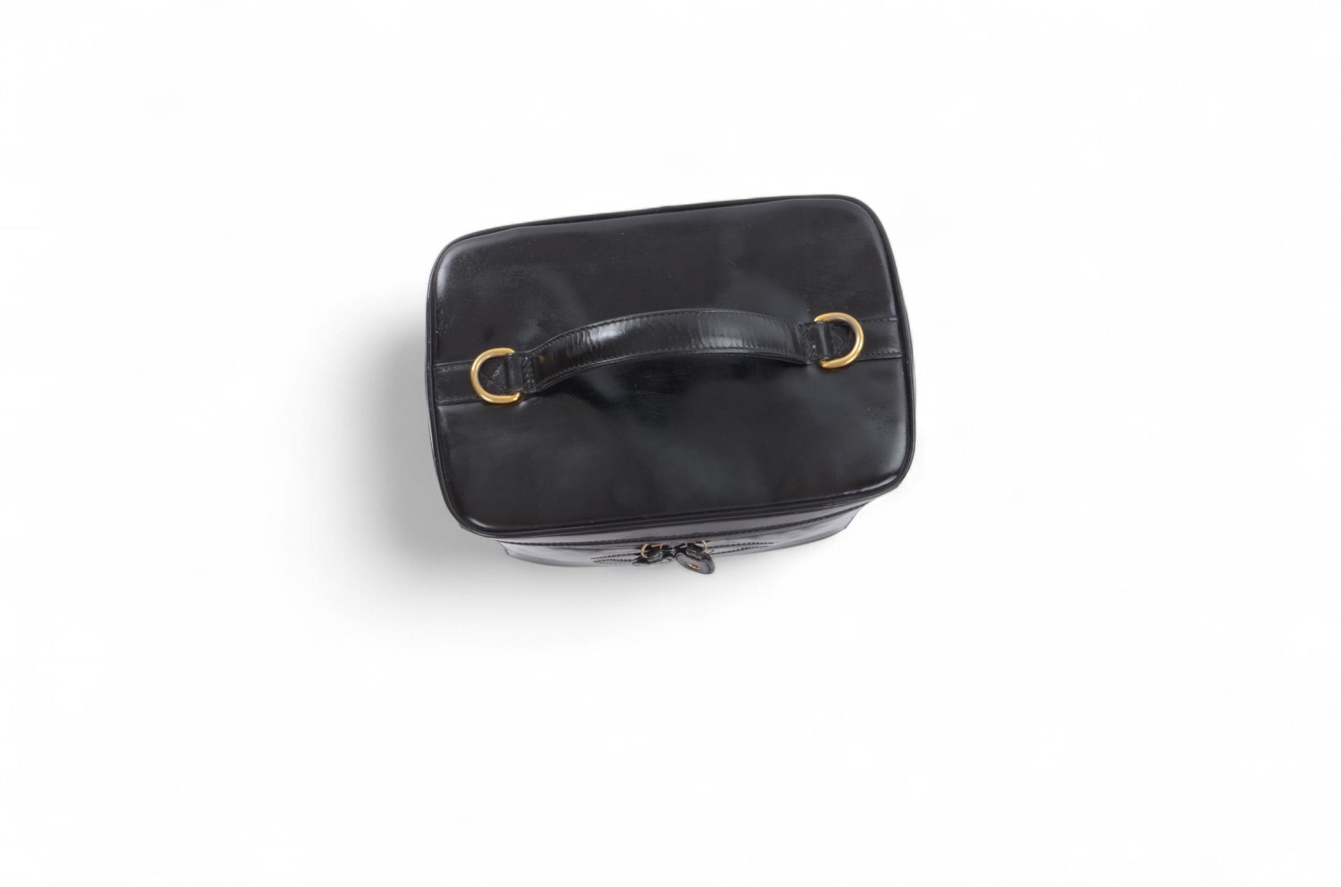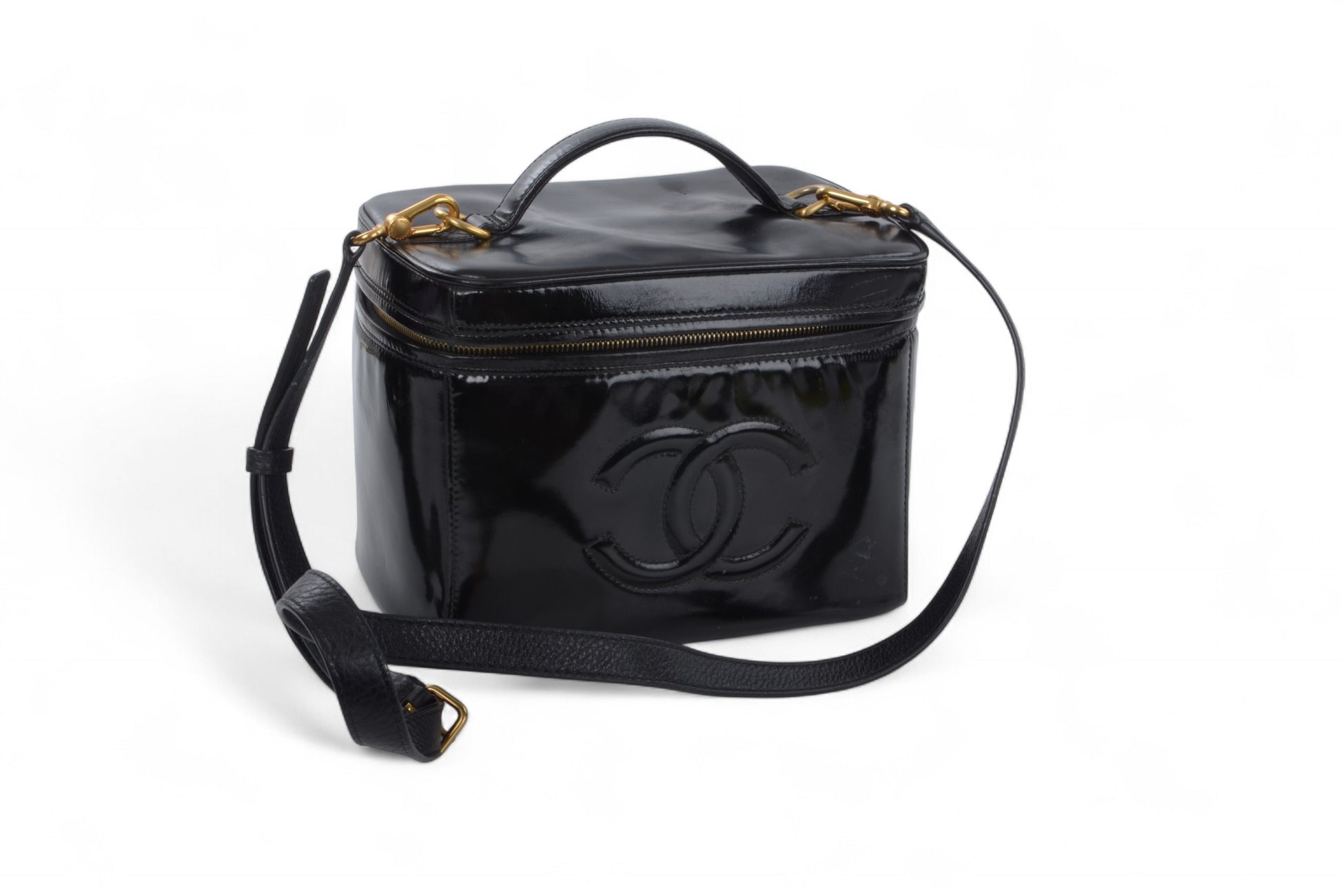 Chanel Vanity Bag CC Logo Vintage Patent Leather Black Enamel Make Up Box Designer Classic