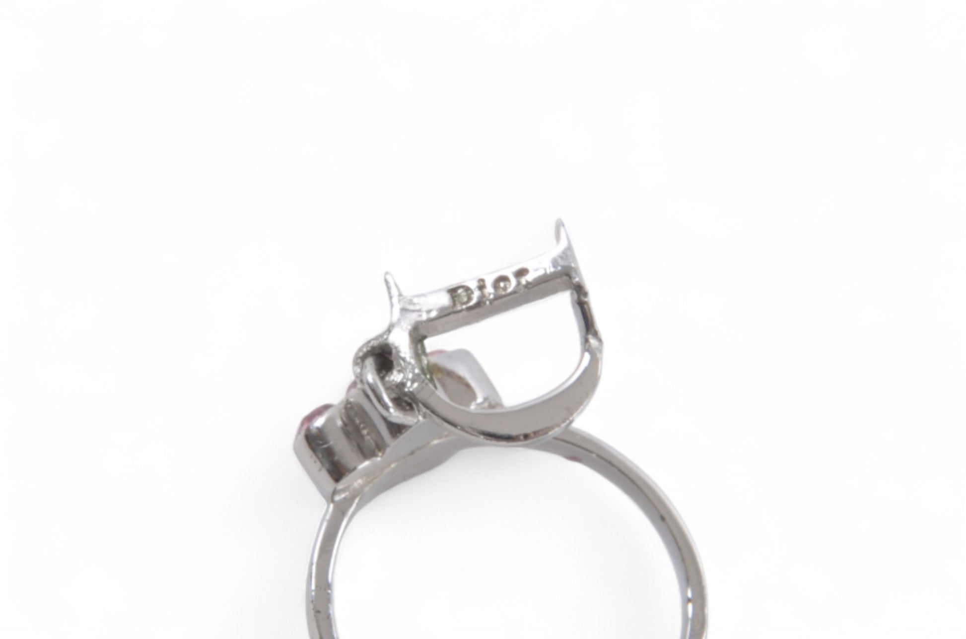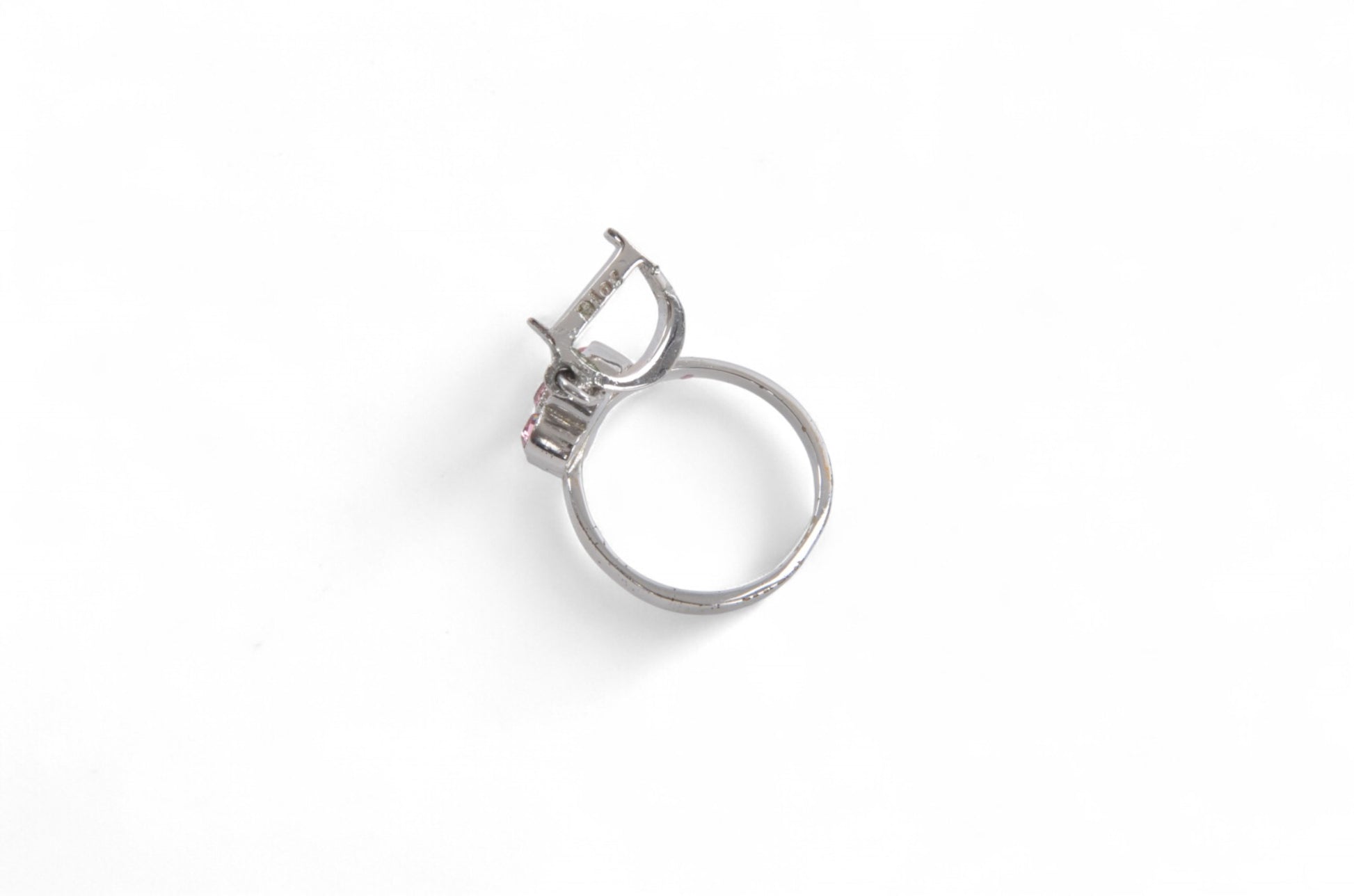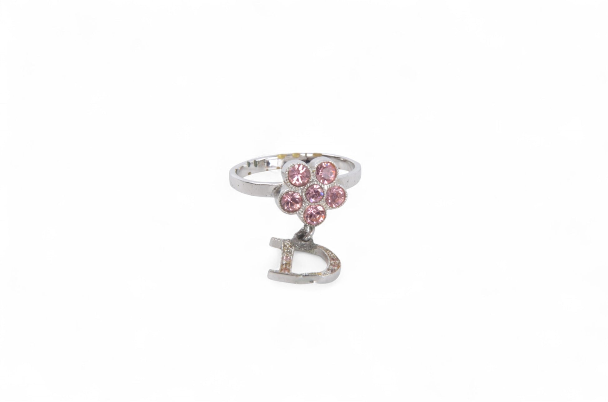 Christian Dior Flower Band Ring Stone Silver tone Metal Rhinestone Vintage Designer Classic Pink