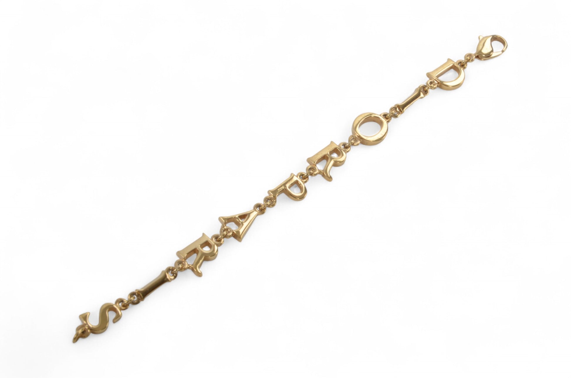 Christian Dior Letter Bracelet Link Vintage Gold Plated Metal Charm Paris Logo Designer Classic