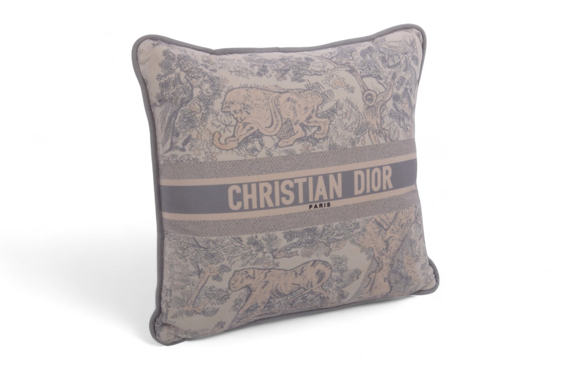 Christian Dior Small Square Pillow Toile de Jouy Gray Cushion Pillowcase Designer Classic