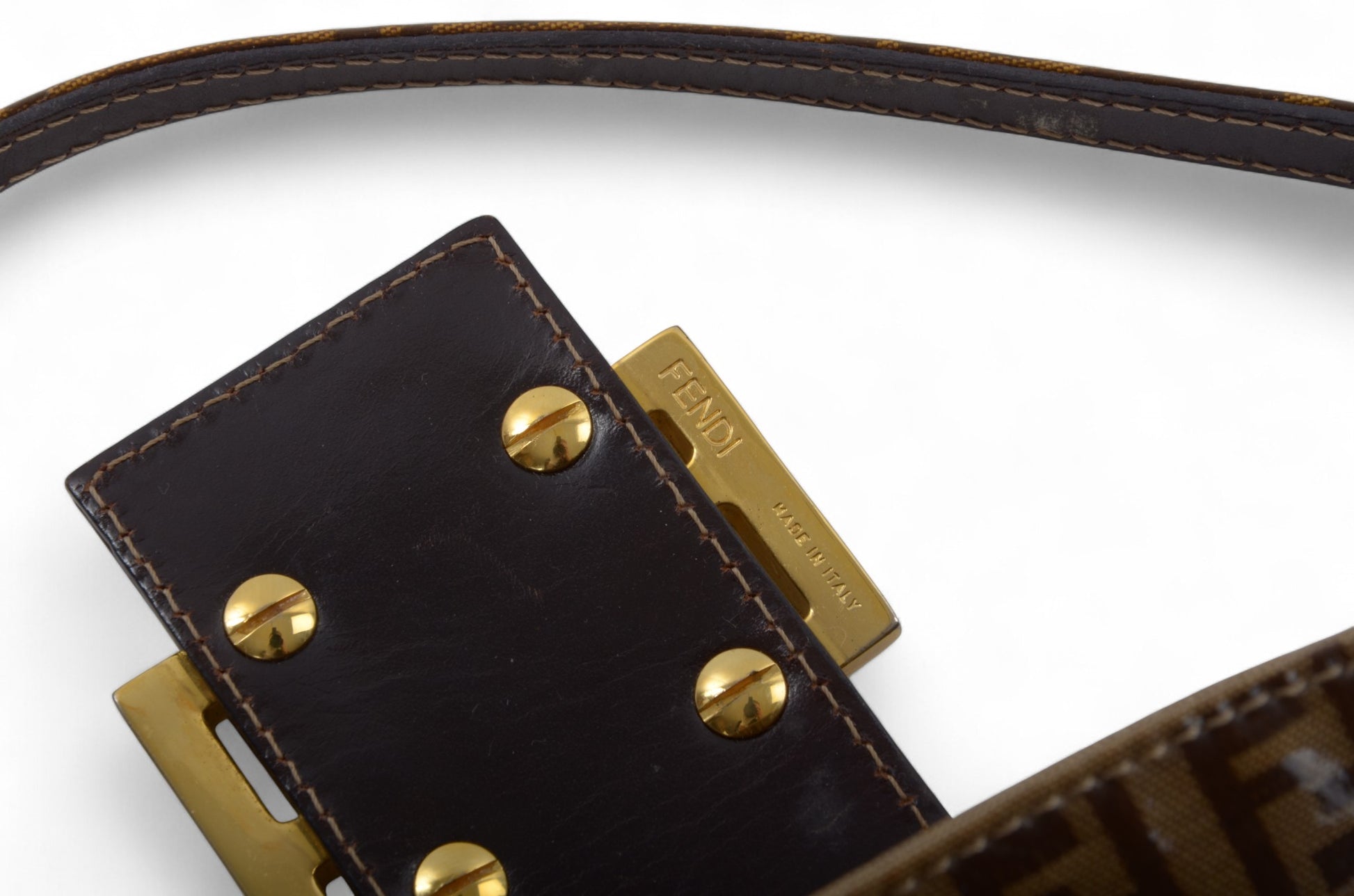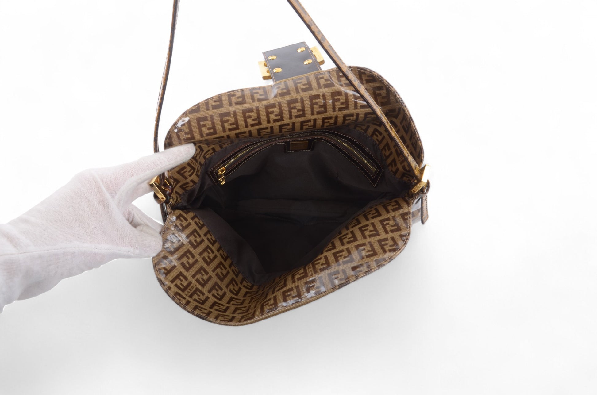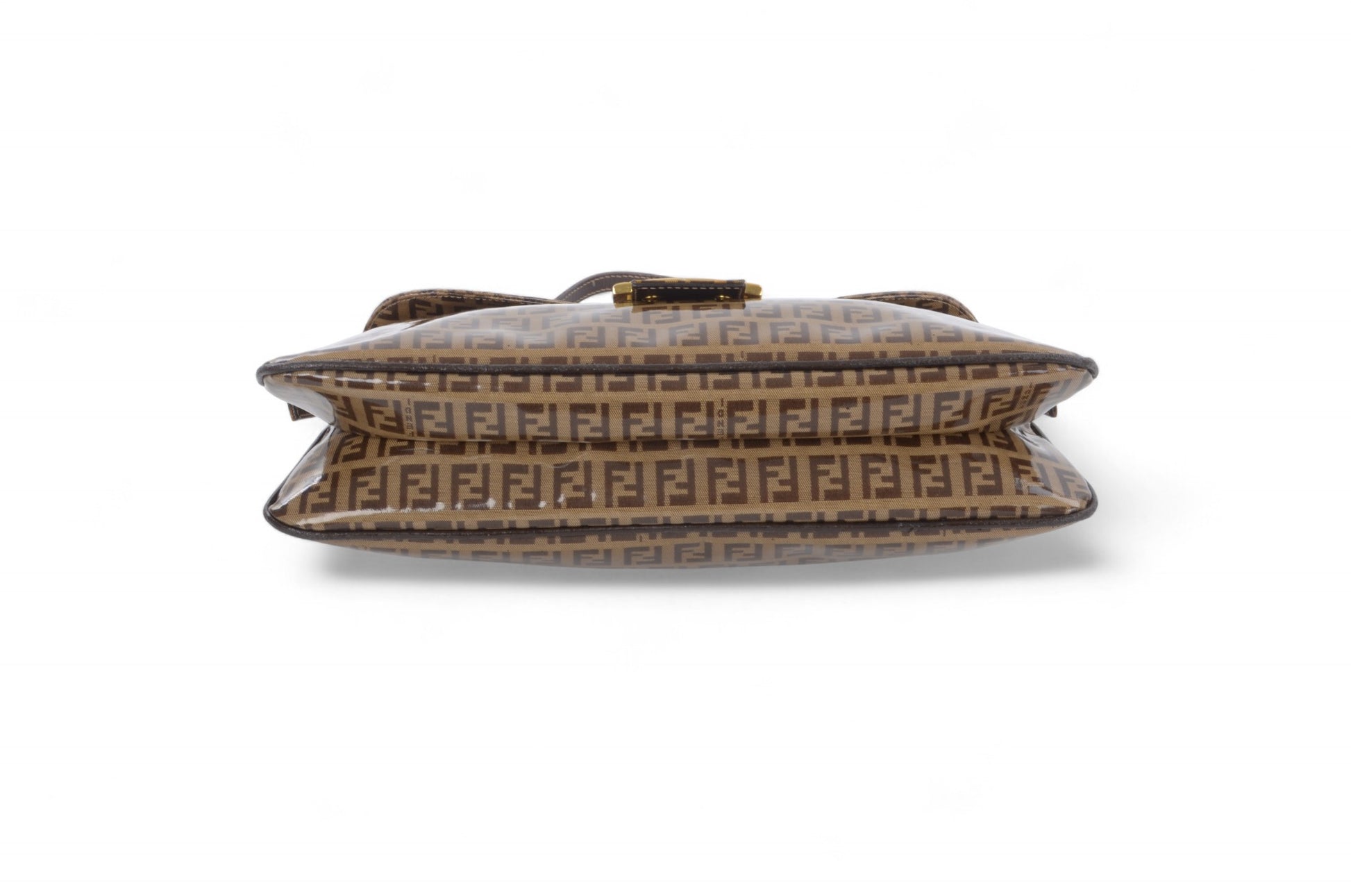 Fendi Baguette Crystal Double Flap 90s Zucca Zucchino Shoulder Bag Handbag Patent Leather Vintage Brown Designer Classic Rare Authentic
