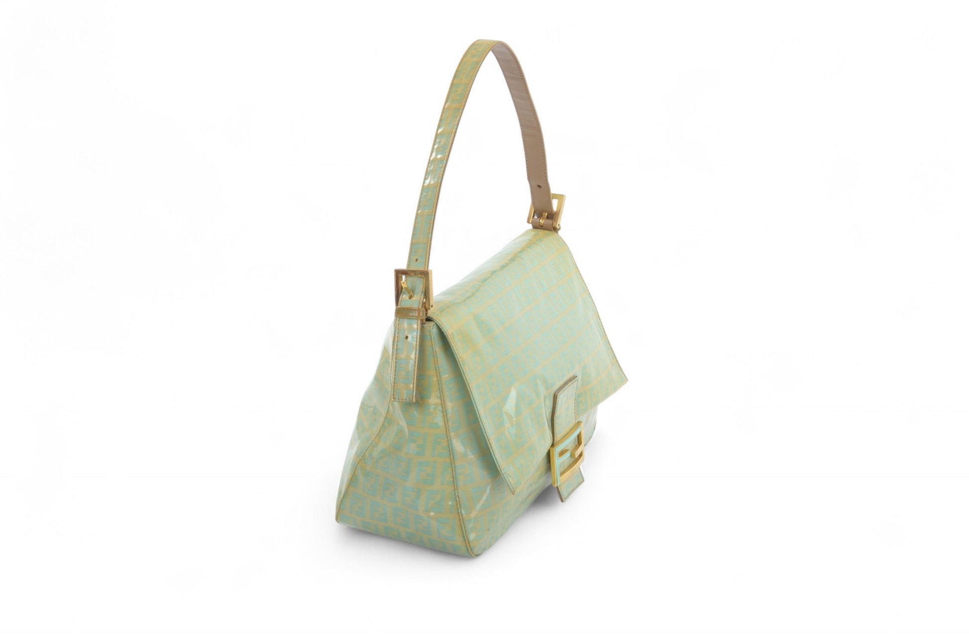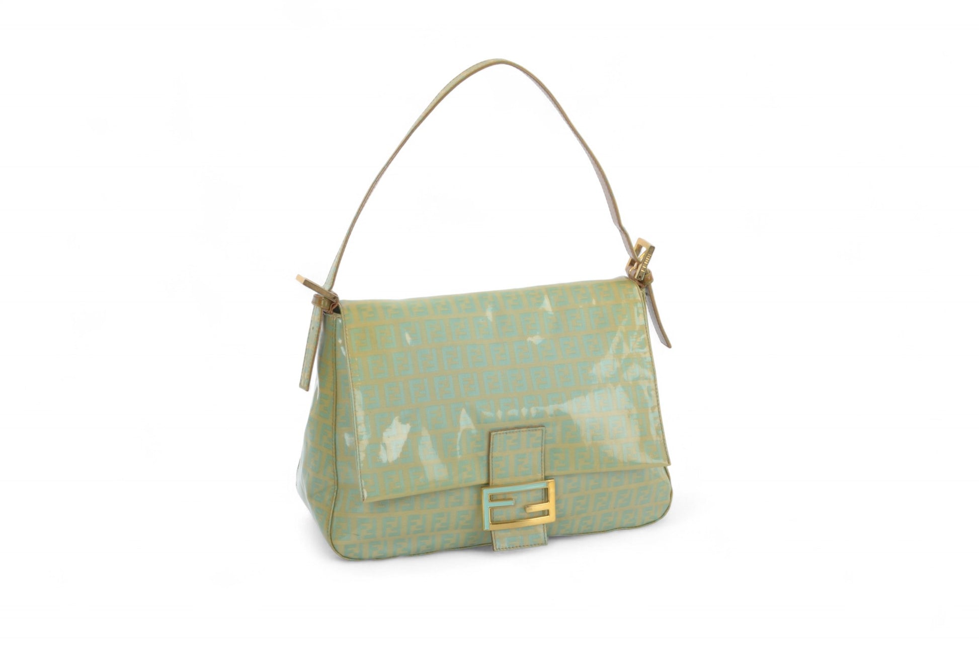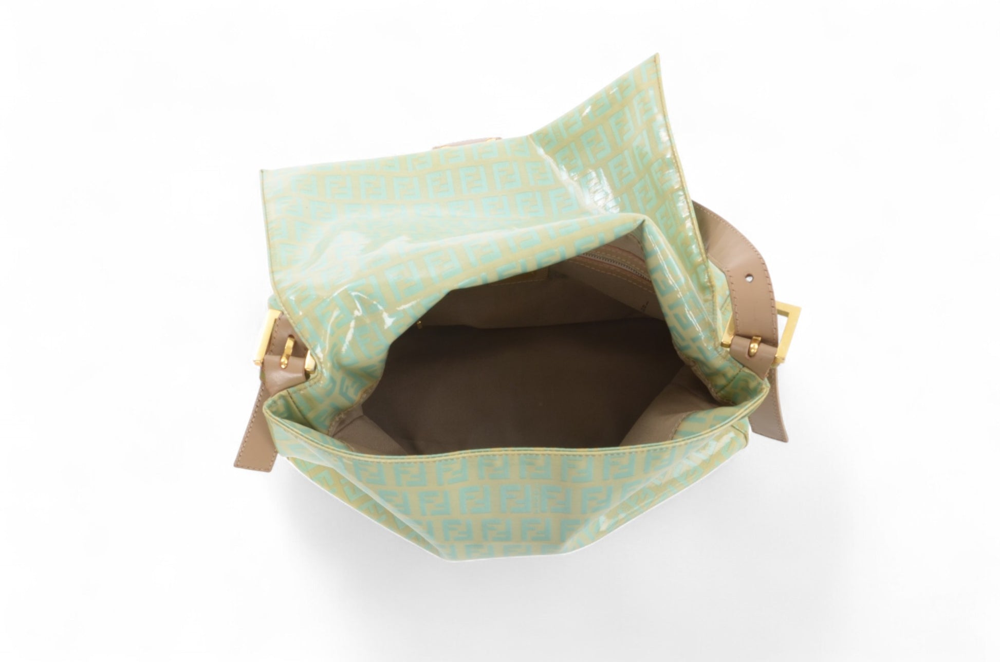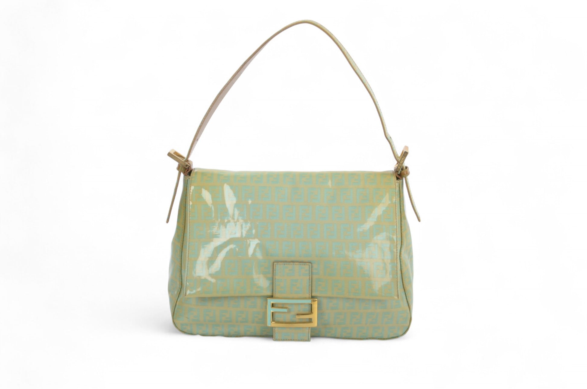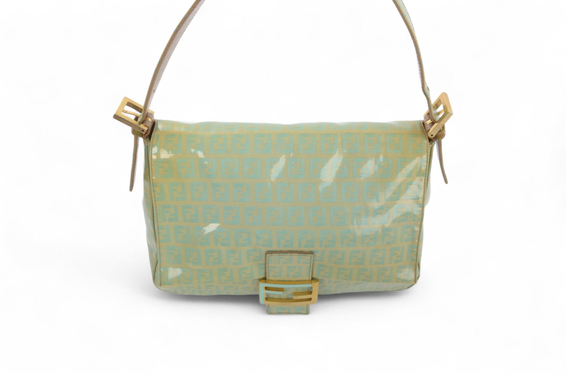 Fendi Mamma Baguette Zucca Shoulder Bag Handbag Patent Leather Vintage Turquoise Mint Designer Classic Rare Authentic