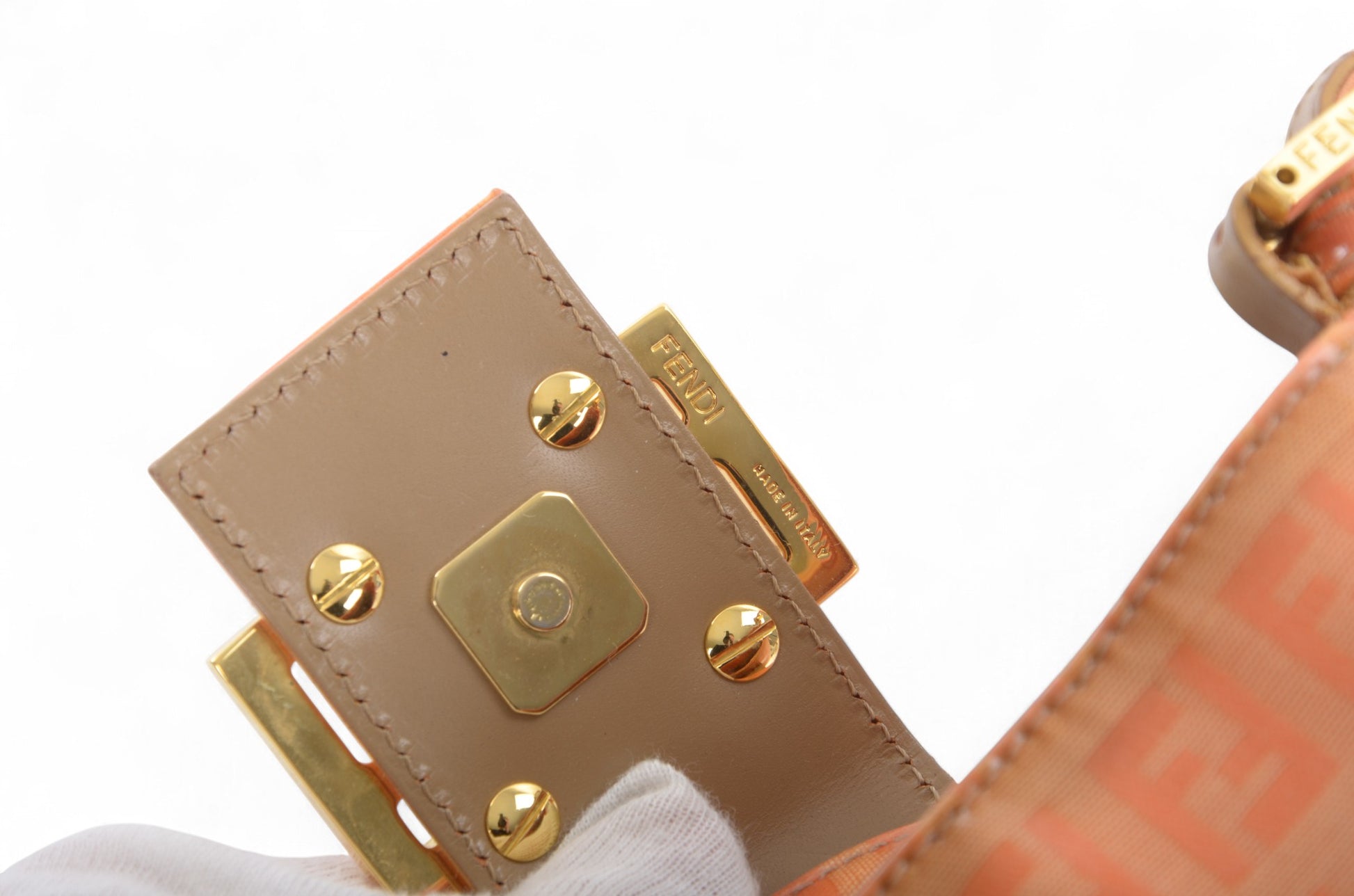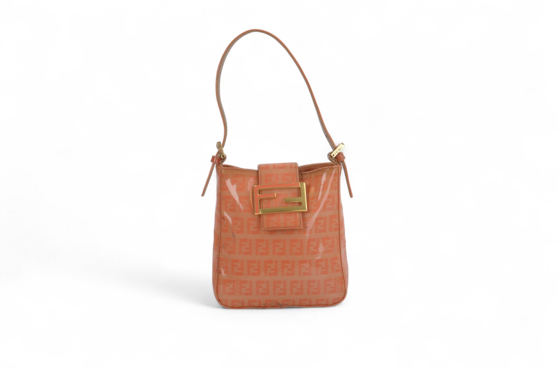 Fendi Zucca Mini Bag Handbag Patent Leather Vintage Orange Apricot Designer Classic Rare Authentic