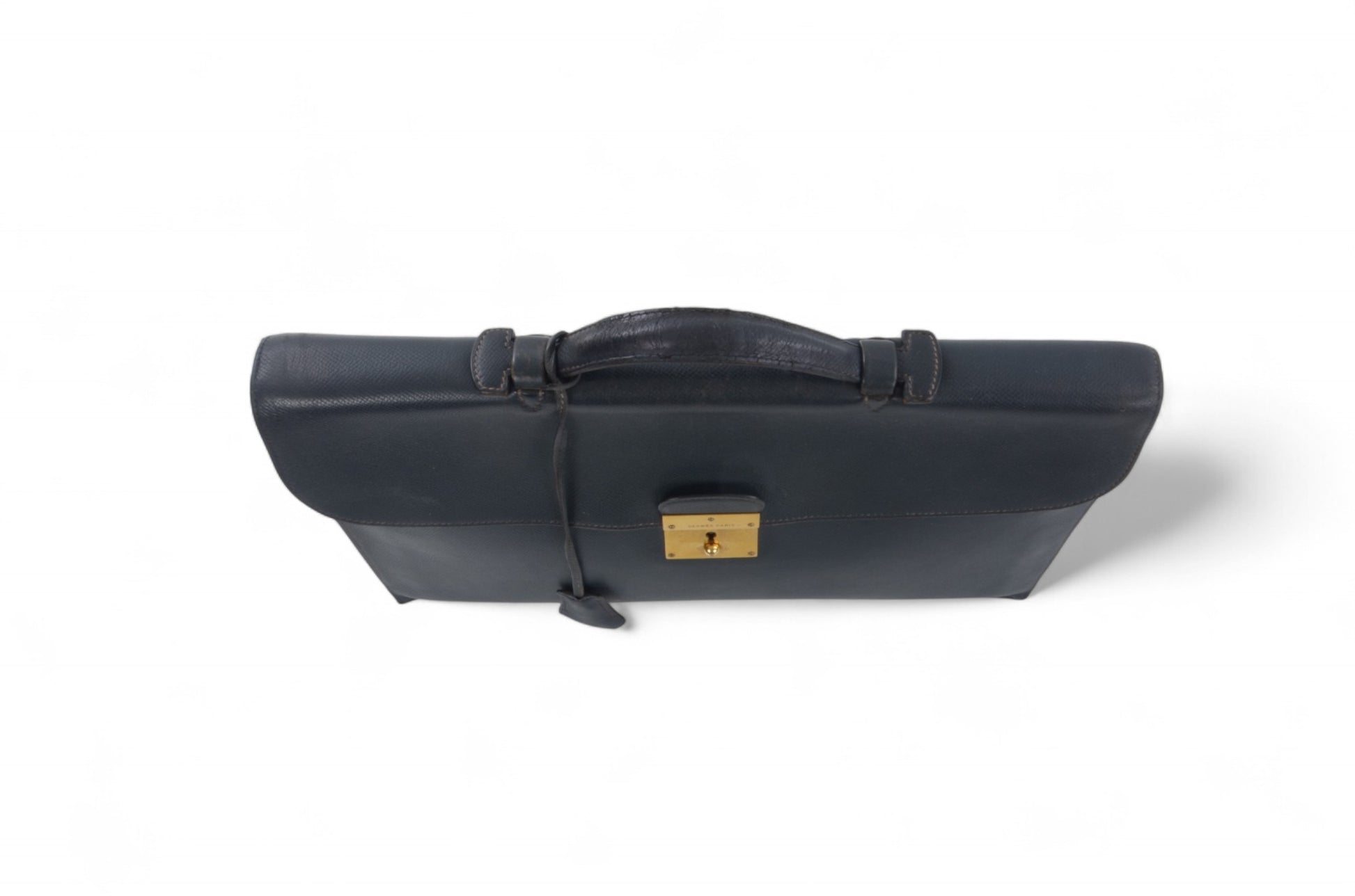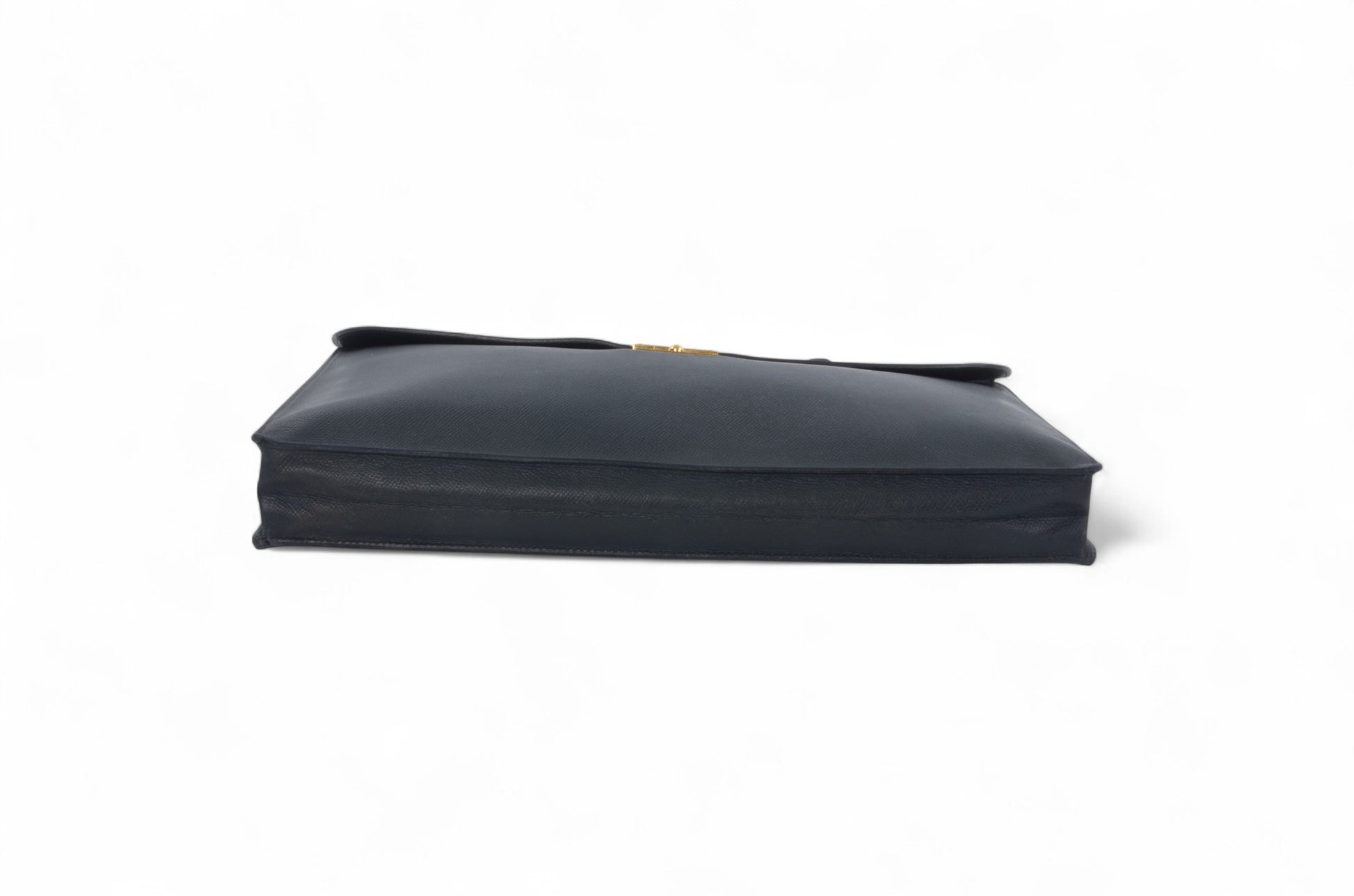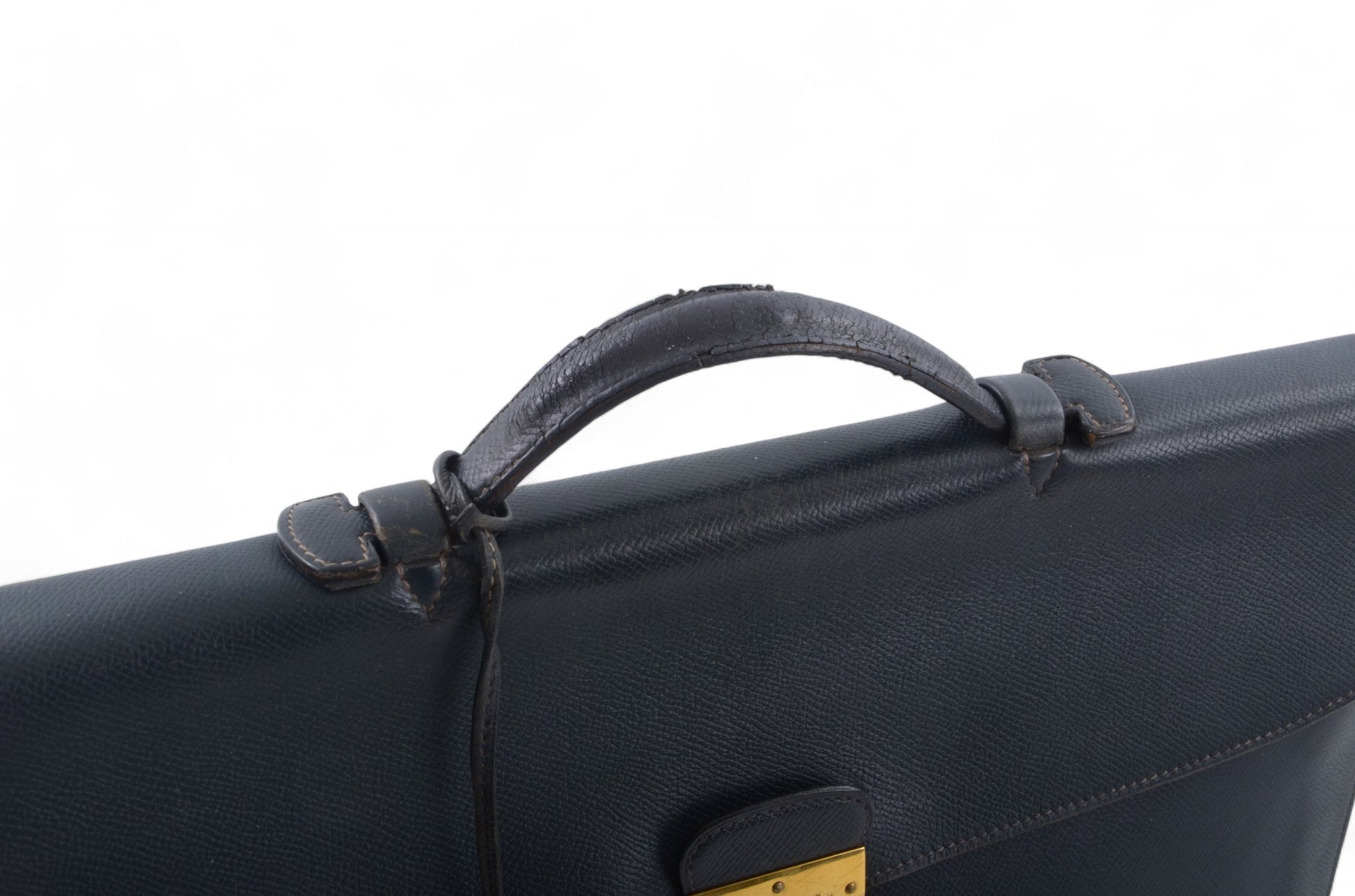 Hermès Kirius Business Document Bag Handbag Couchvel Leather Briefcase Navy Blue Gold Hardware