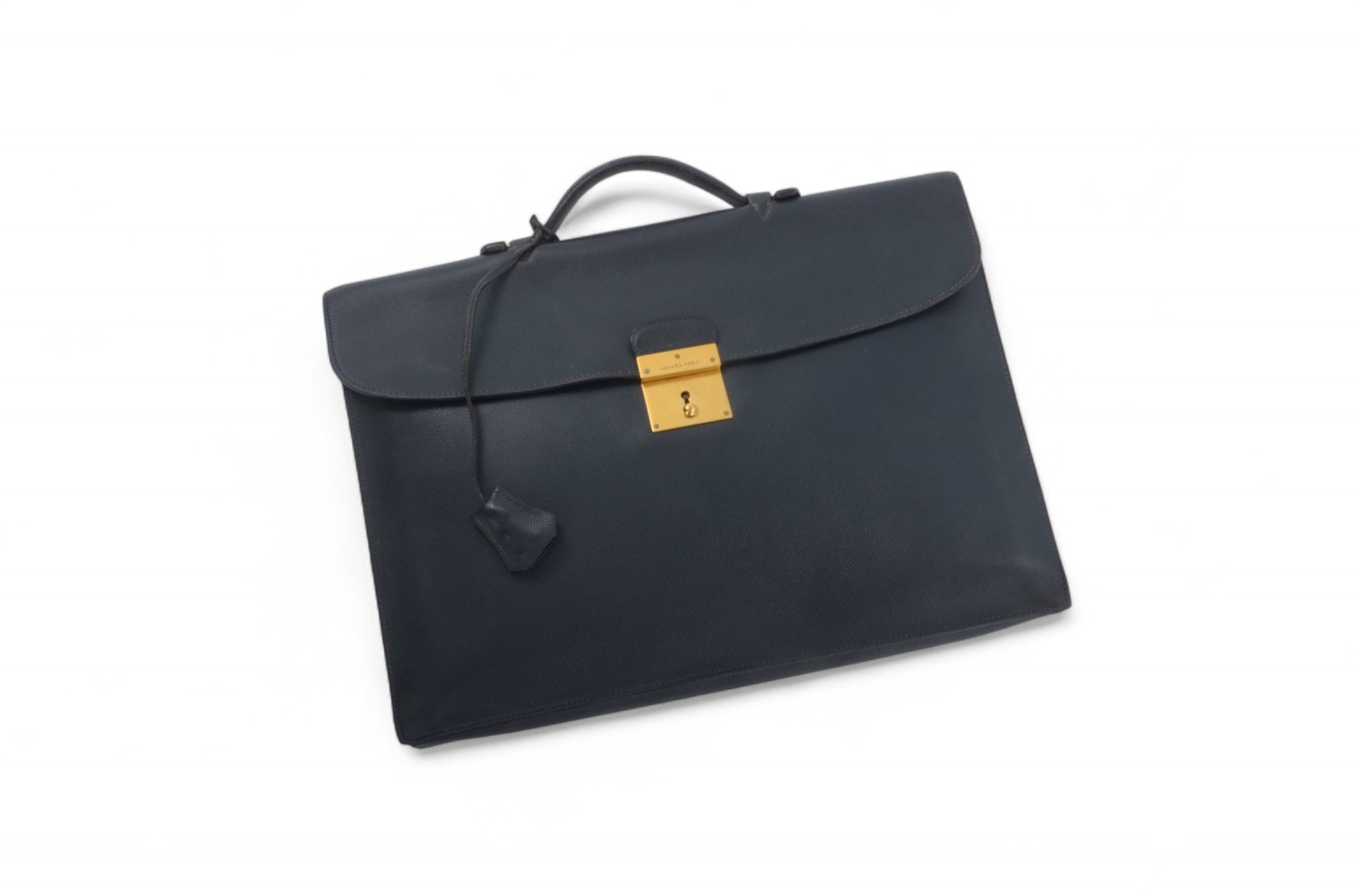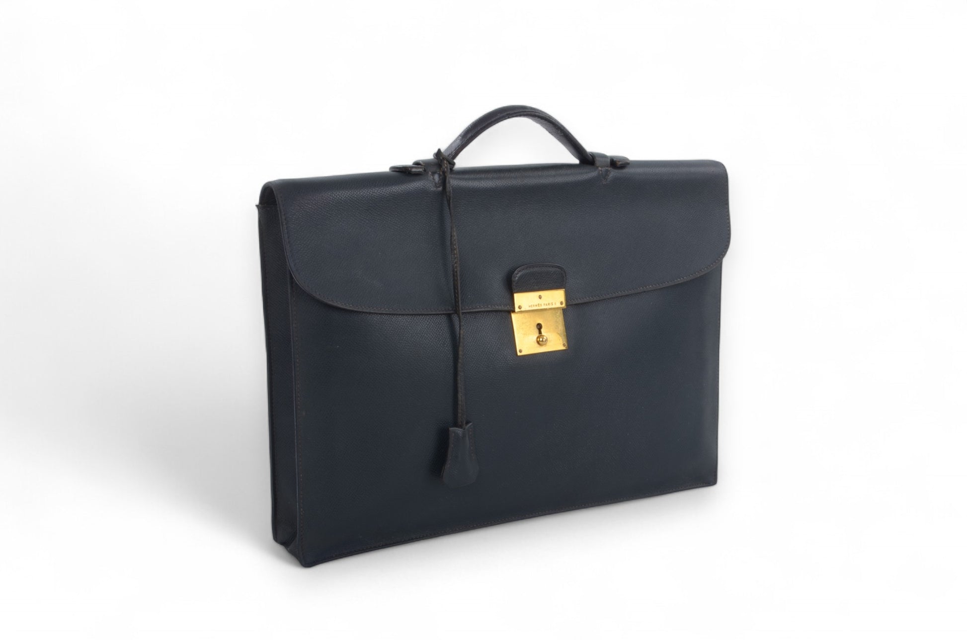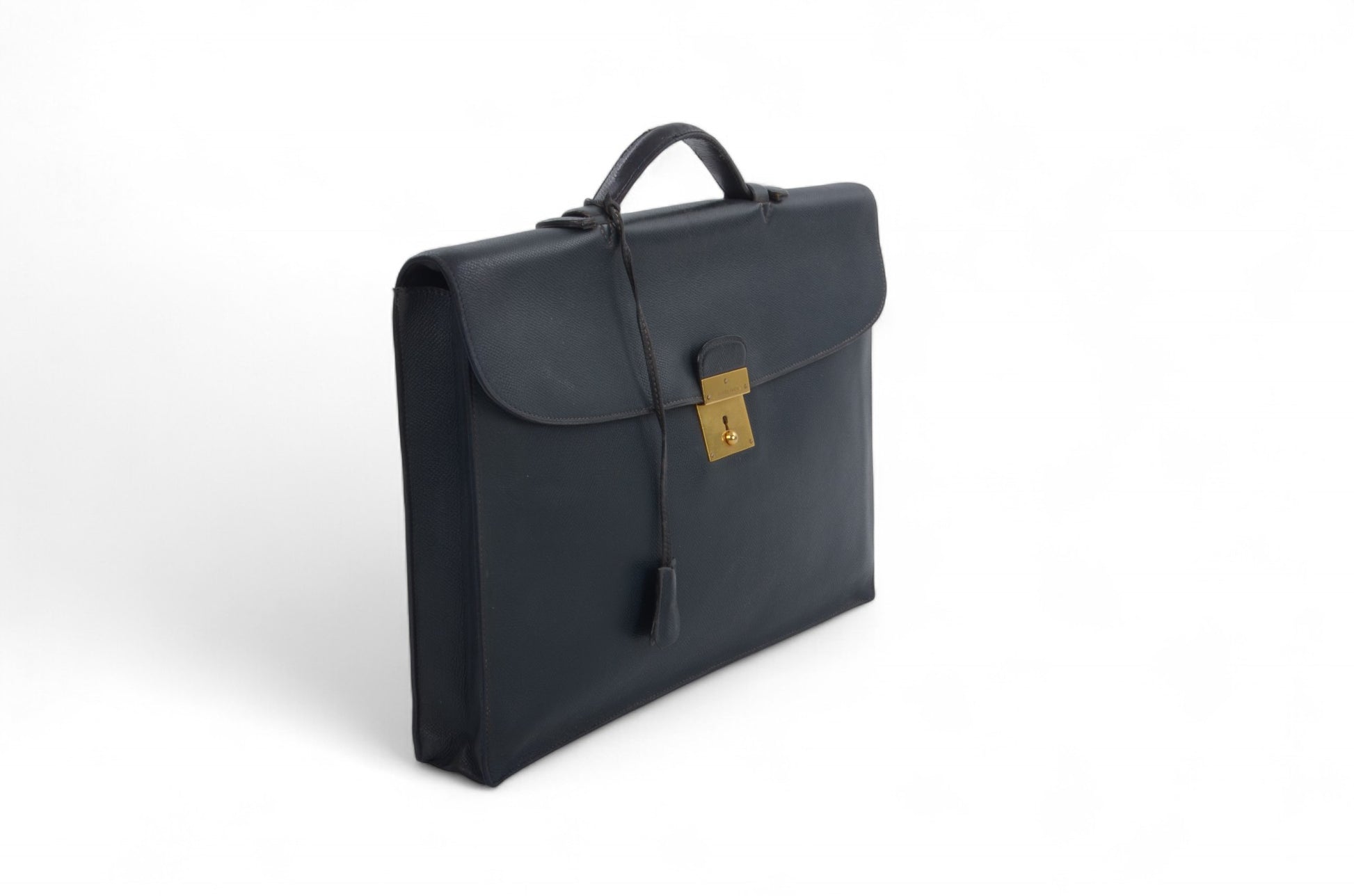 Hermès Kirius Business Document Bag Handbag Couchvel Leather Briefcase Navy Blue Gold Hardware