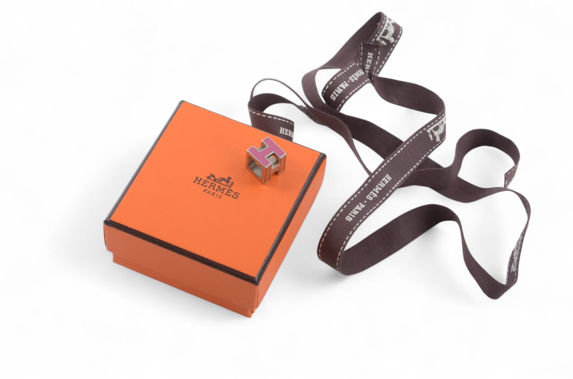 Hermès Cage d'Ache d'H Cube Pendant Steel silver Necklace Designer Classic Authentic