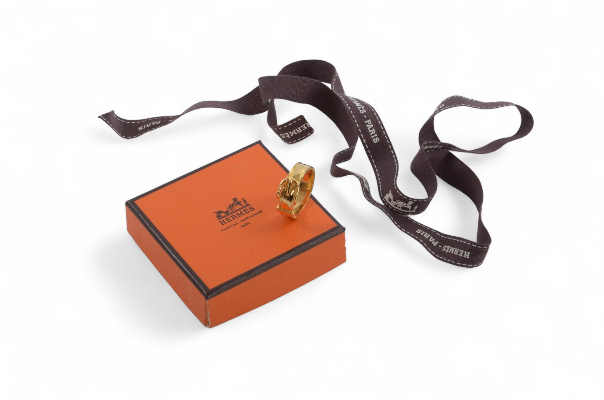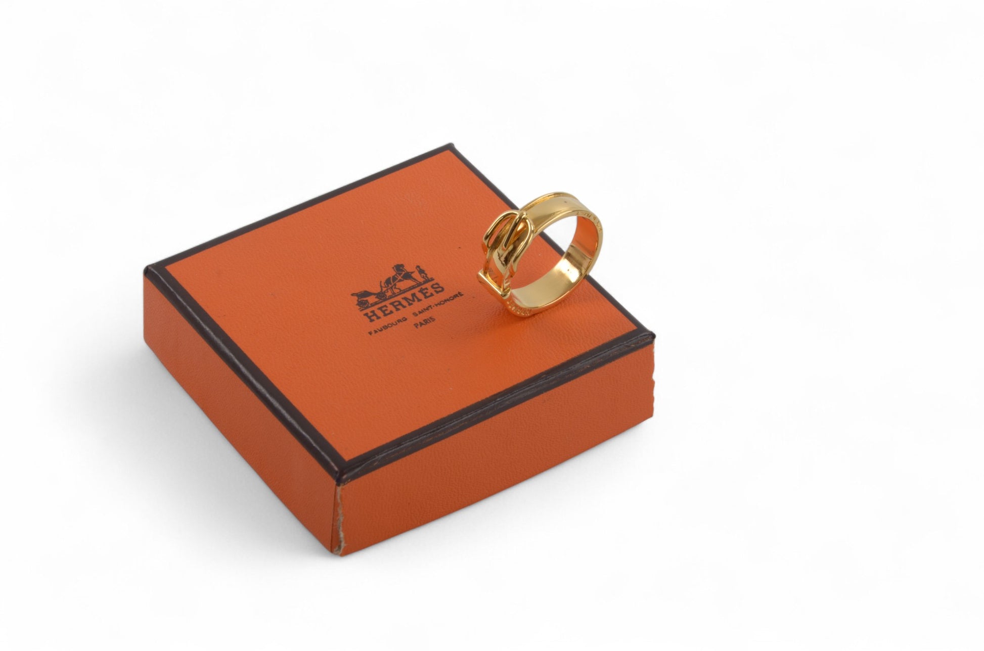 Hermès Gold Tone Belt Scarf Ring Pin Vintage Designer Classic Authentic