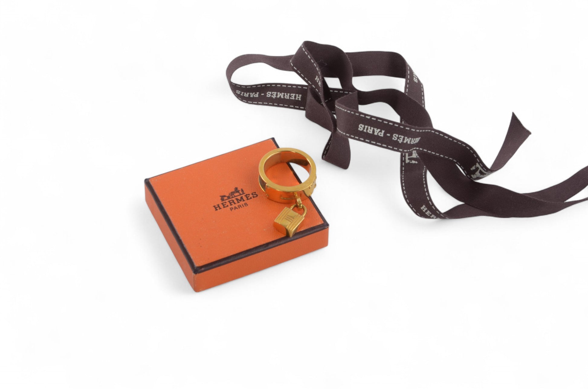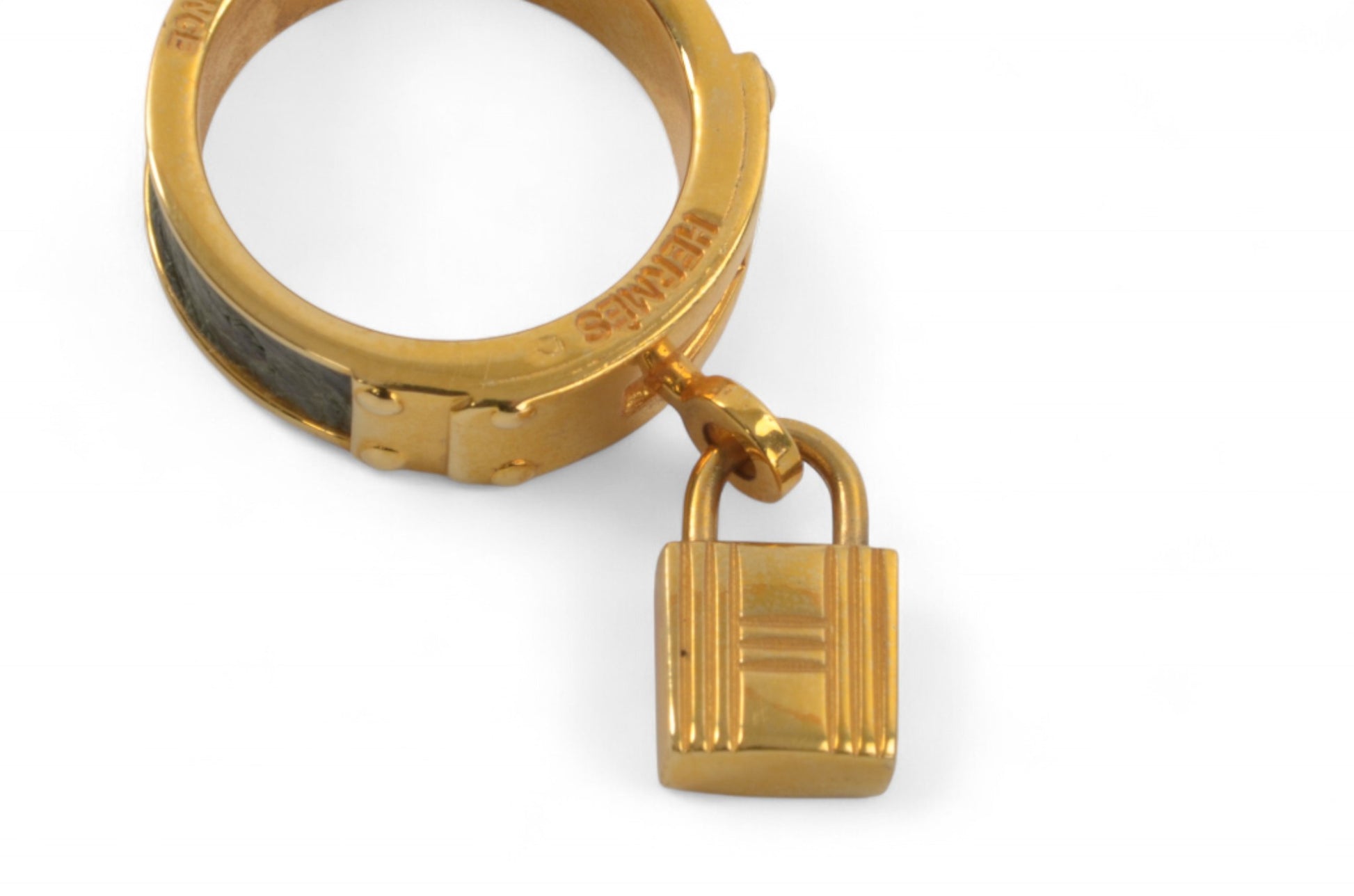Hermès Gold Tone Lizard Kelly Cadena Belt Scarf Ring