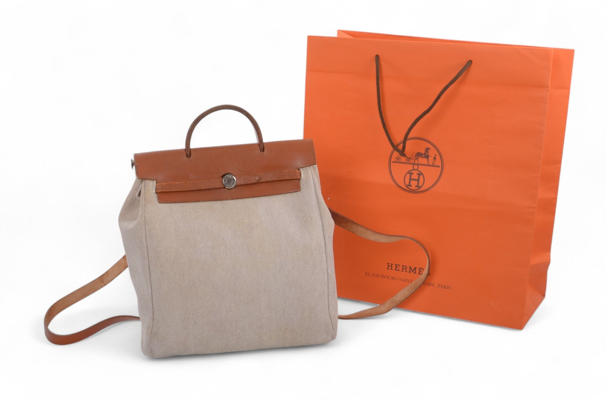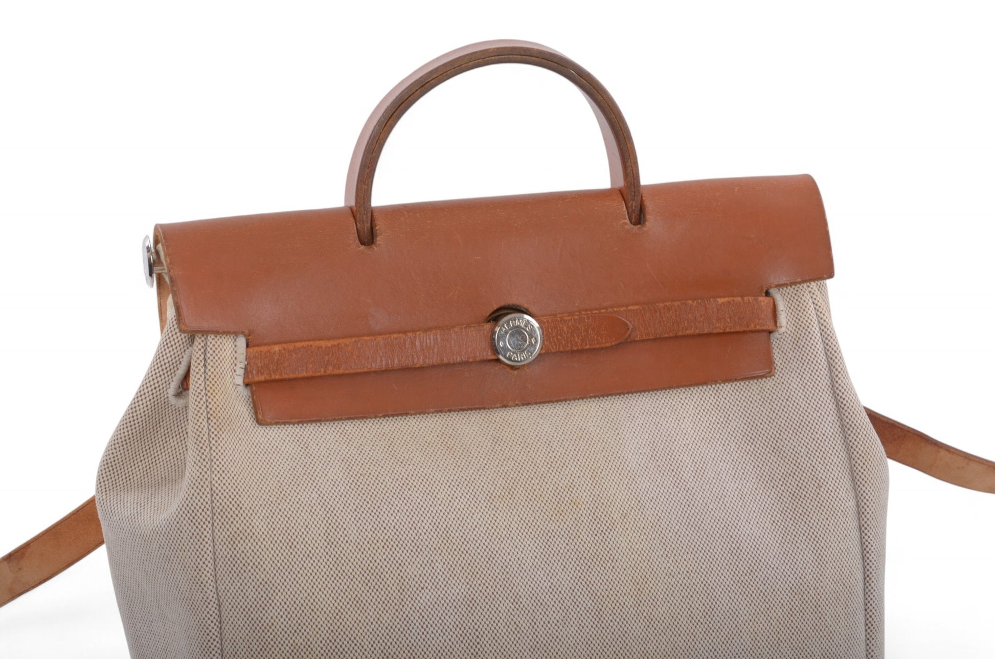 Hermès Herbag Backpack Bag Leather Canvas Toile Ash Vintage Beige Brown Vintage