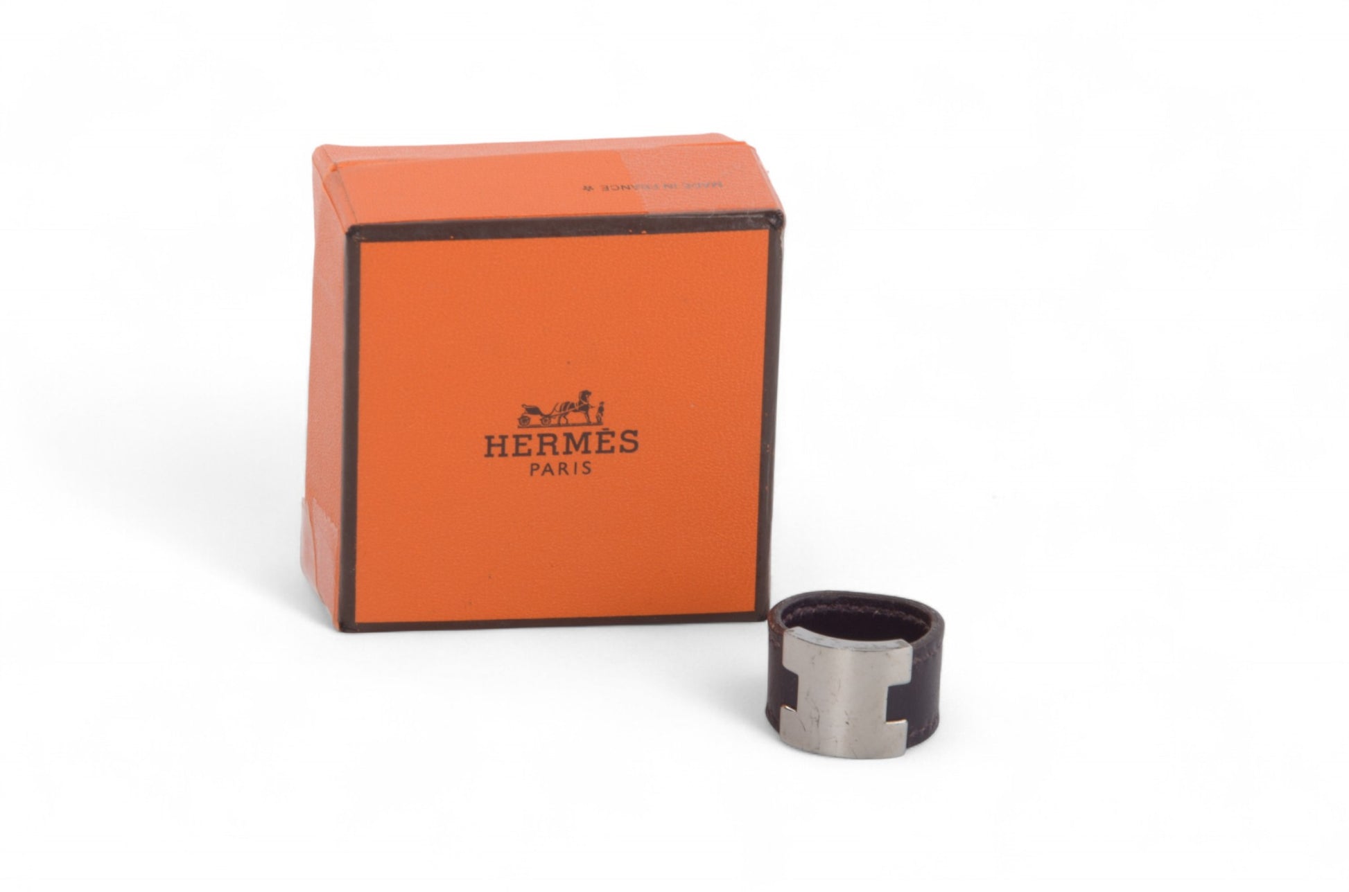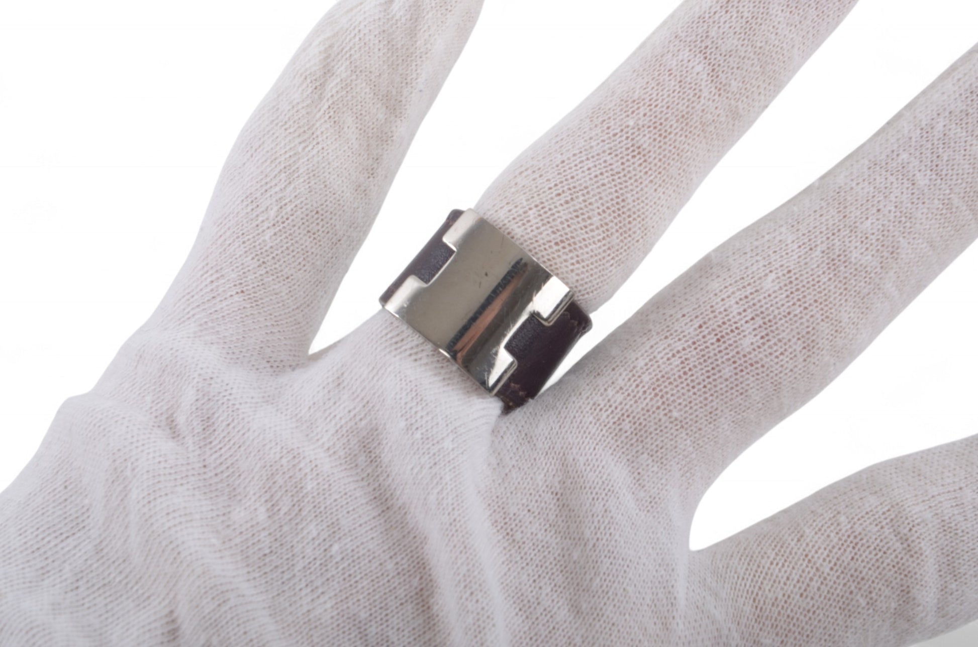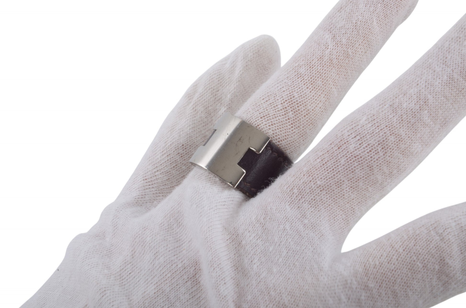 Hermès Lurie Ring H Logo Silver Hardware Ring Accessory Silver x Dark Brown Vintage Designer Classic Jewelry
