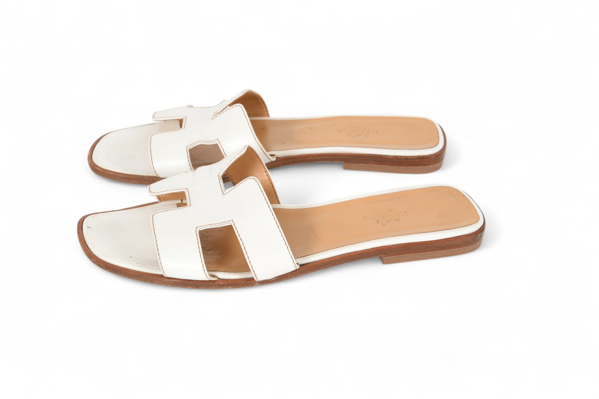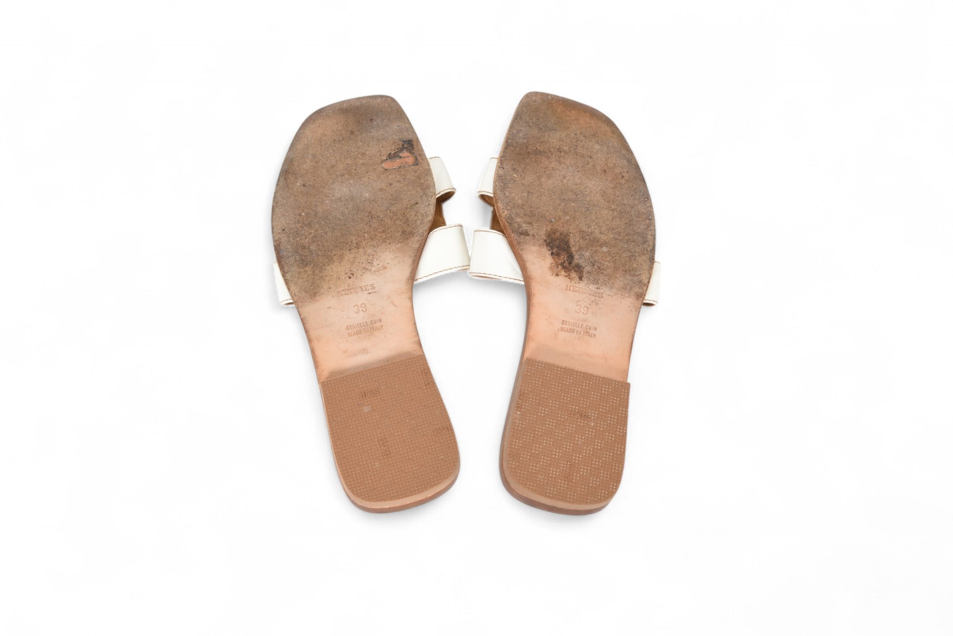 Hermès Oran Sandals Shoes Leather H Logo Calfskin Flats Size 39