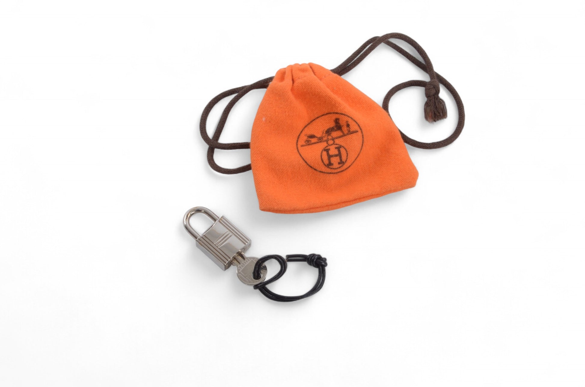 Hermès Silver Padlock Lock with Key Silver tone Brass Vintage Cadena Pendant Authentic Designer Classic Charm