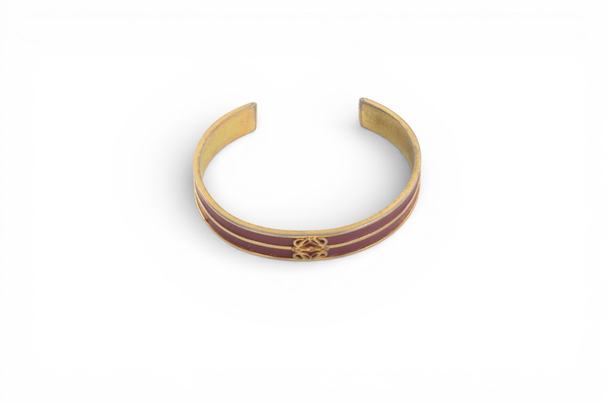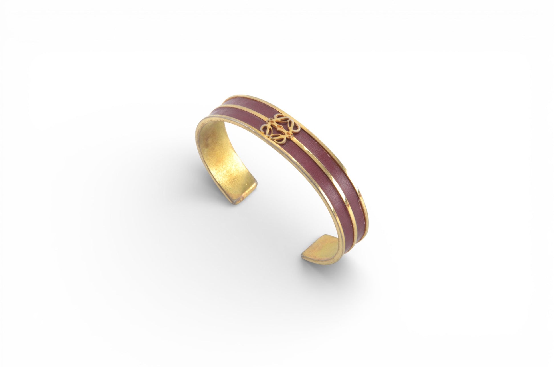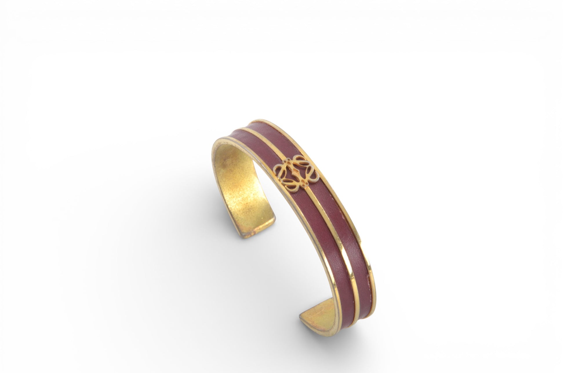 Loewe Anagram Bangle Bracelet Ladies Red Gold Cuff Vintage Designer Classic Authentic