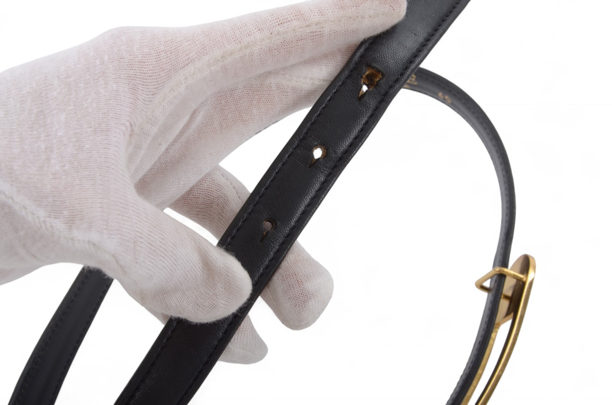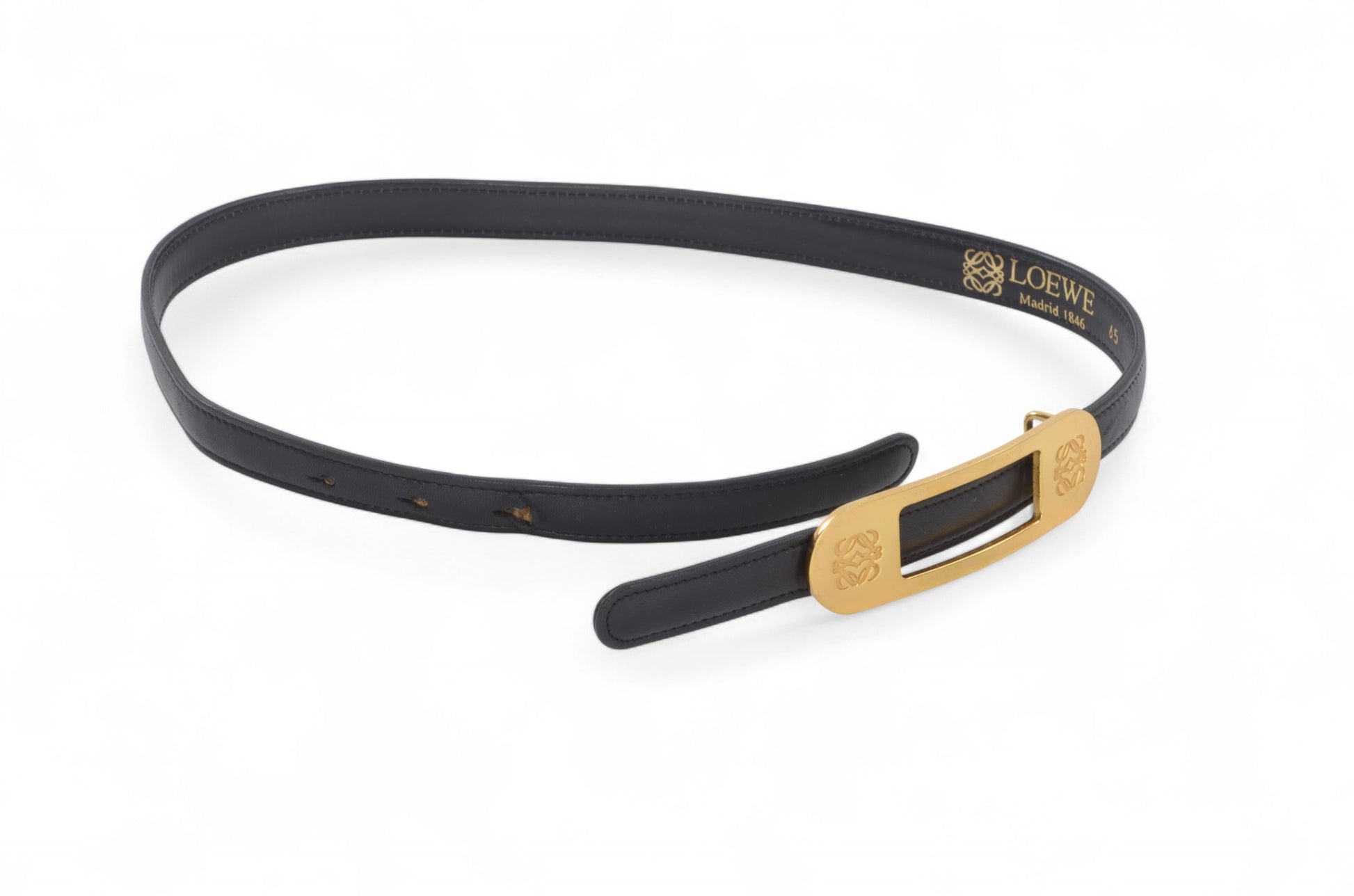 Loewe Anagram Belt Black Gold Buckle Vintage Designer Classic