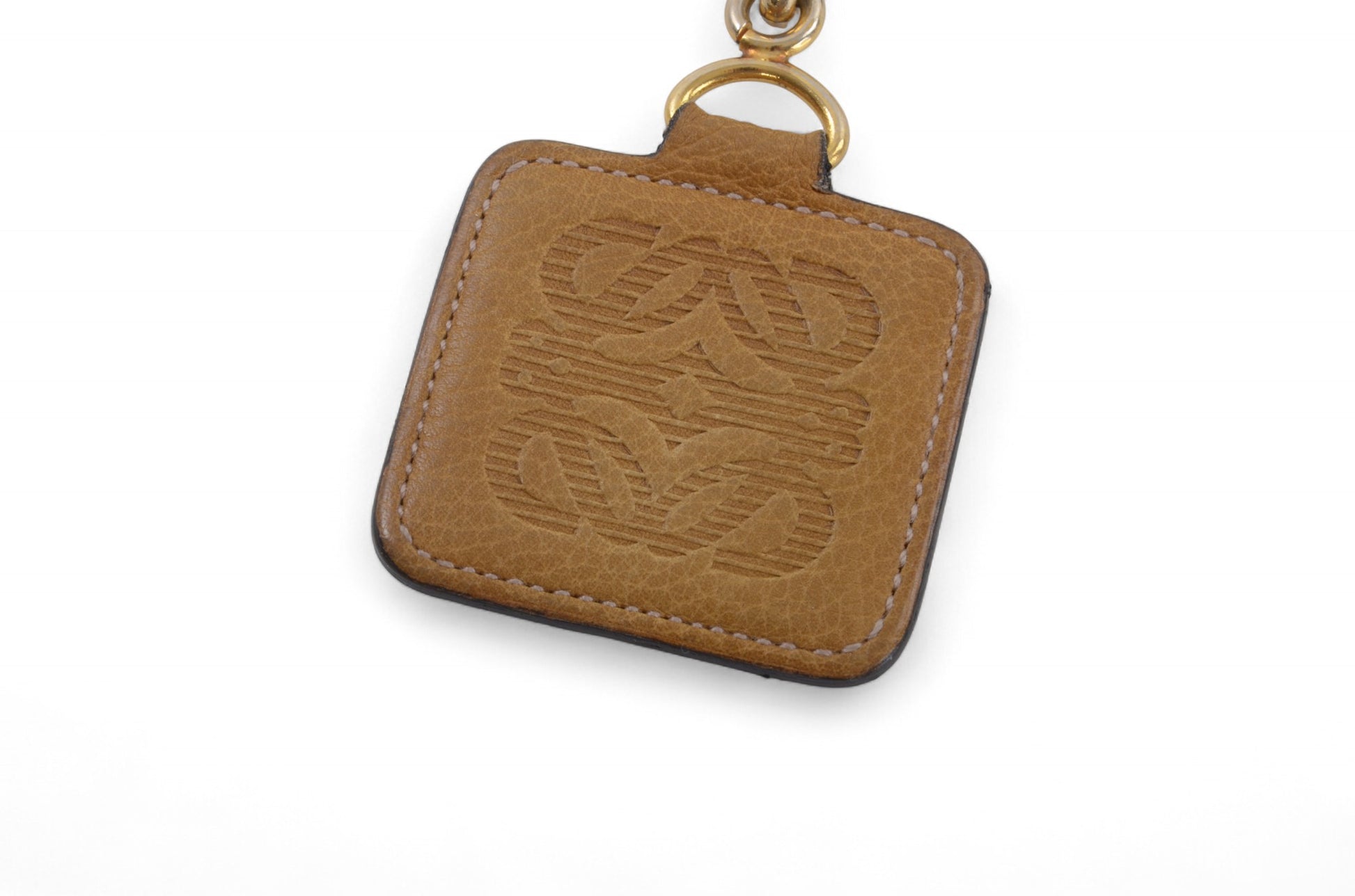 Loewe Anagram Gold tone Leather Key Chain Holder Keyring Bag Charm Accessory Brown Designer Classic