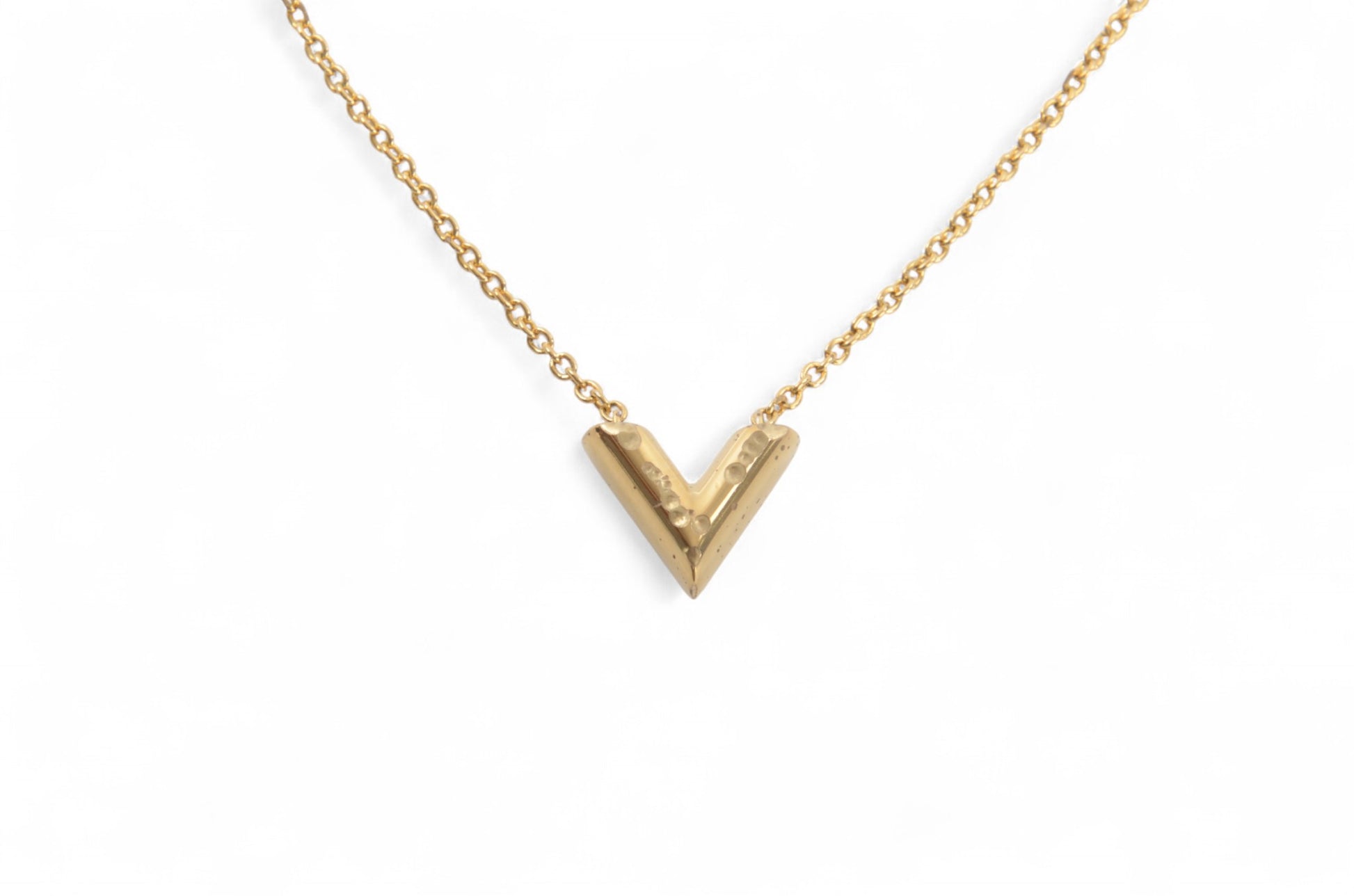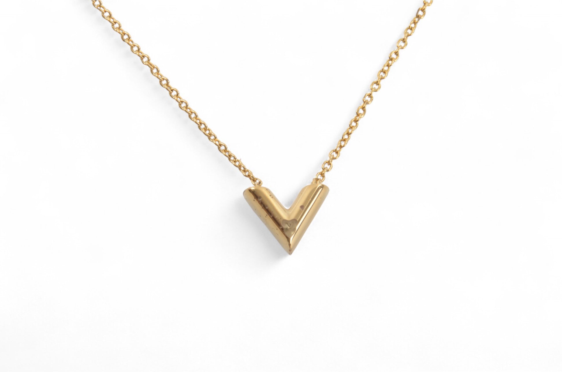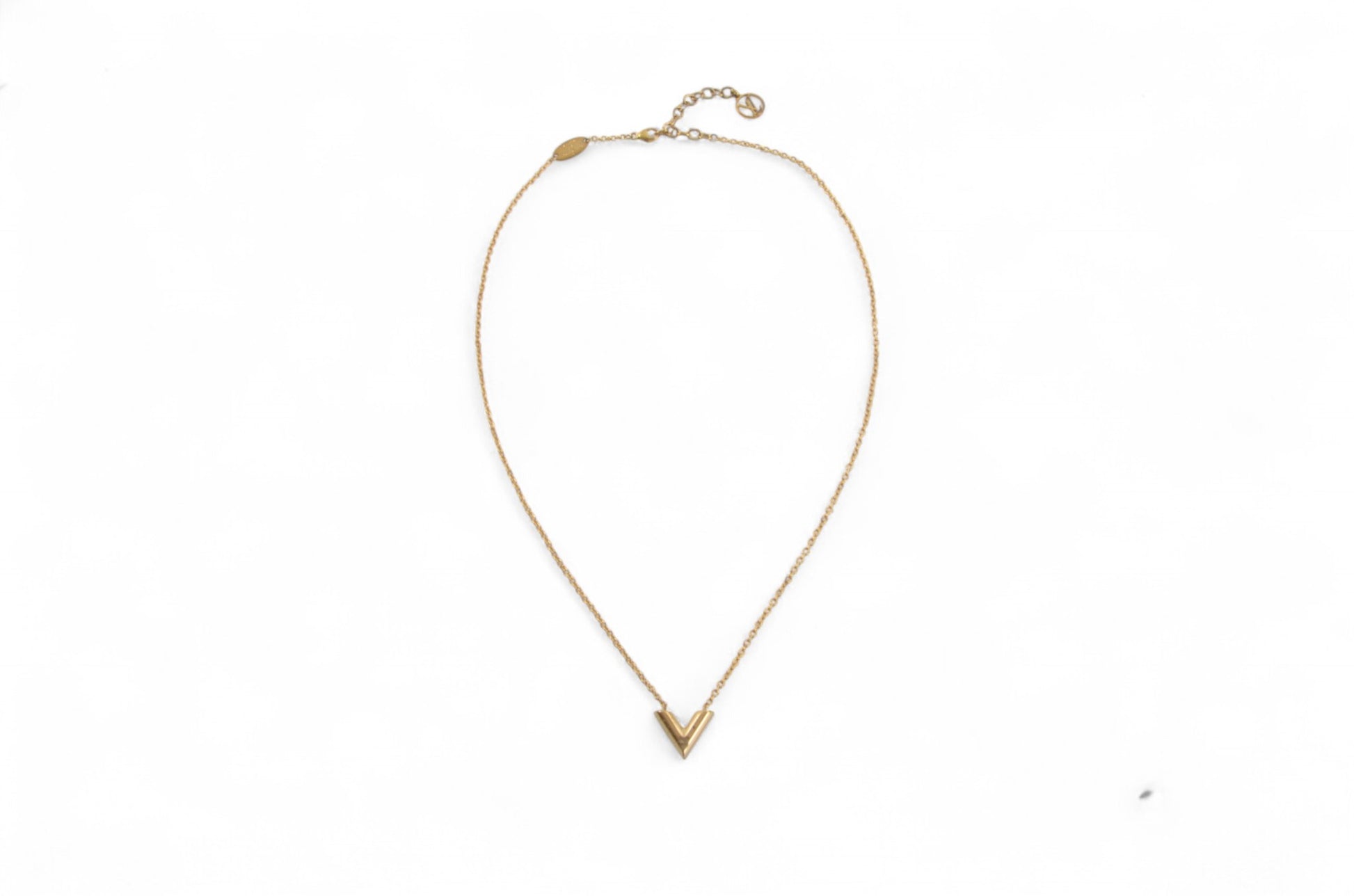 Louis Vuitton Essential V Necklace Pendant Gold Plated Statement Designer Classic Jewelry
