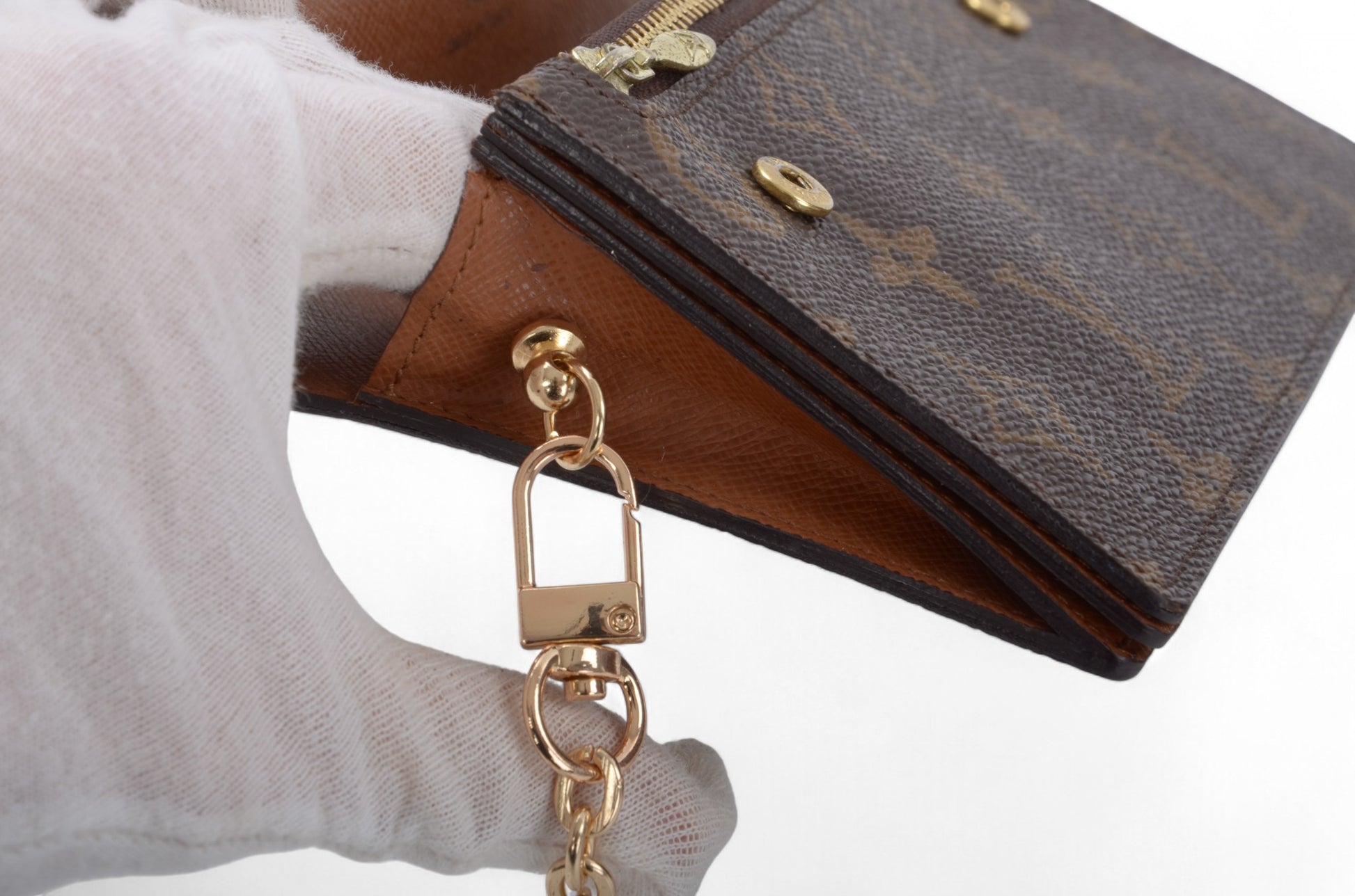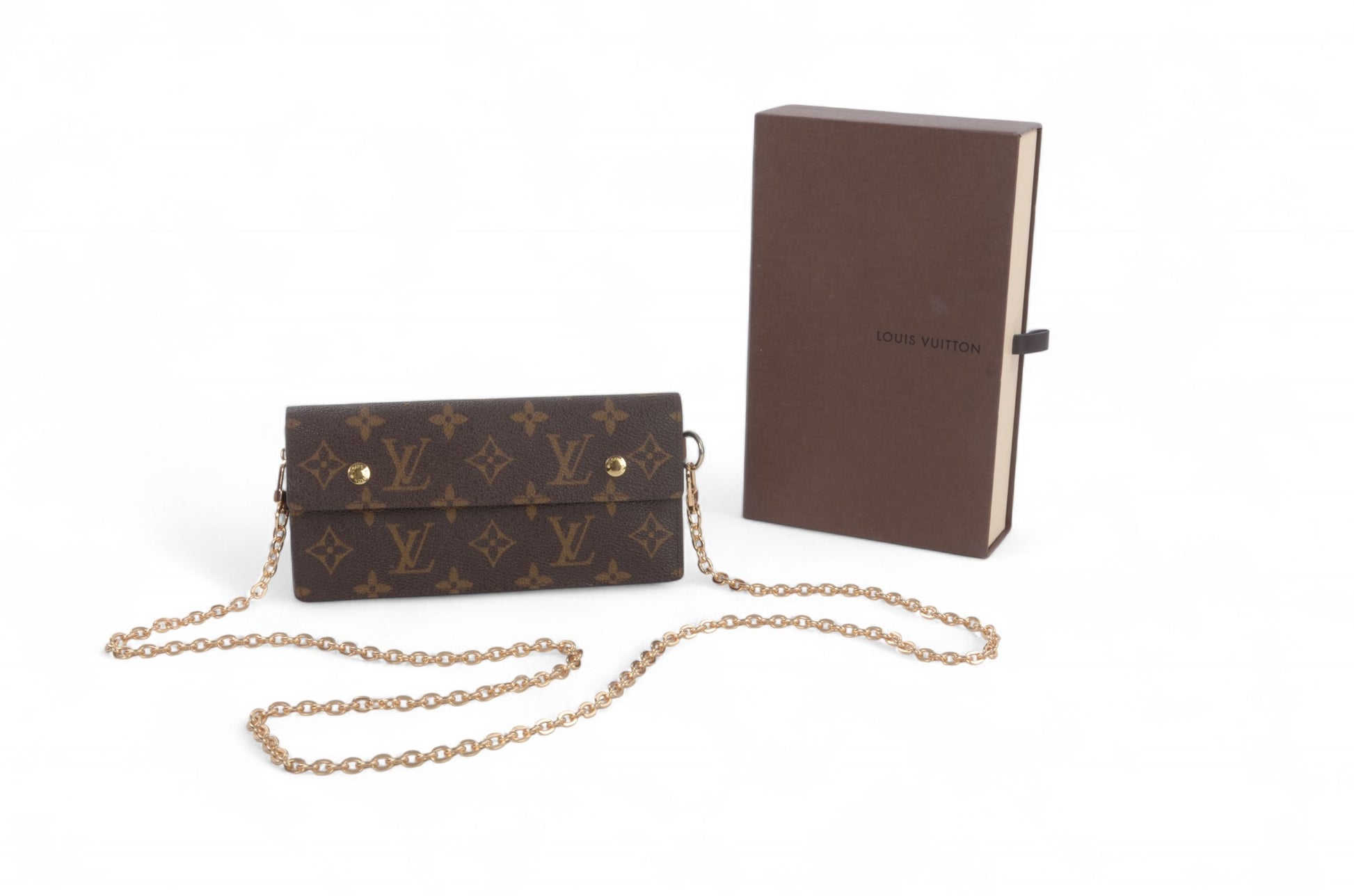 The wallet comes with a crossbody chain included so that the wallet can be used as a bag. The chain is not from Louis Vuitton.