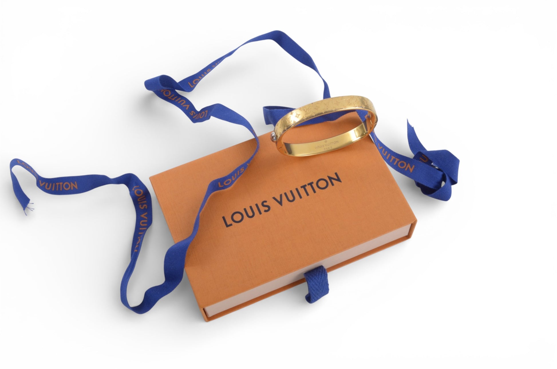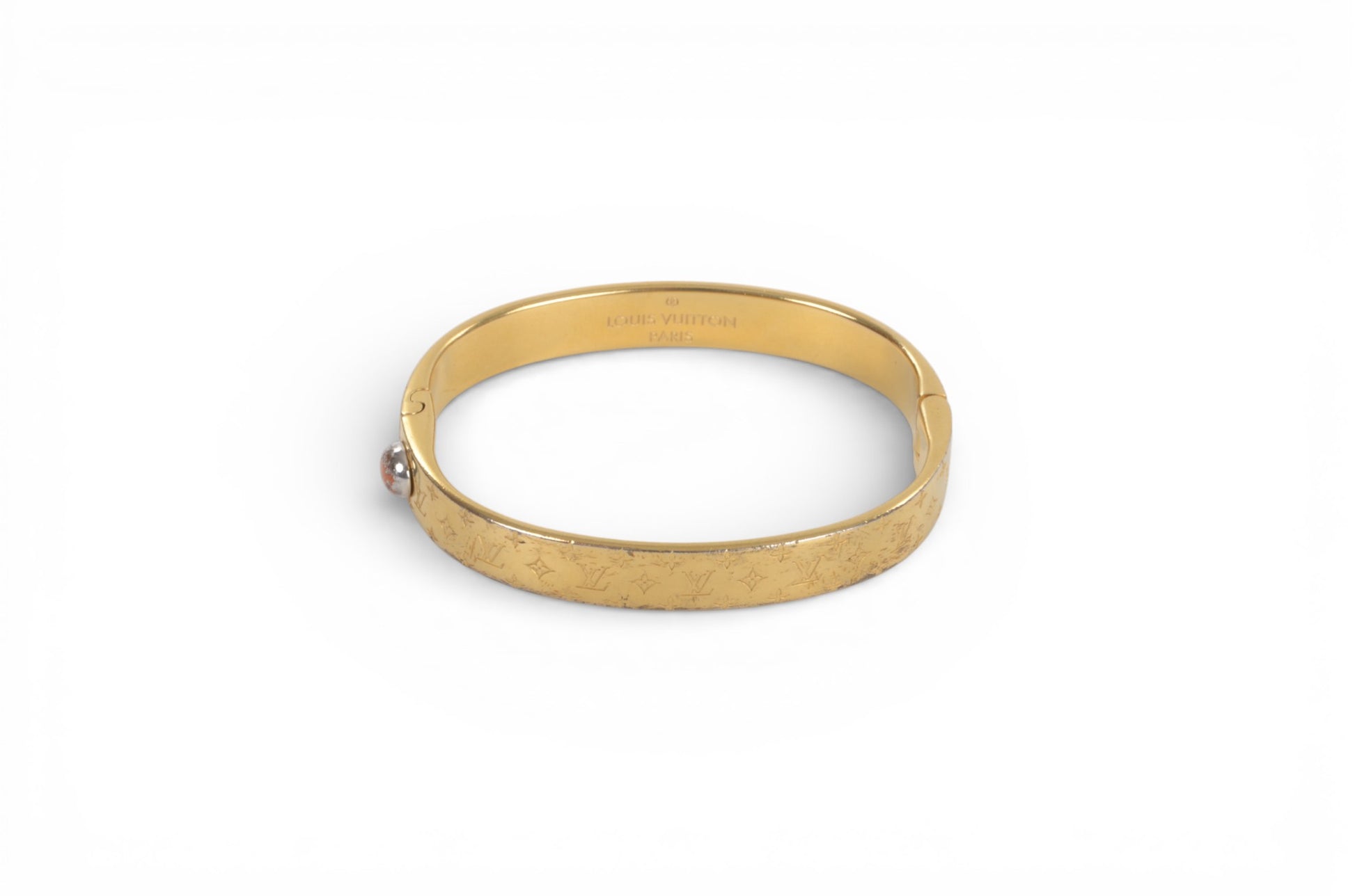 Louis Vuitton Nanogram Monogram Bracelet Gold Metal Bangle Cuff Designer Classic