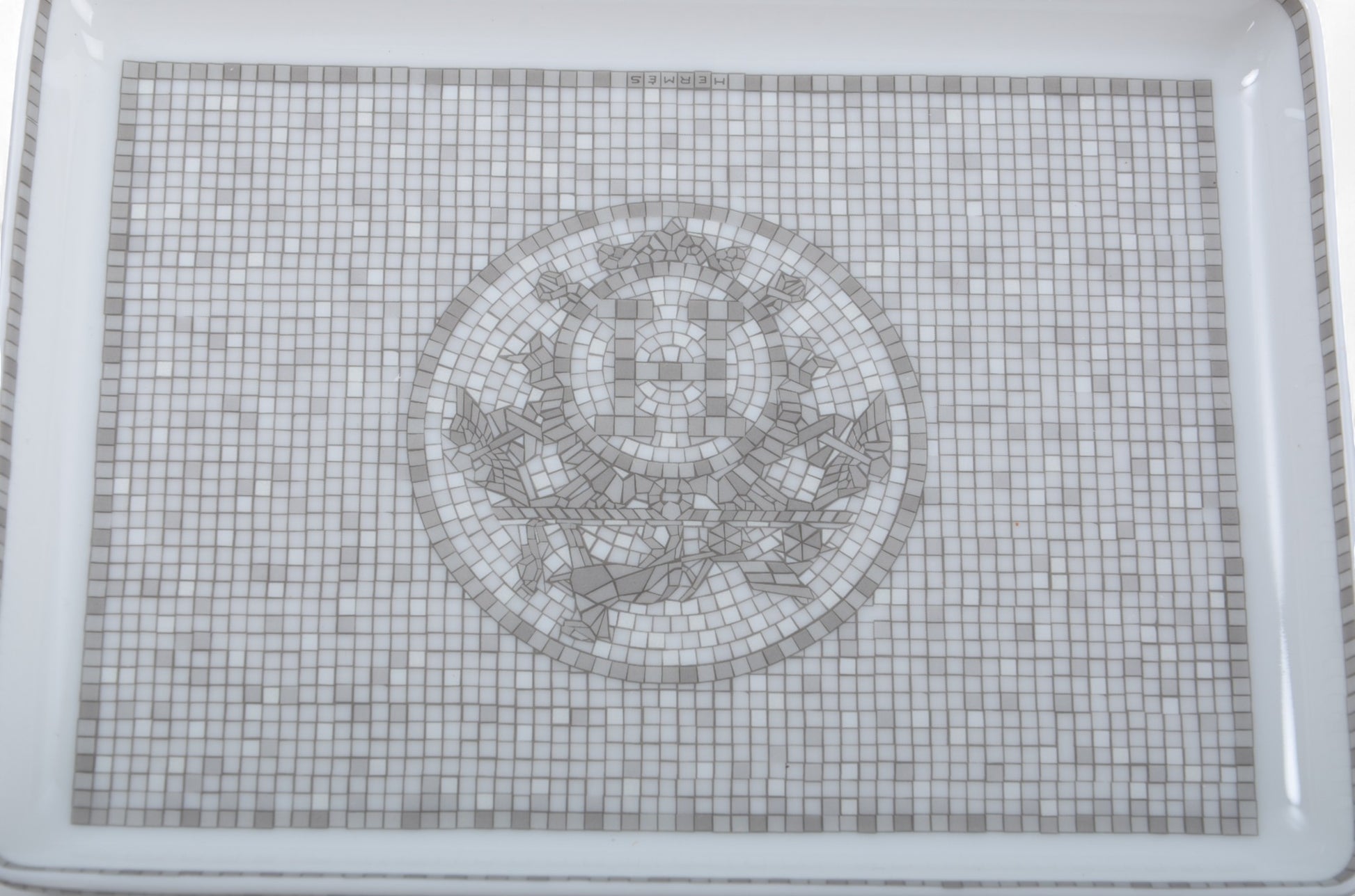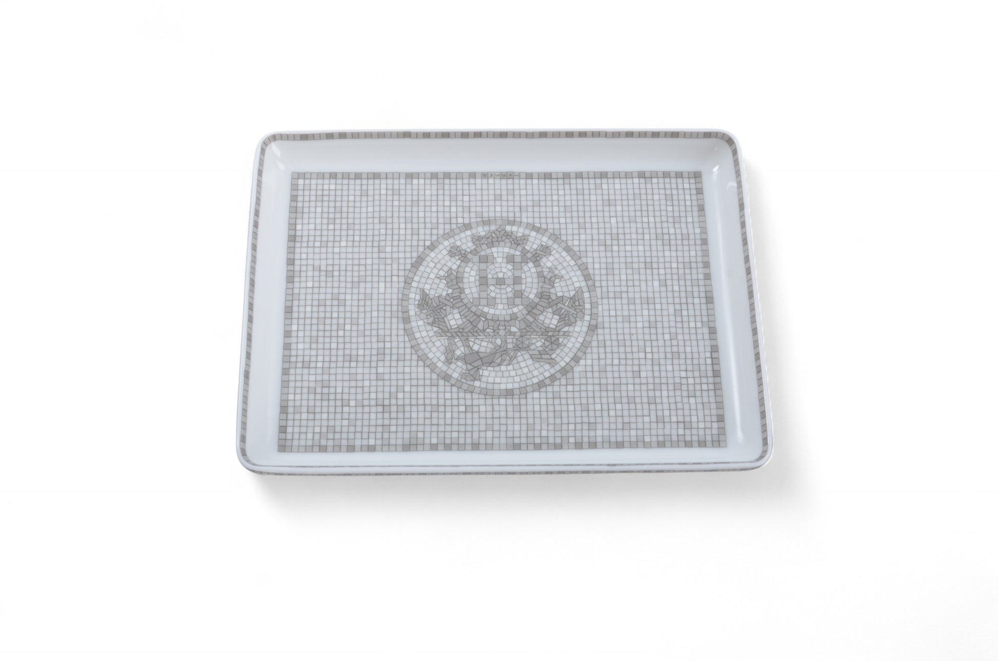 Hermès Mosaique au 24 platinum tray small model Porcelein Jewelry Change Tray Interior