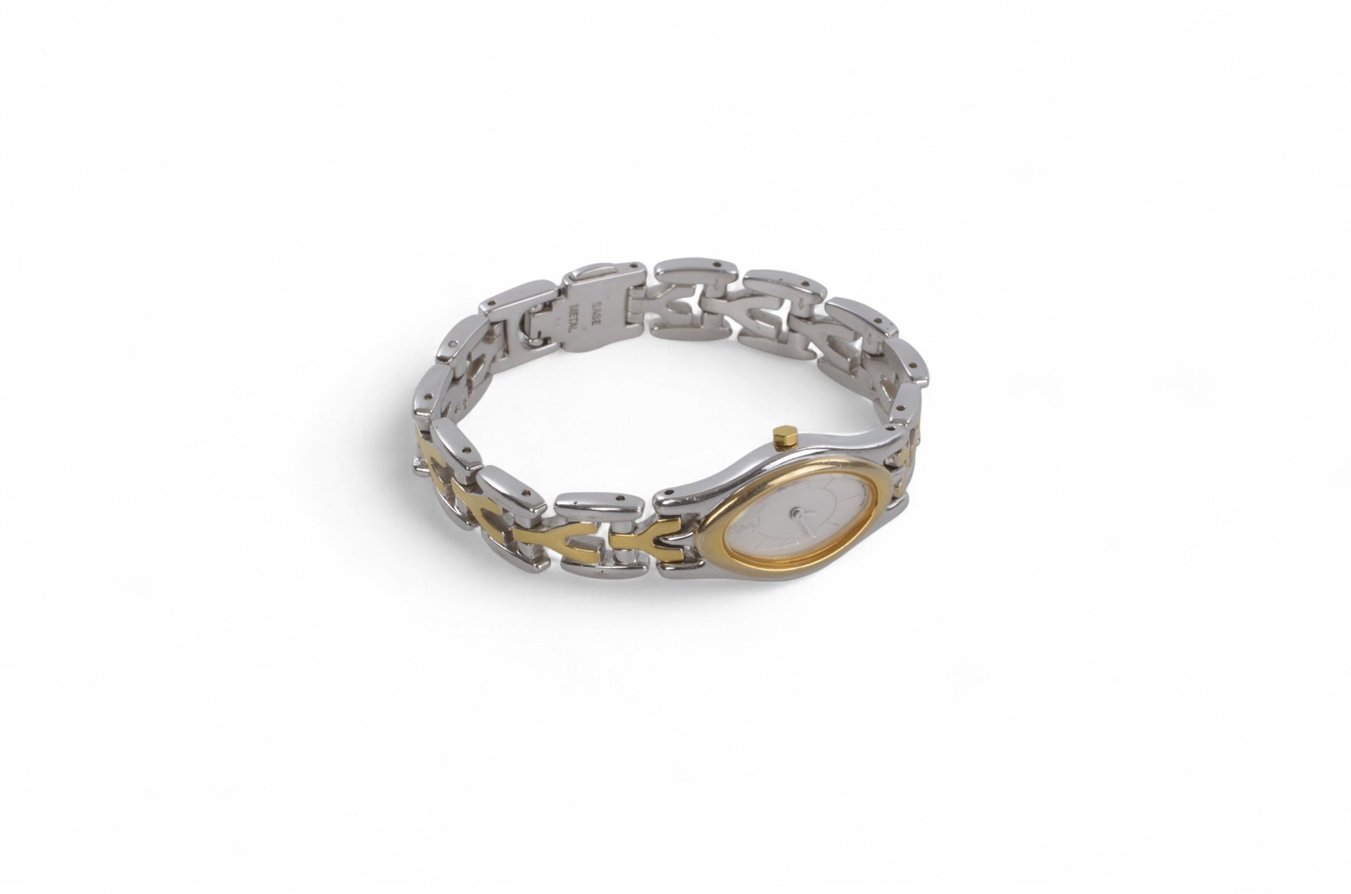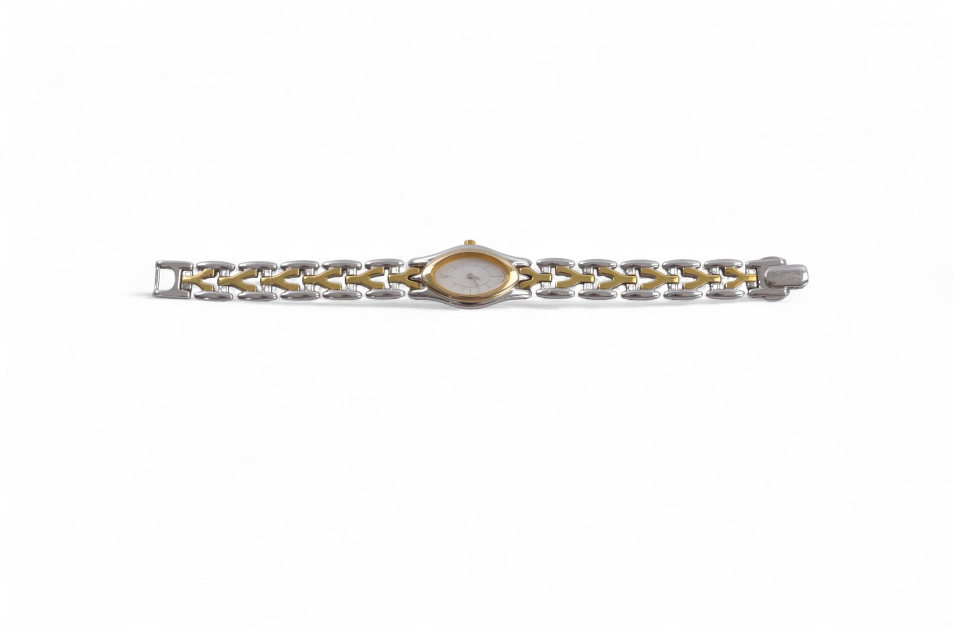 YSL Yves Saint Laurent Quartz Ivory Dial Almond Oval Metal Ladies Wrist Watch Vintage Designer Classic Authentic